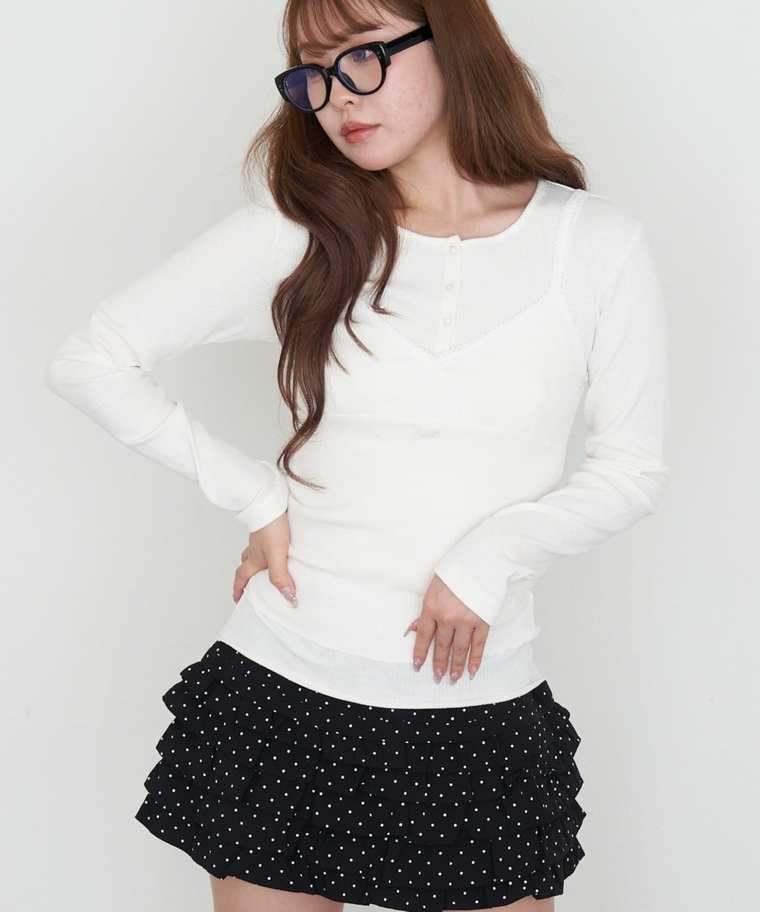 ・別々でも使えるロンTとキャミがセットになったトップスです。