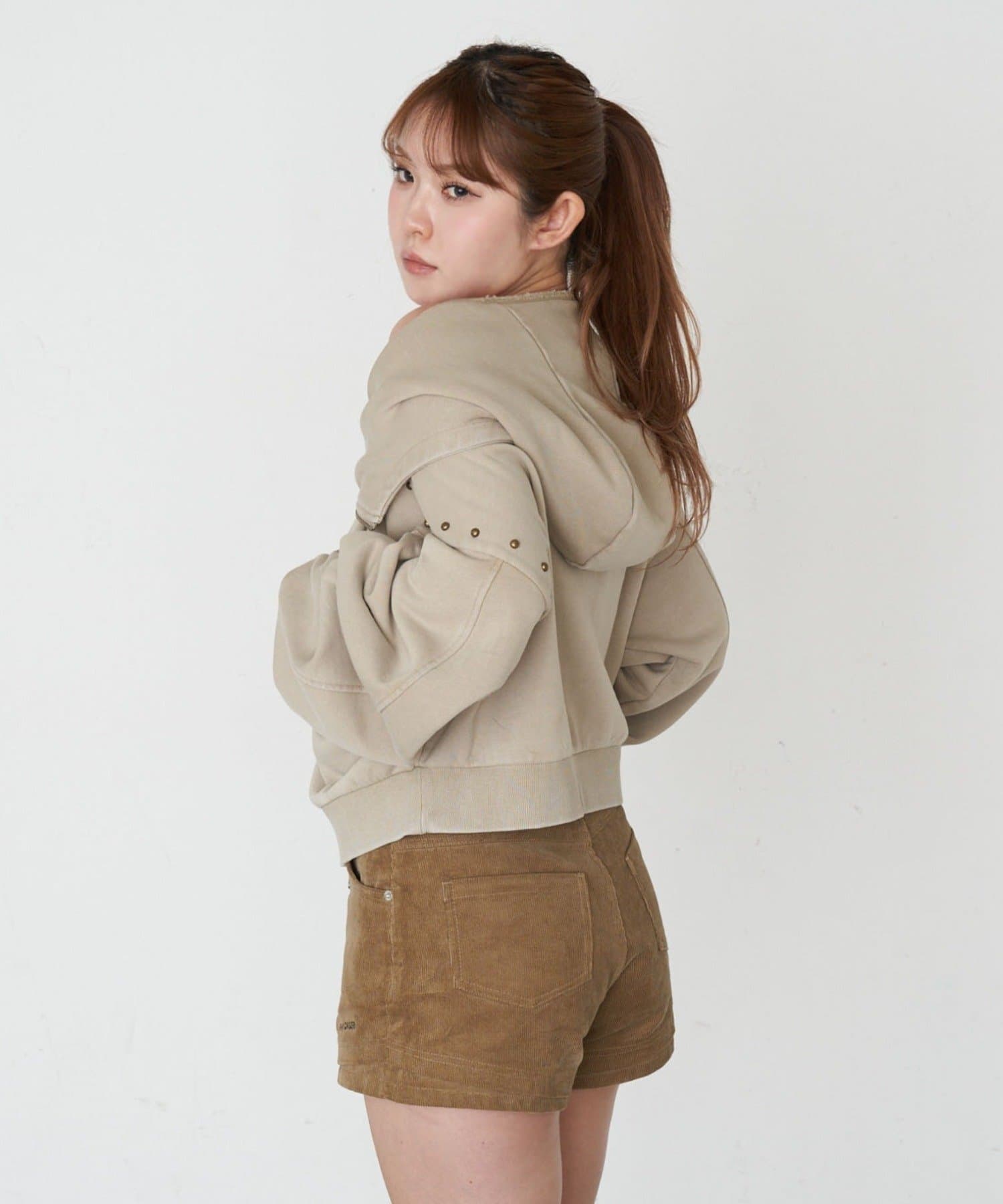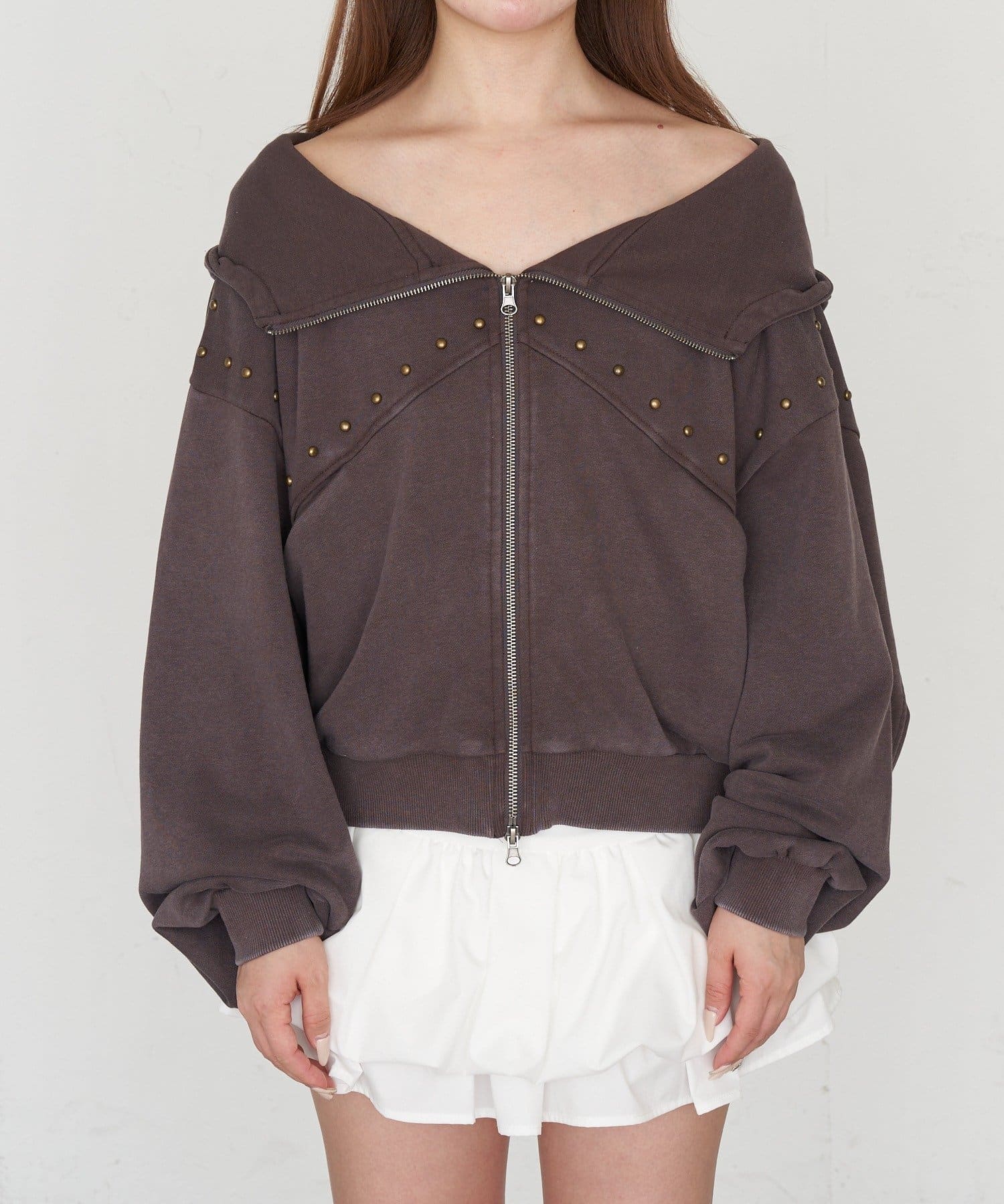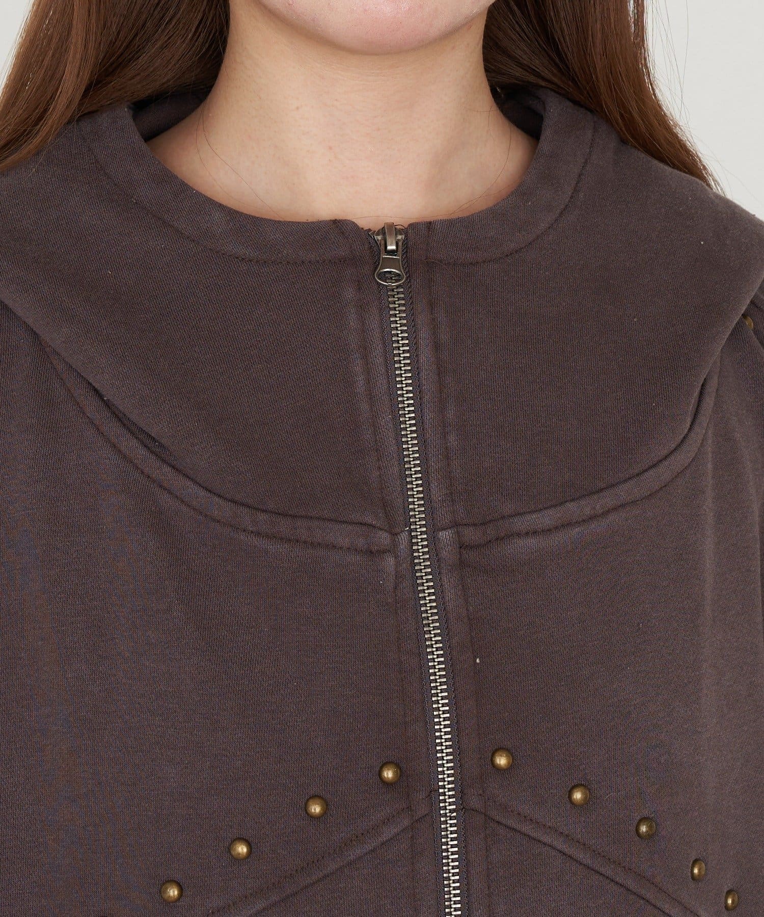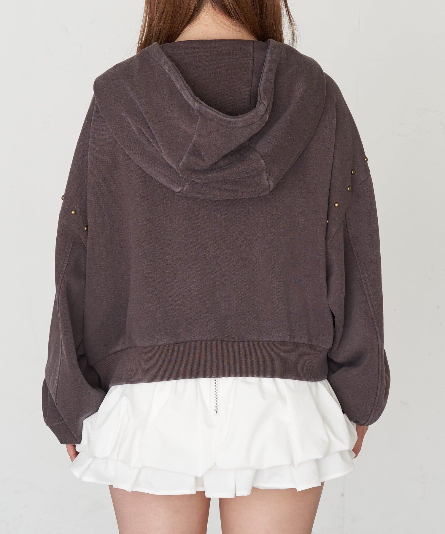 【セットアップで着られる】ピグメントスタッズドルマンスウェットパーカー
