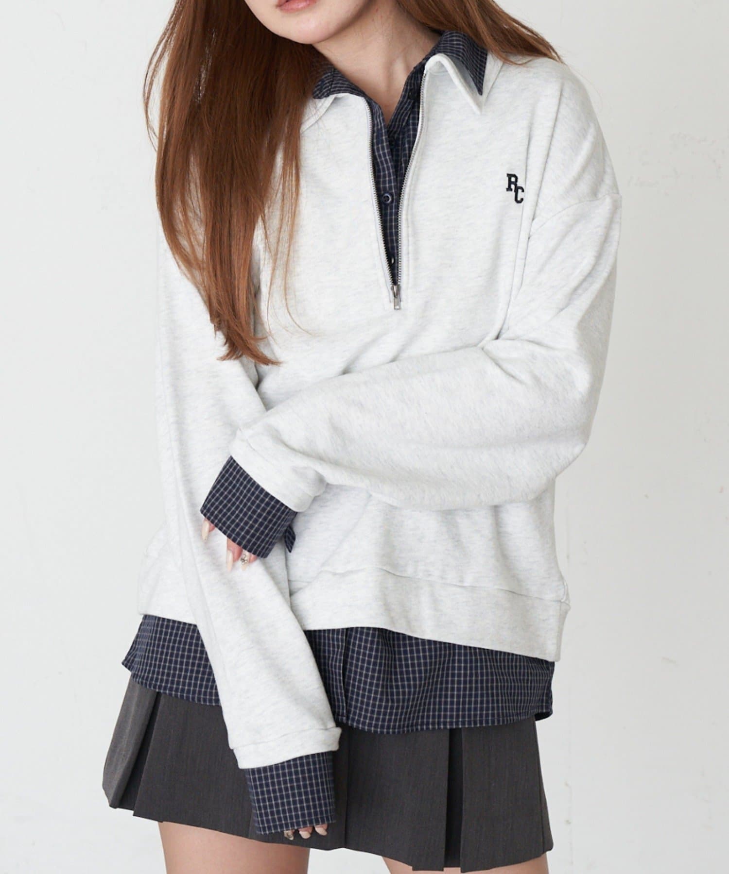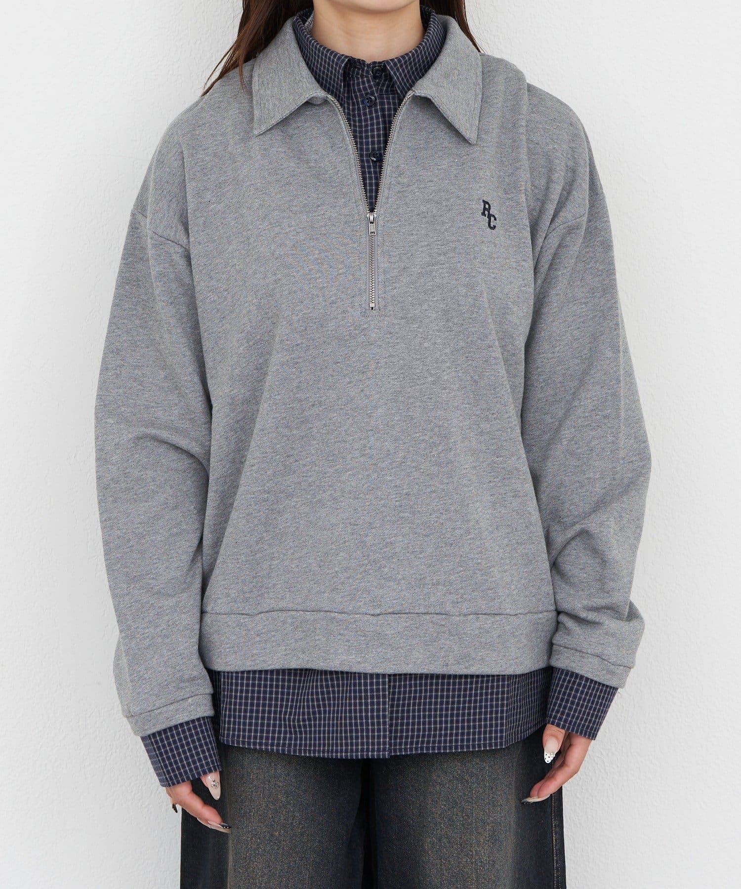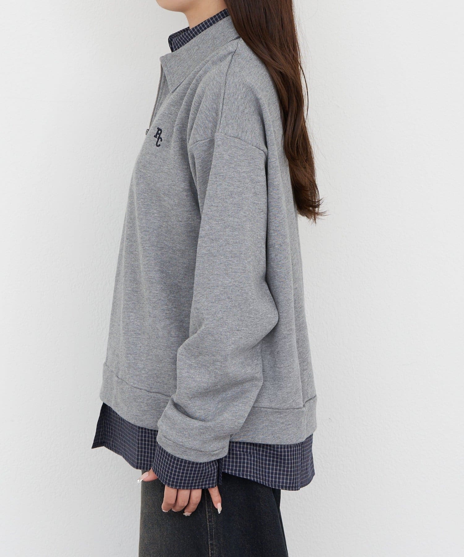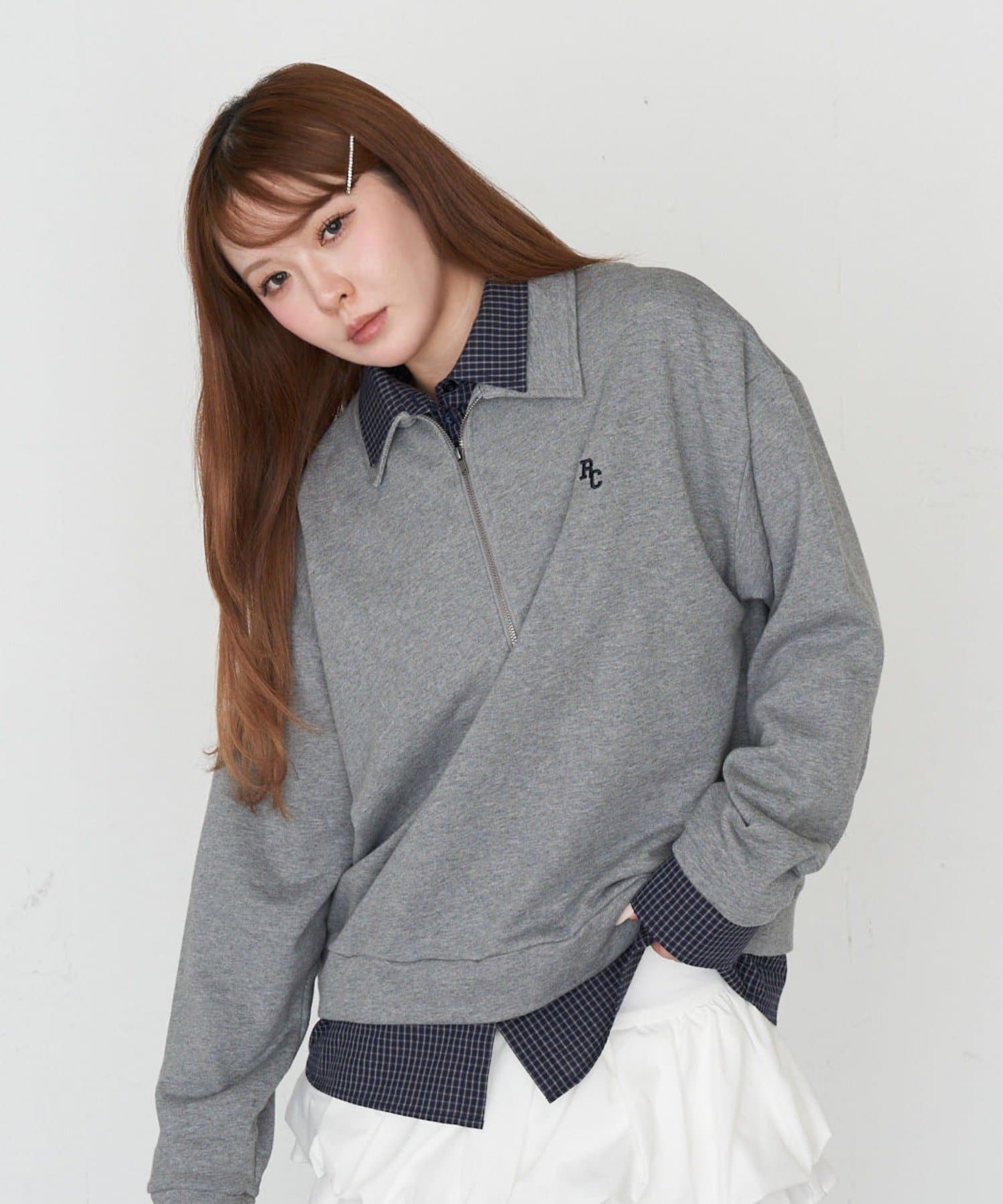 ハーフジップレイヤードスウェット