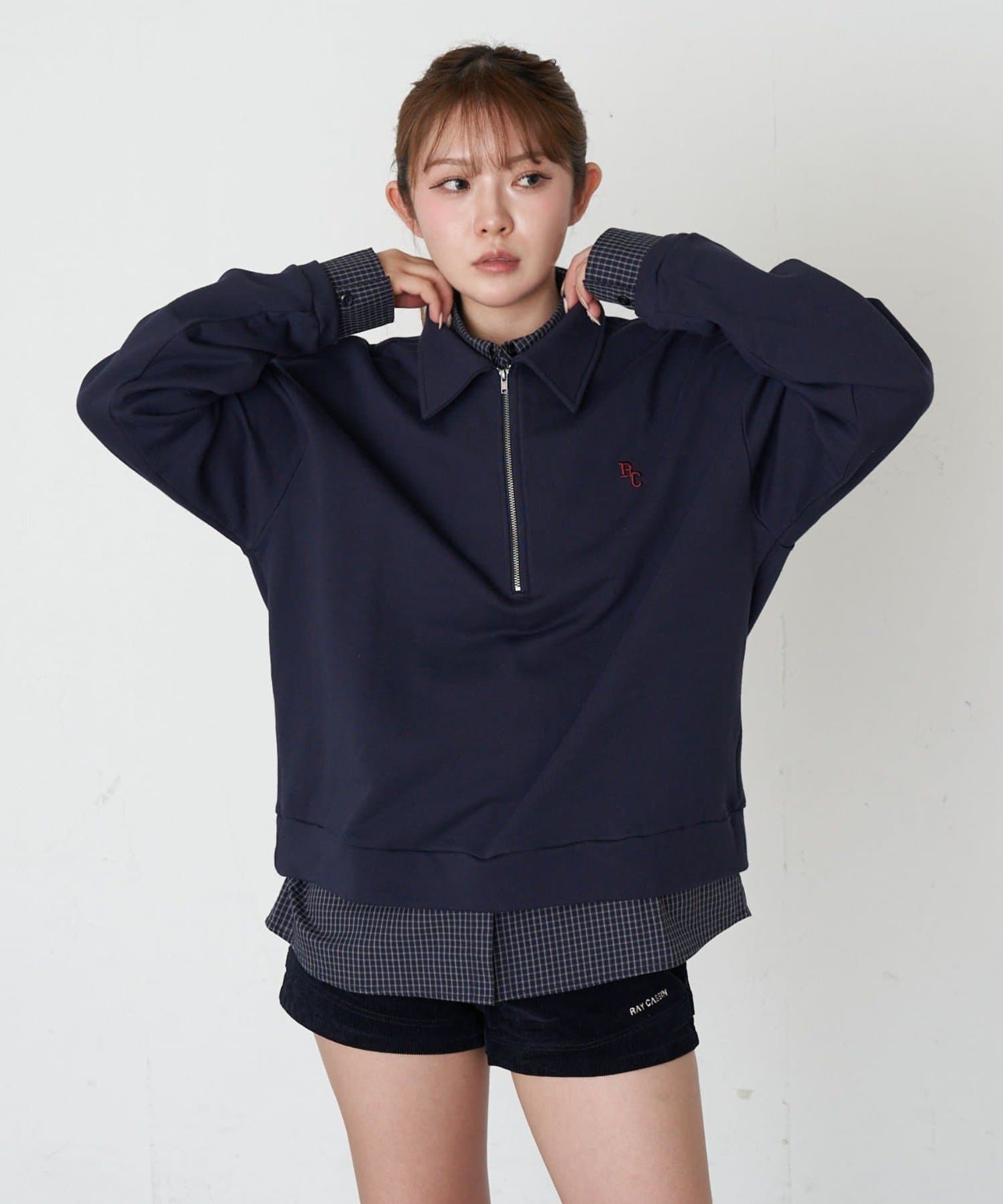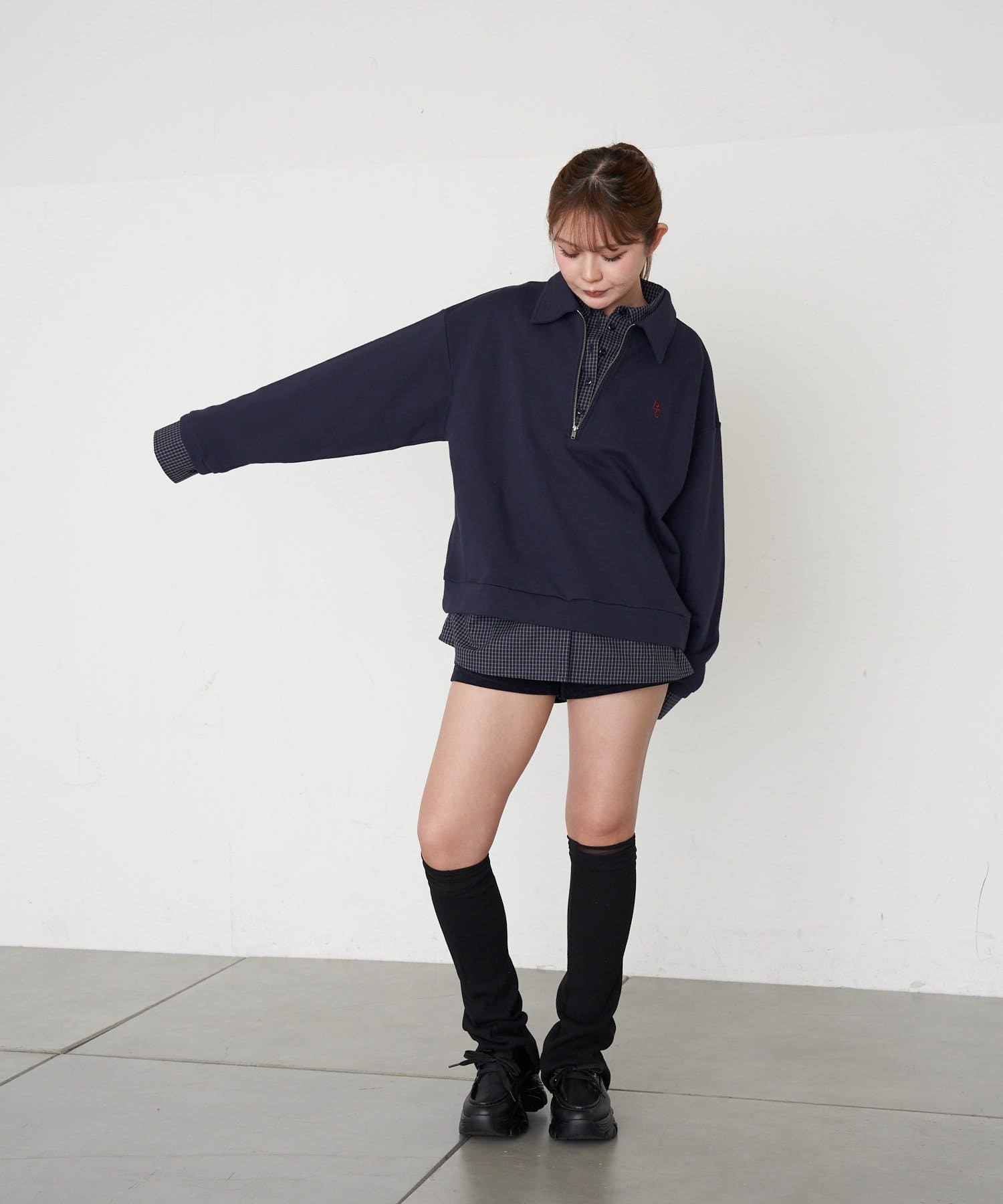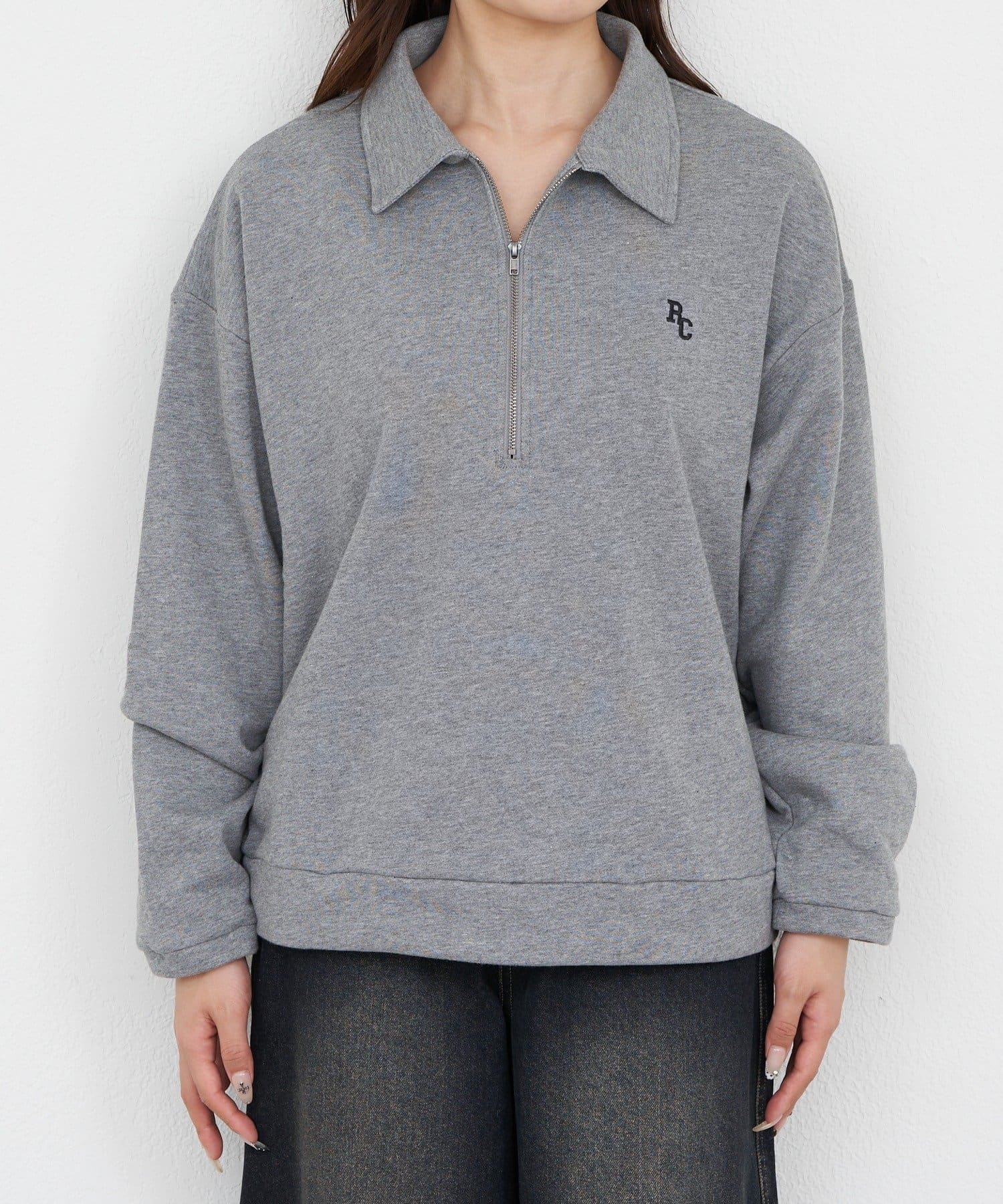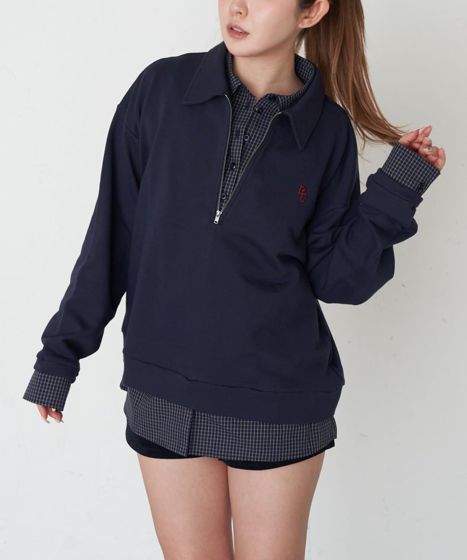 ハーフジップレイヤードスウェット