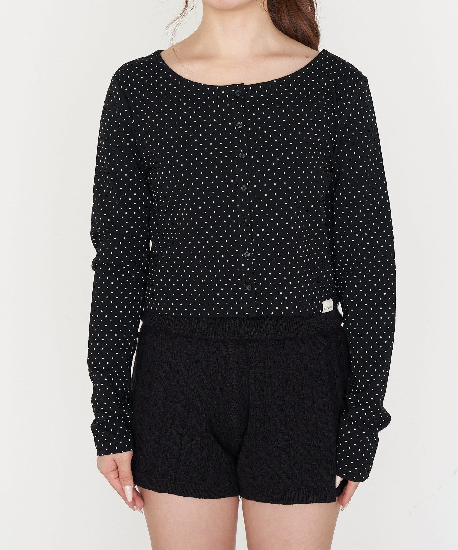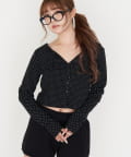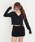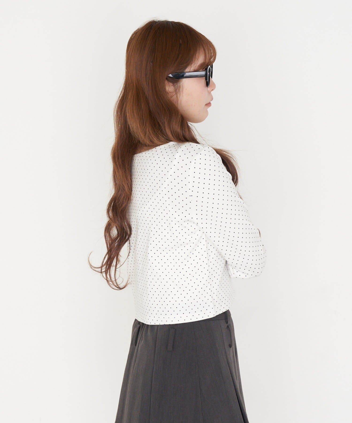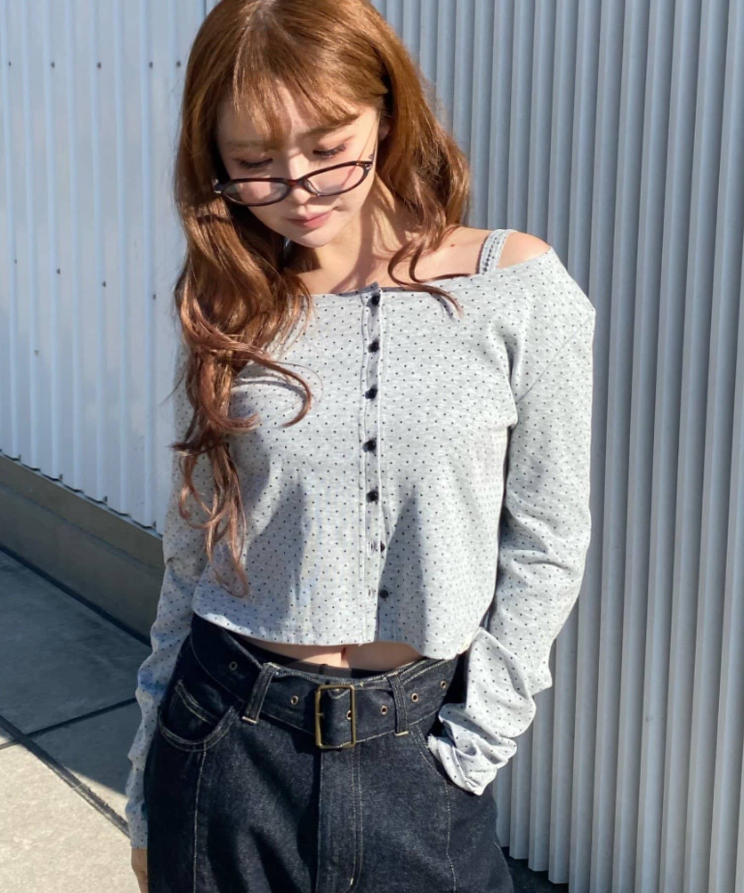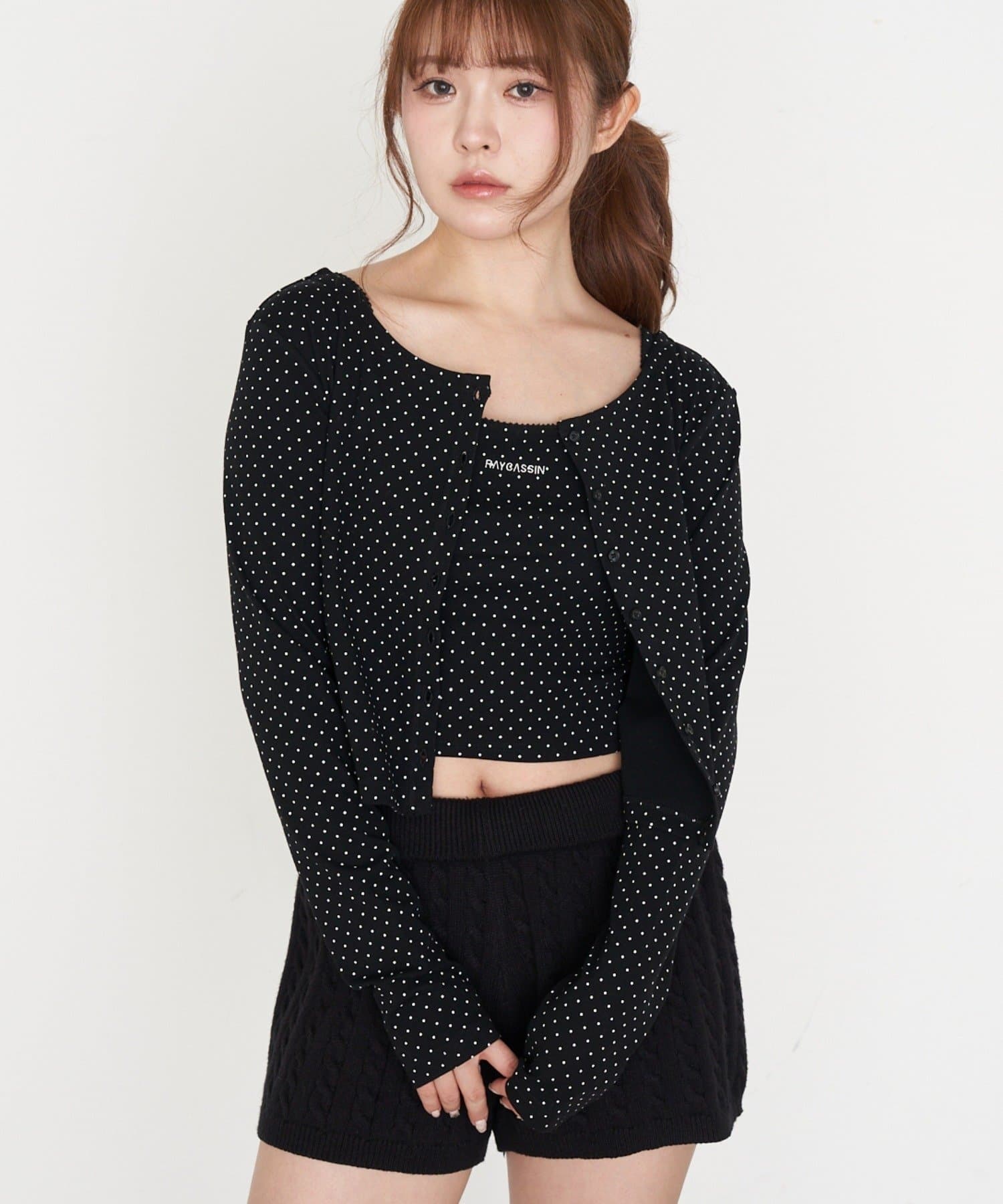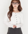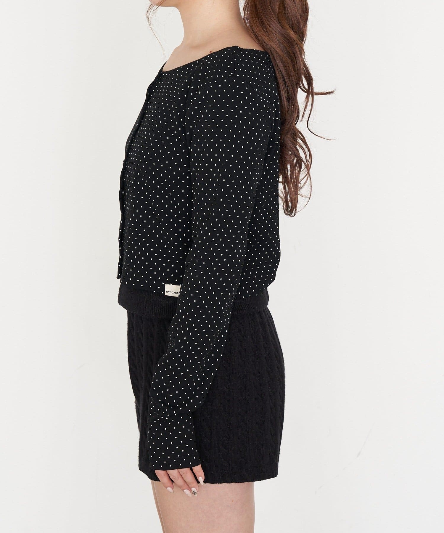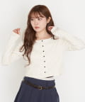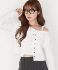 ※画像はサンプルを着用しております。実際の商品はカーディガンの肩幅が1cmずつ狭くなります。また、キャミソールの胸刺繡の位置が1cm上がります。