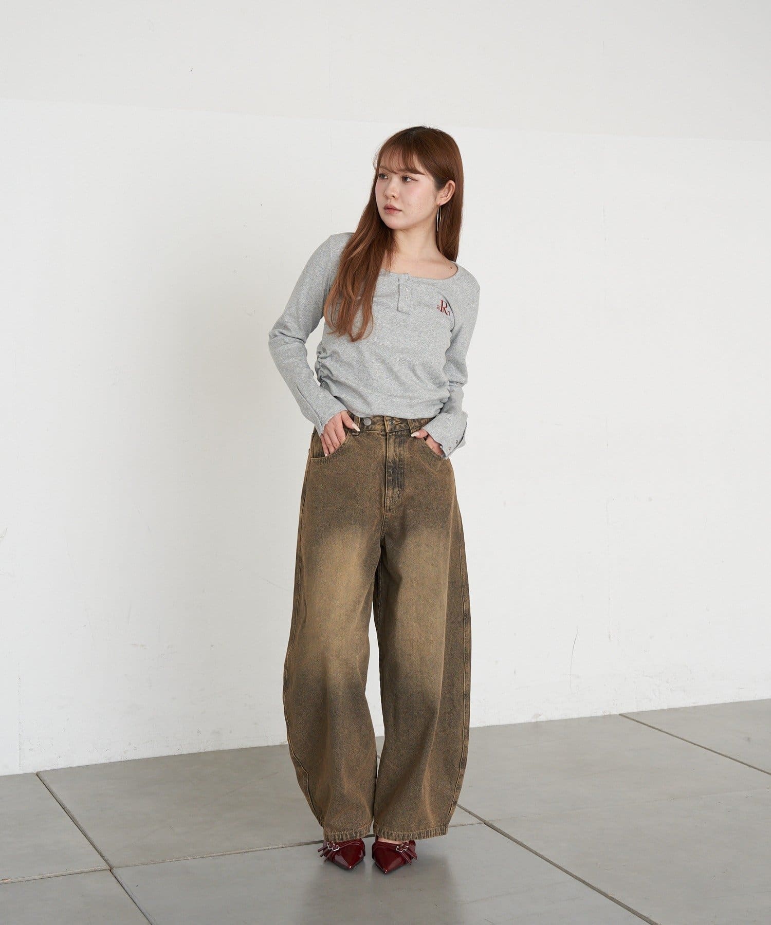 ・スッキリシルエットなのでカーディガンやアウターのインナー使いもオススメ◎