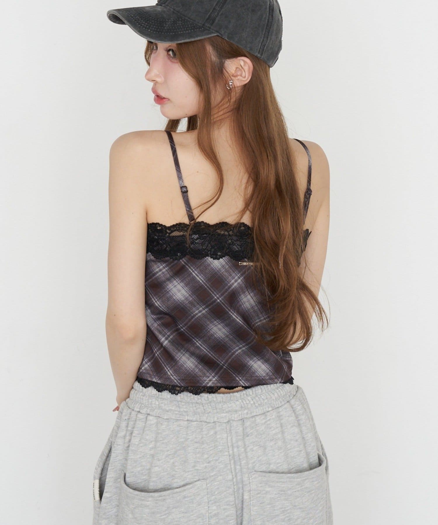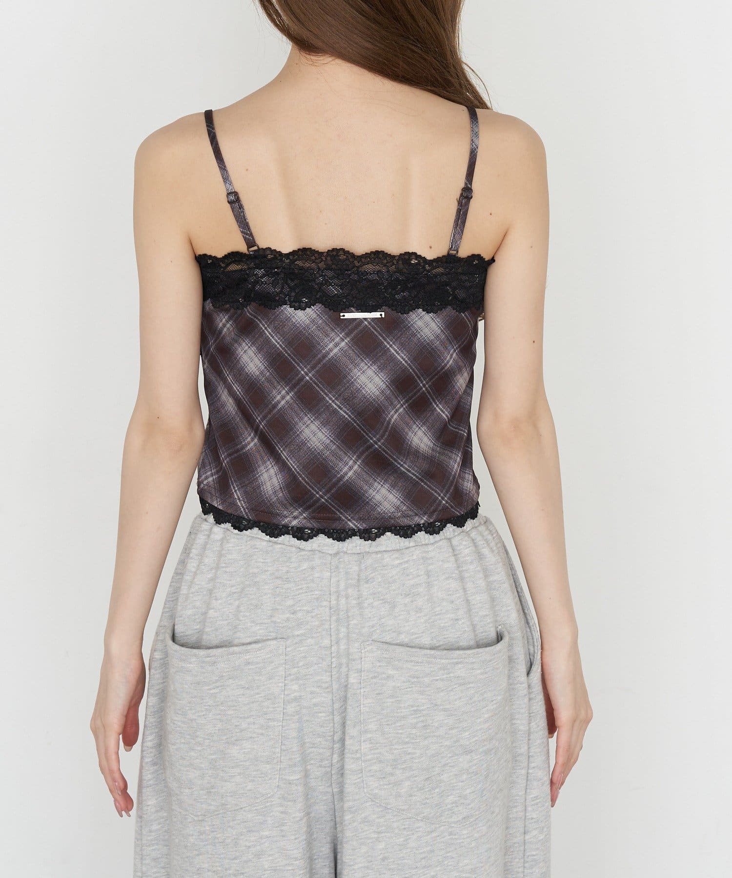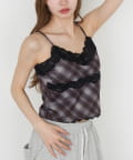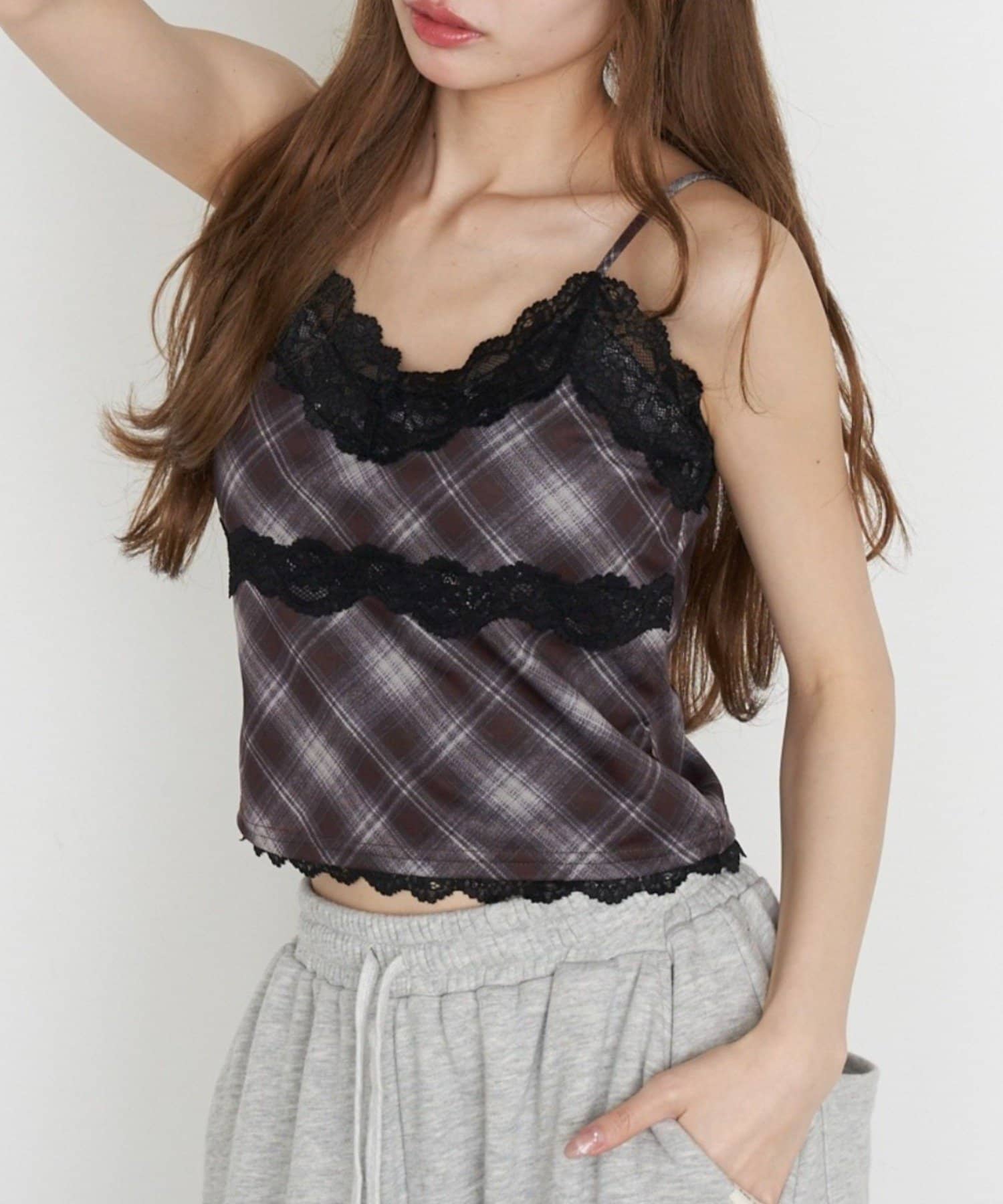 【7色展開 ・無地 / チェック】パット付レースキャミ
