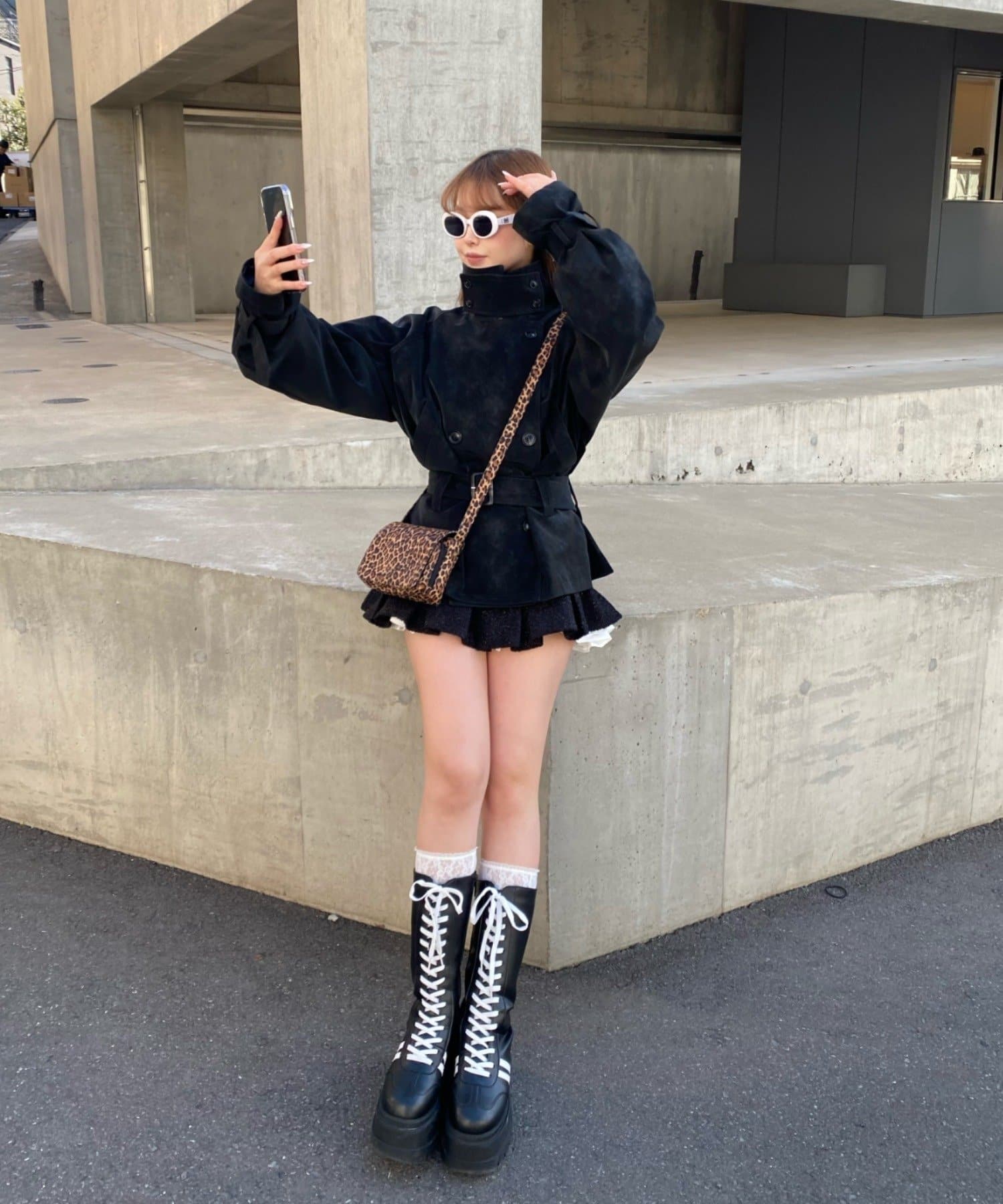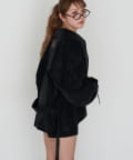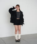 ・ミニボトムと合わせた、少しフェミニンなスタイル