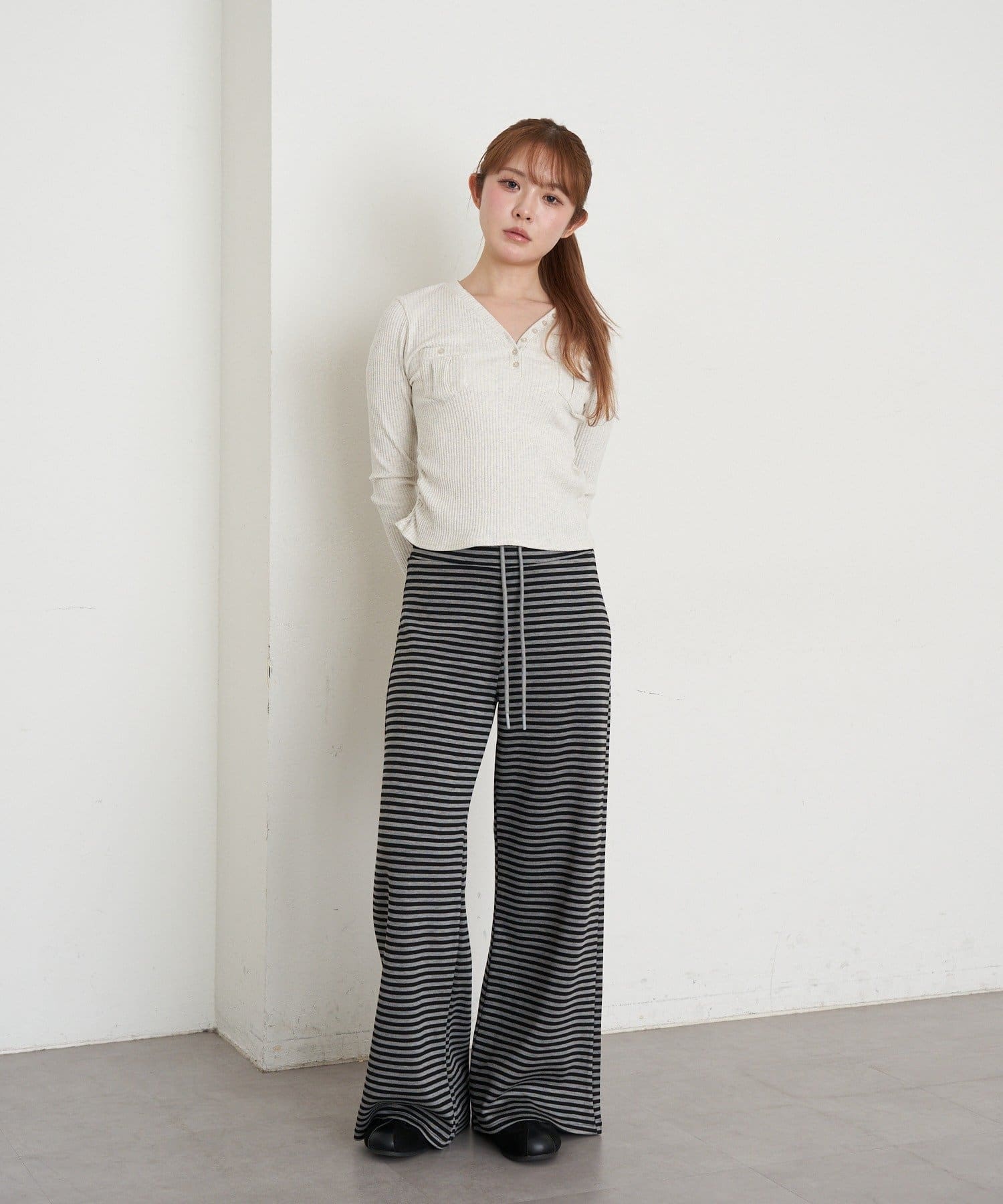 ・ウエストはゴム+紐付きで、ラクにオシャレに着ていただけます。