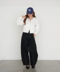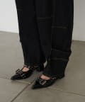 ・配色のステッチが、履いた時に立体感と着痩せを感じる1着です。