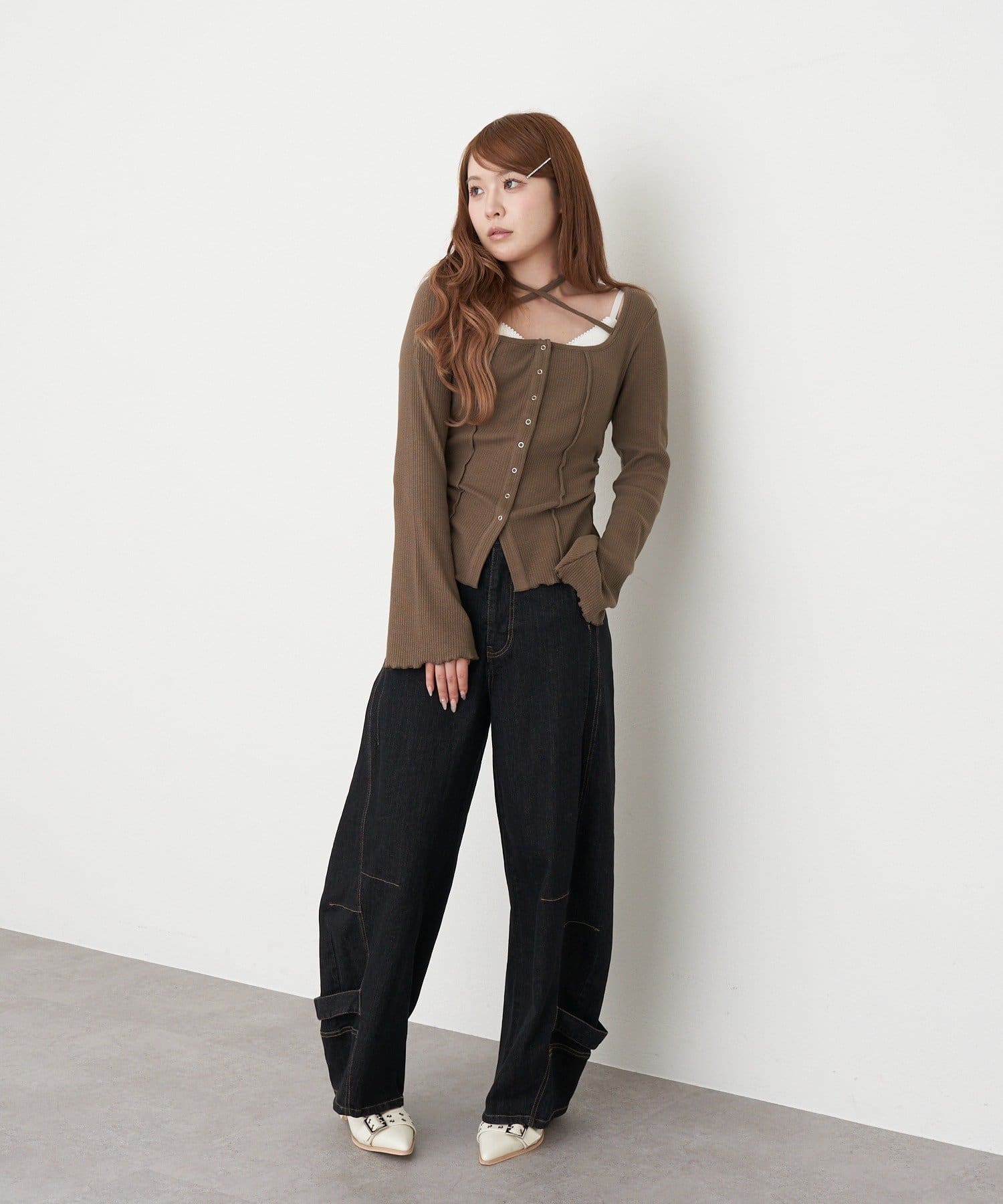 ・ウエストと裾はボタン付きで、お好みのシルエットで着用いただけます。