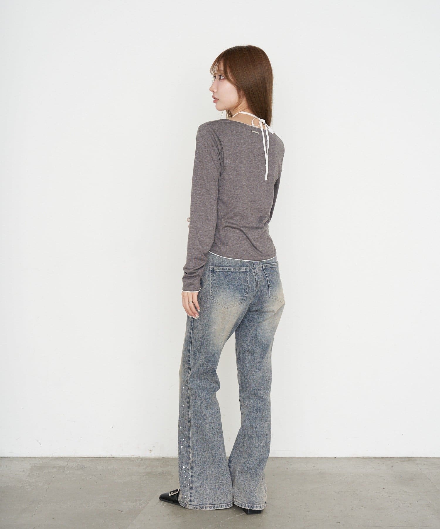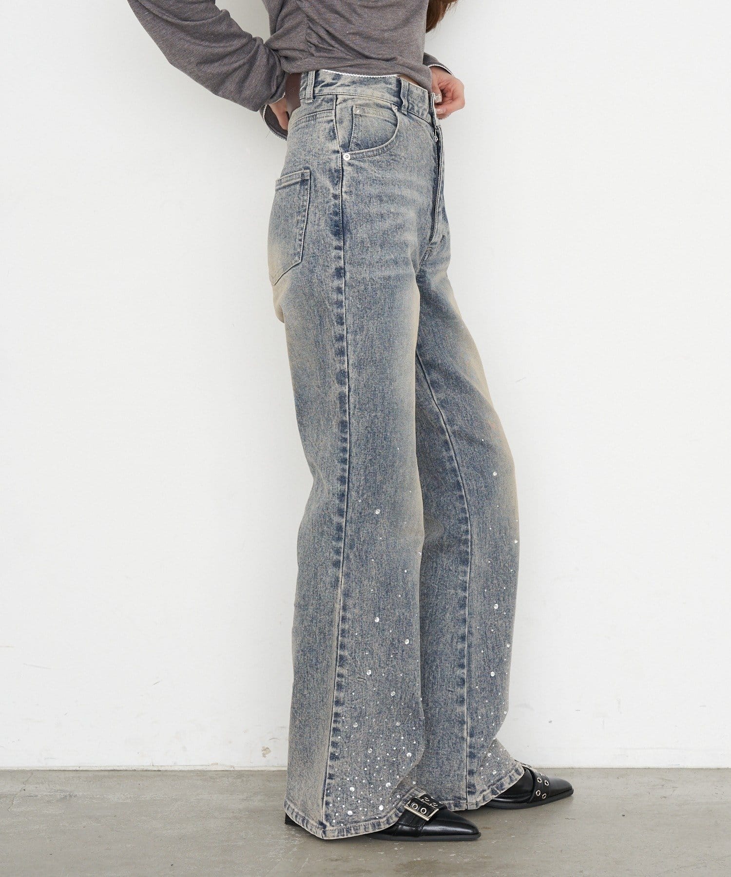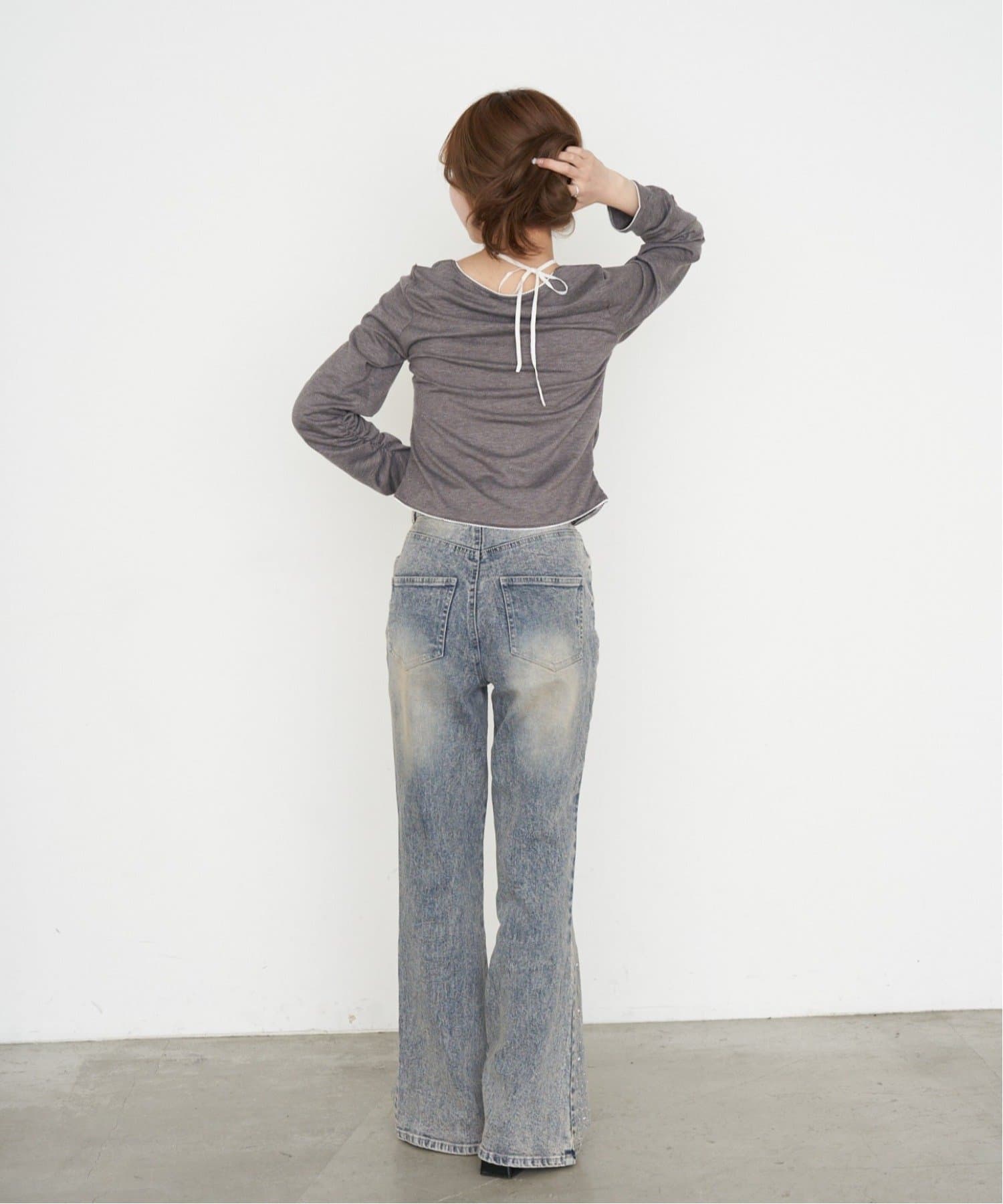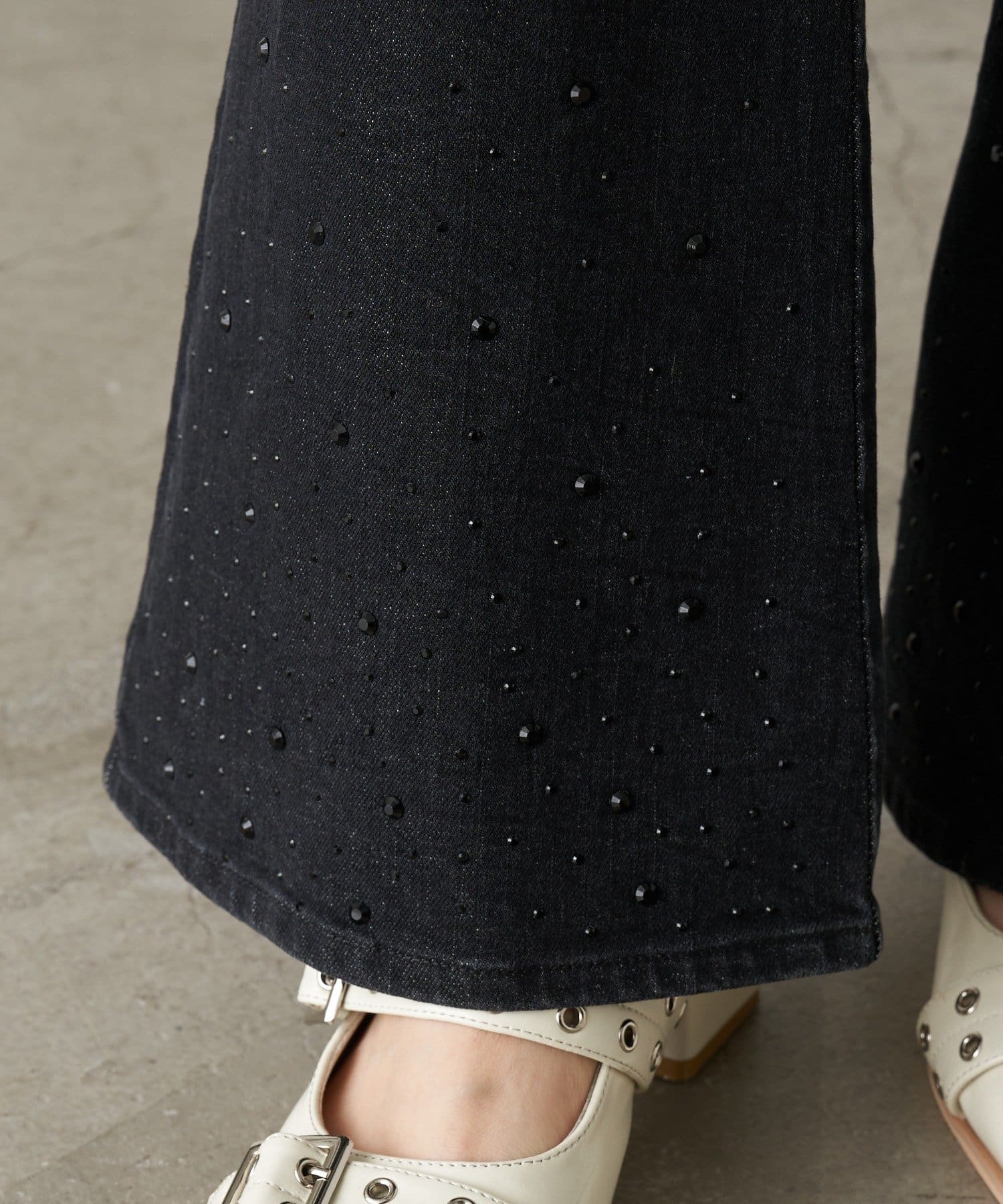 ・裾にはラインストーンが付くので、ベーシックなデニムは既にお持ちの方にもオススメです。