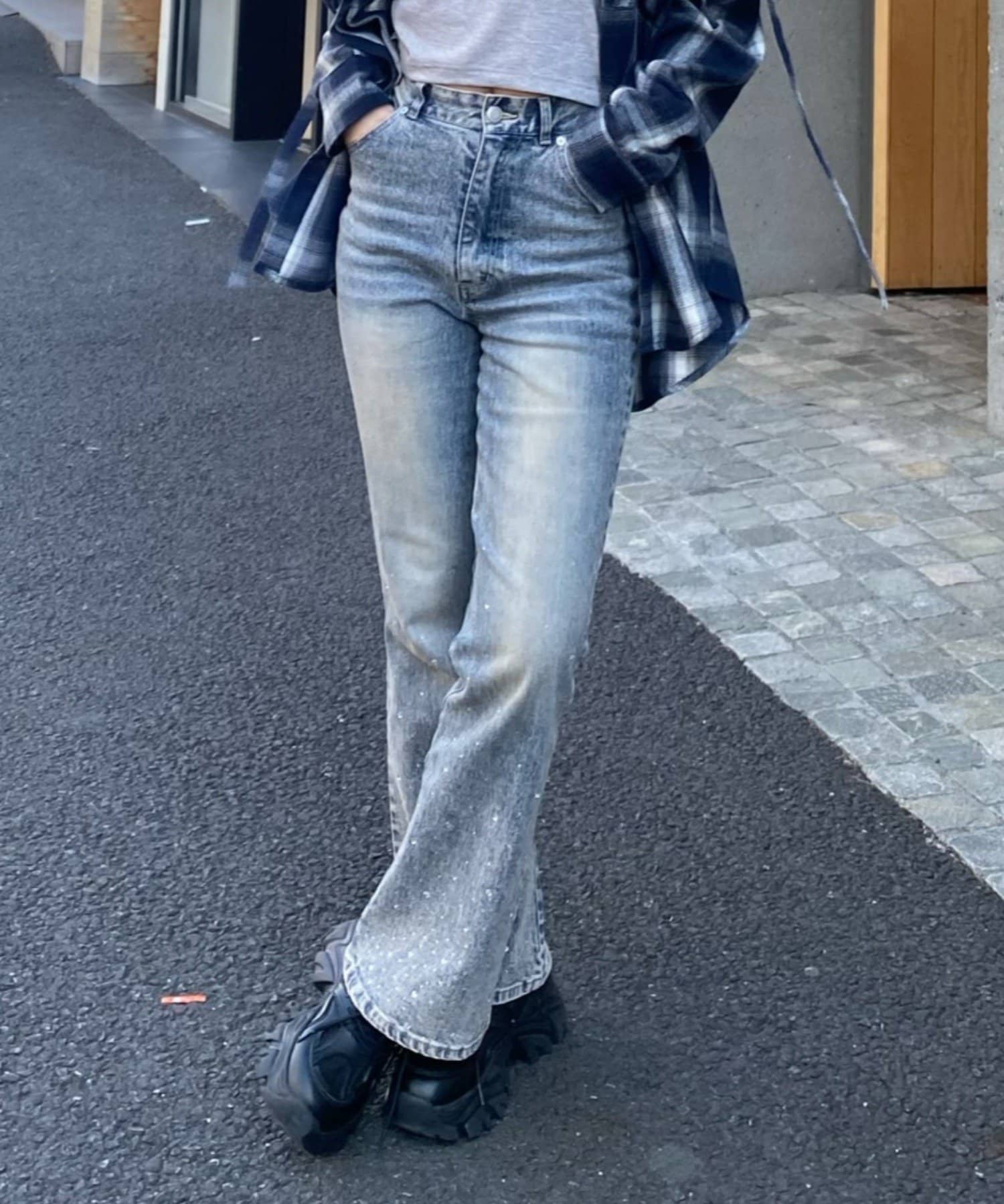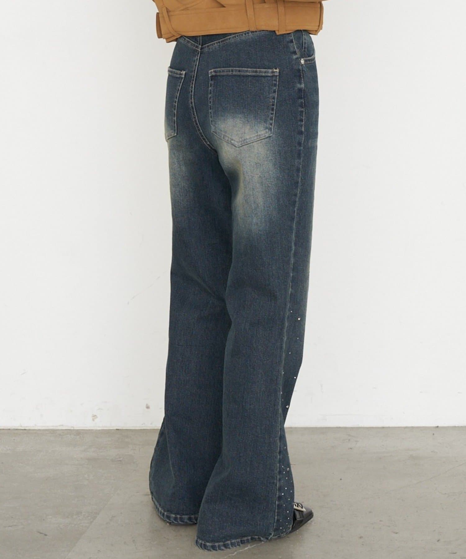 【2サイズ展開 】ラインストーンフレアデニムパンツ