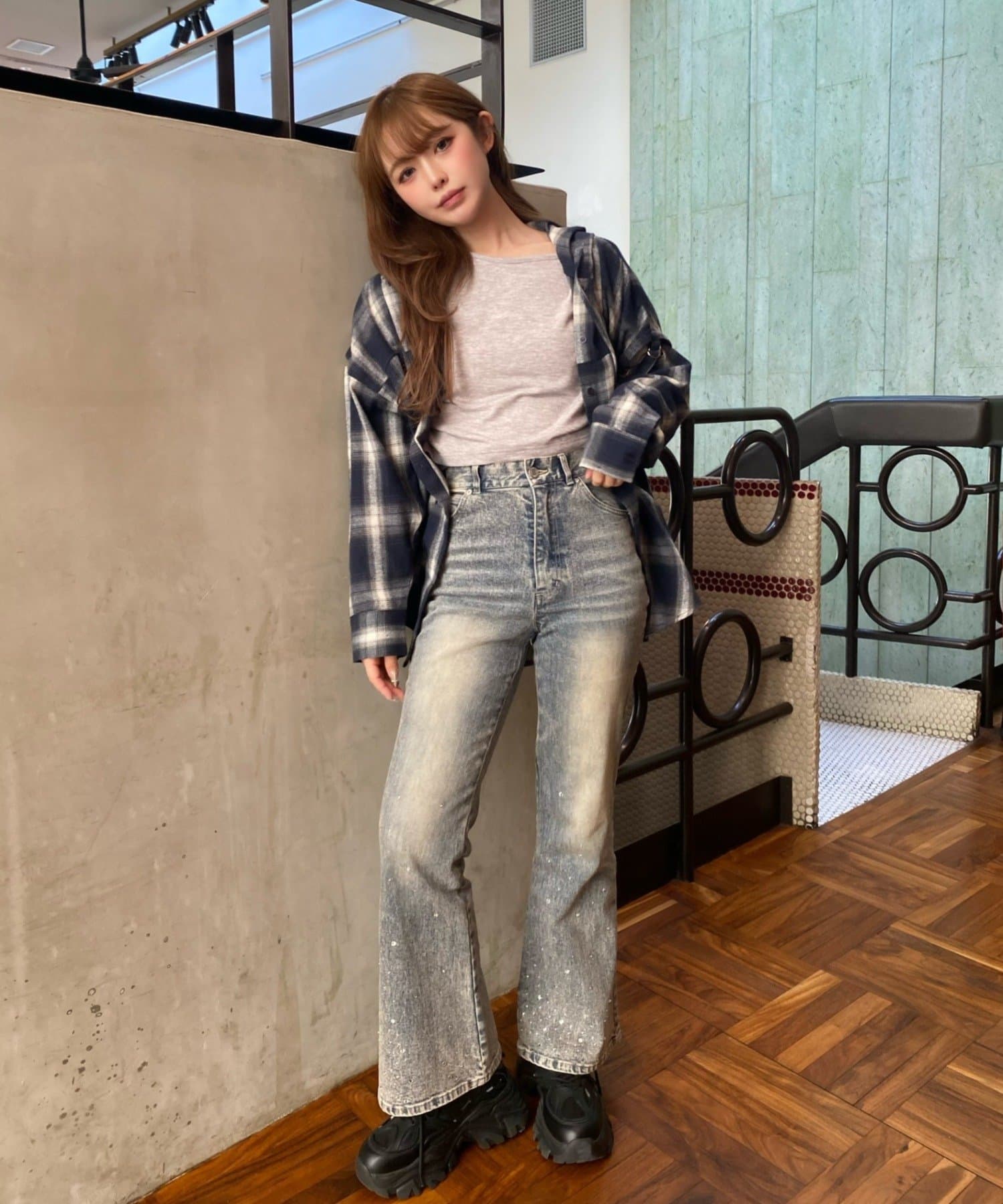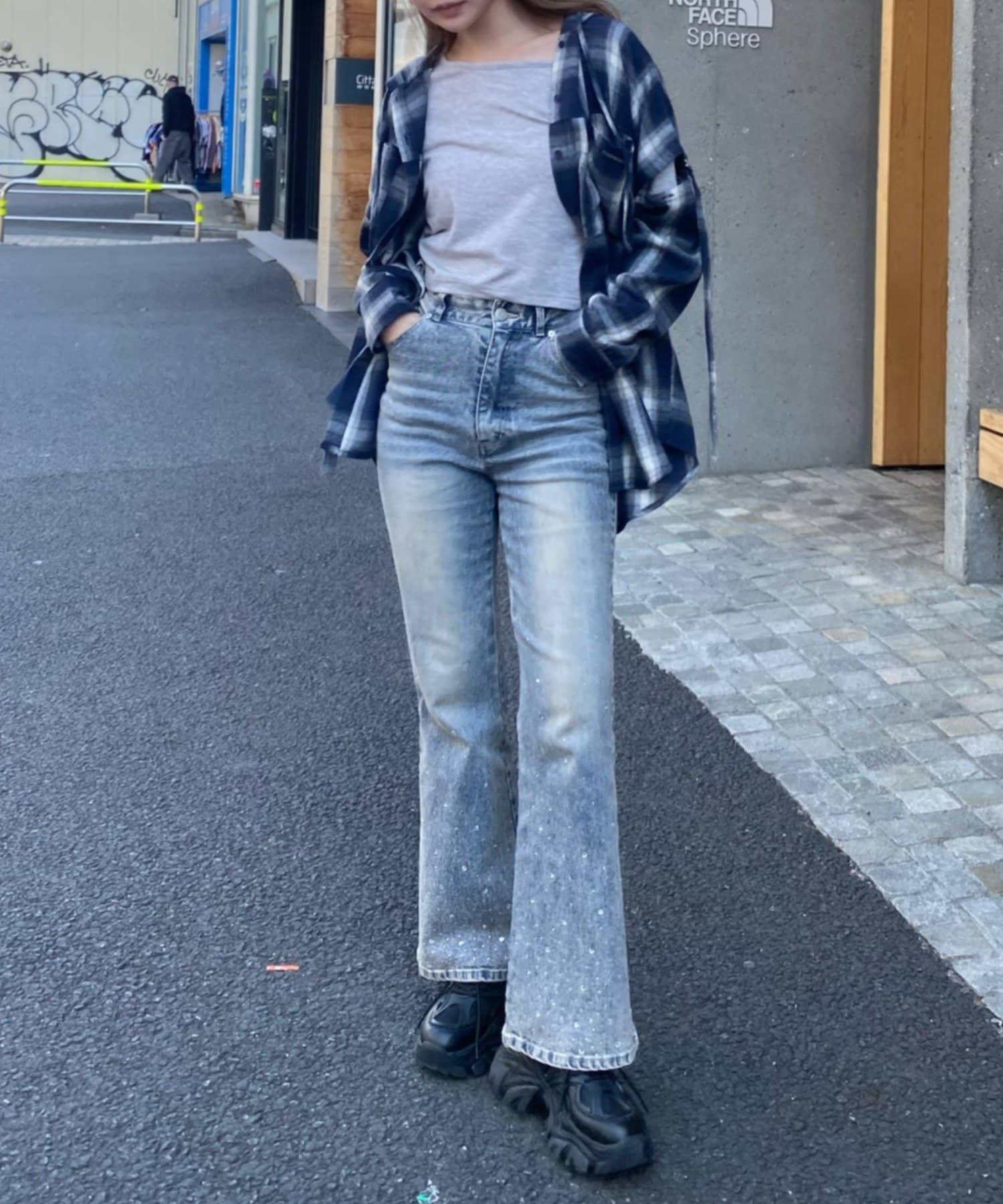 ・コンパクトなトップスと合わせた韓国風スタイル