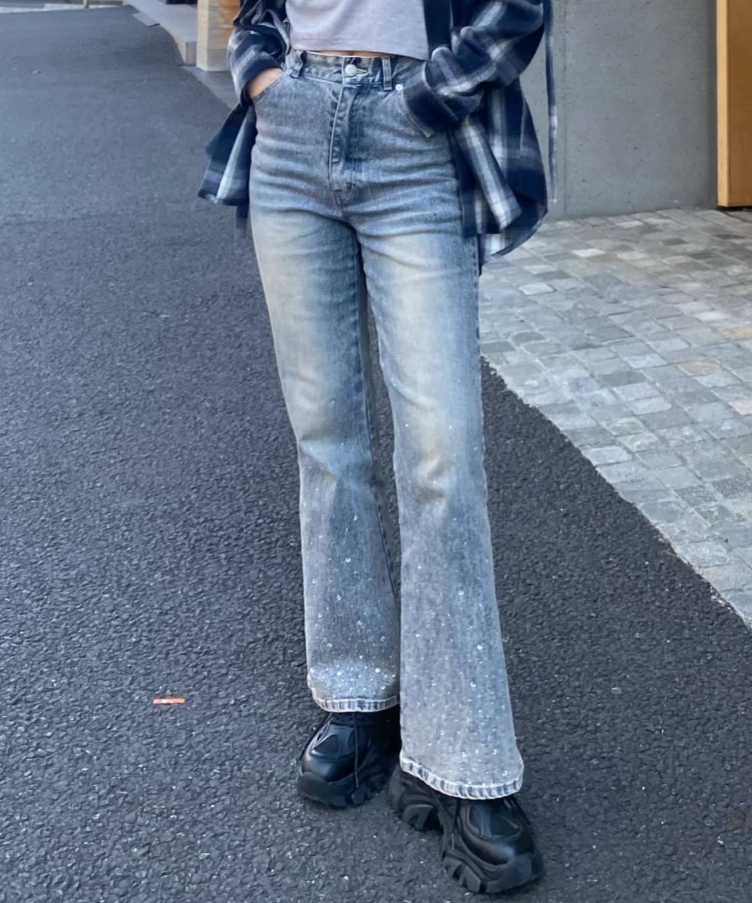 ラインストーン / デニム / フレアデニム