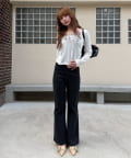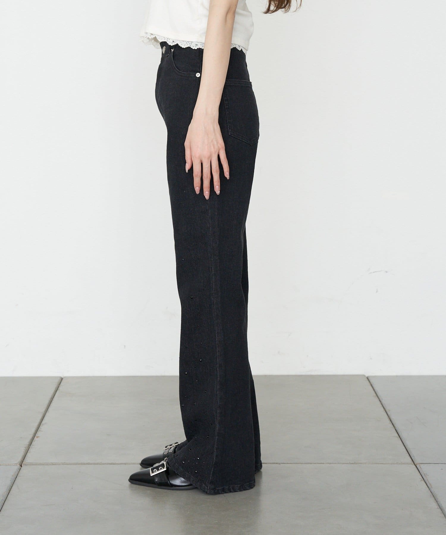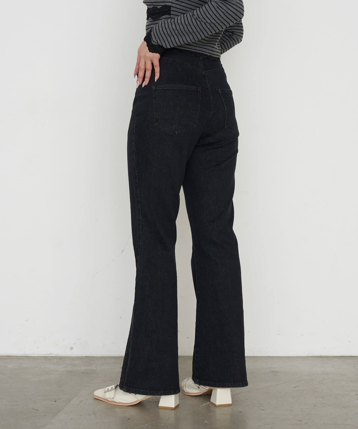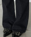 【2サイズ展開 】ラインストーンフレアデニムパンツ
