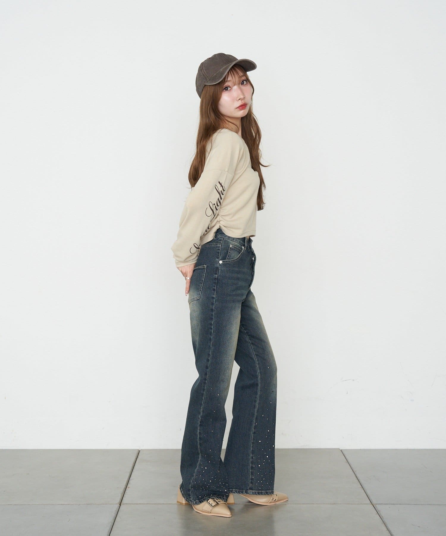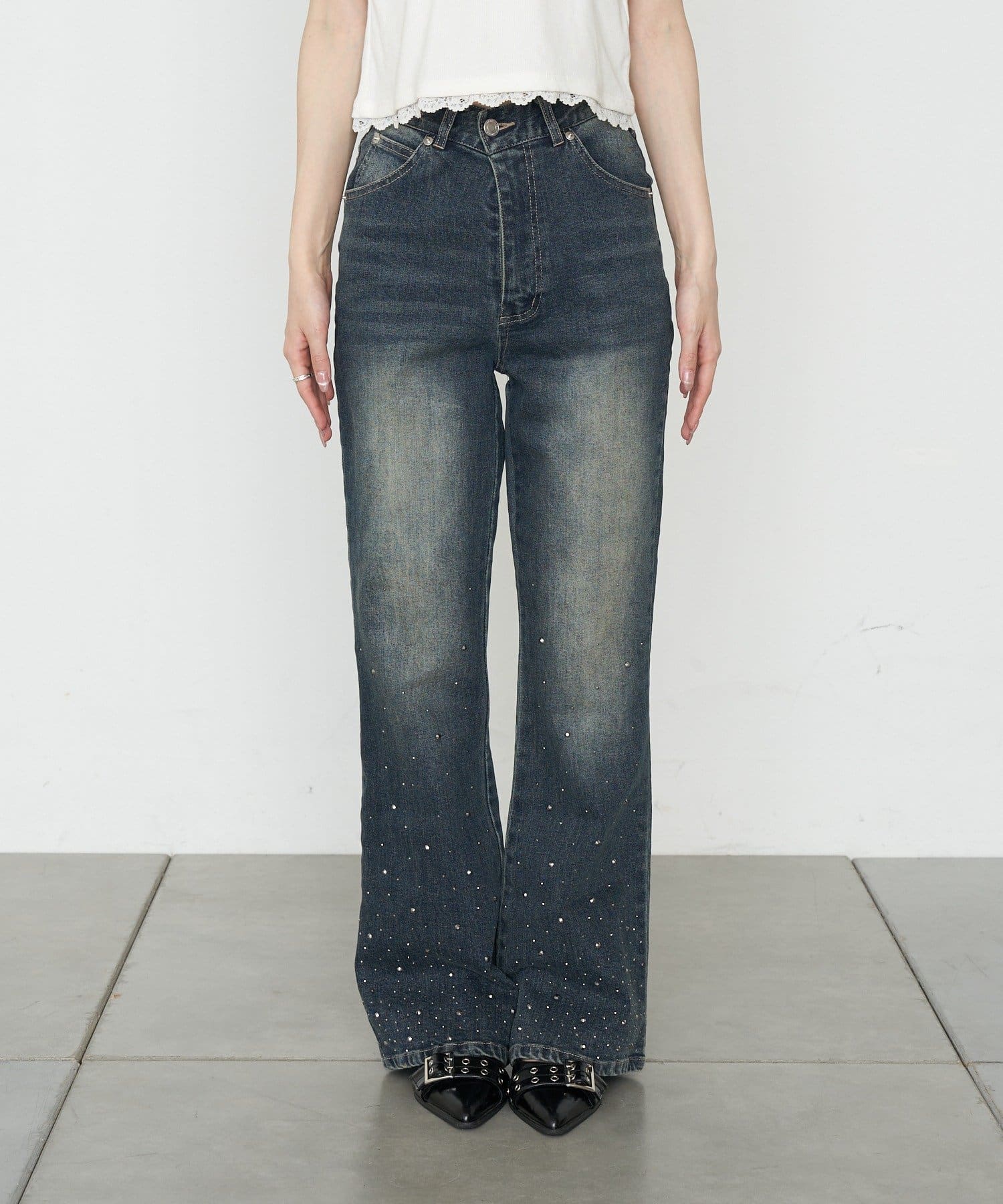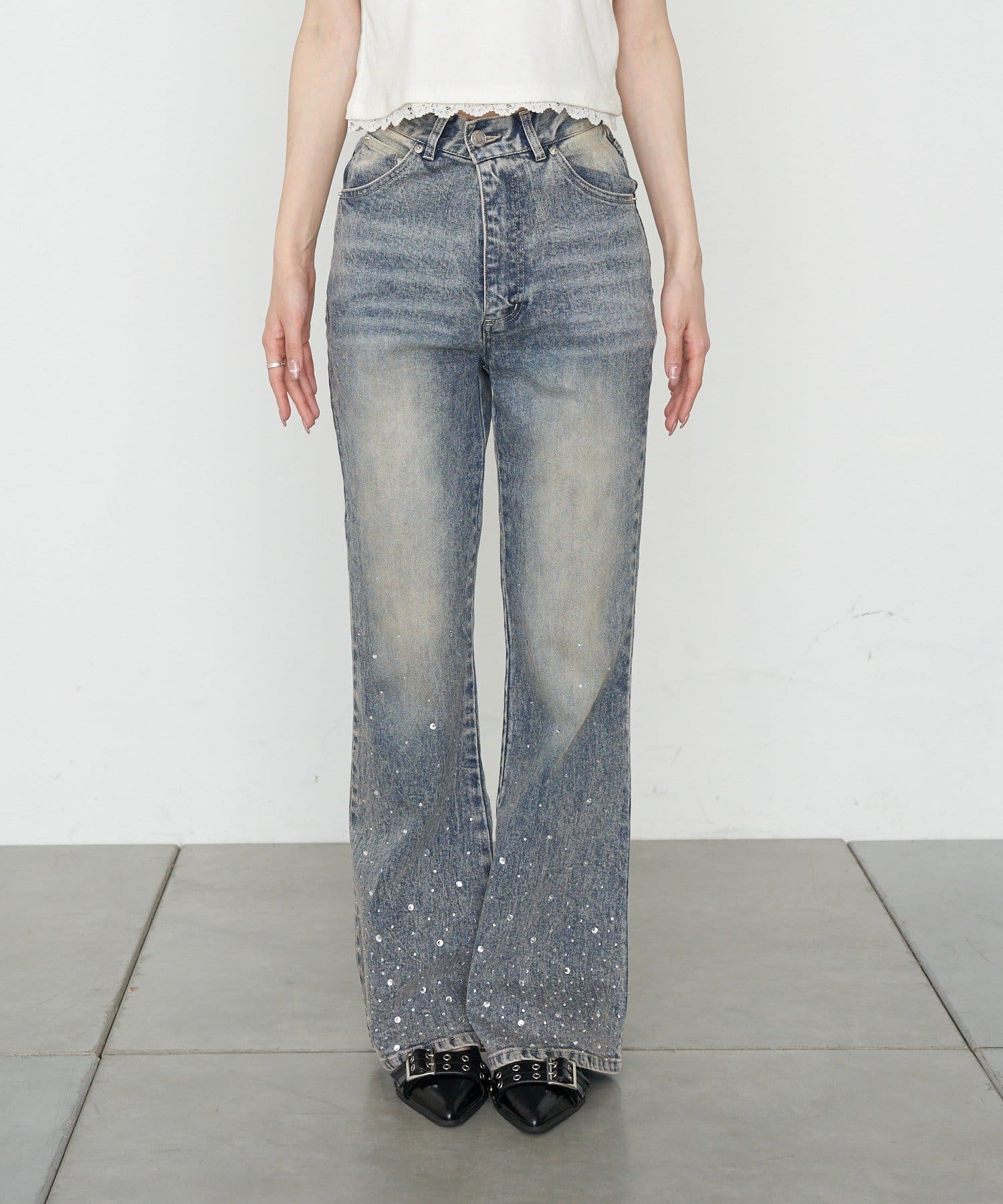 ・裾にはラインストーンが付くので、ベーシックなデニムは既にお持ちの方にもオススメです。