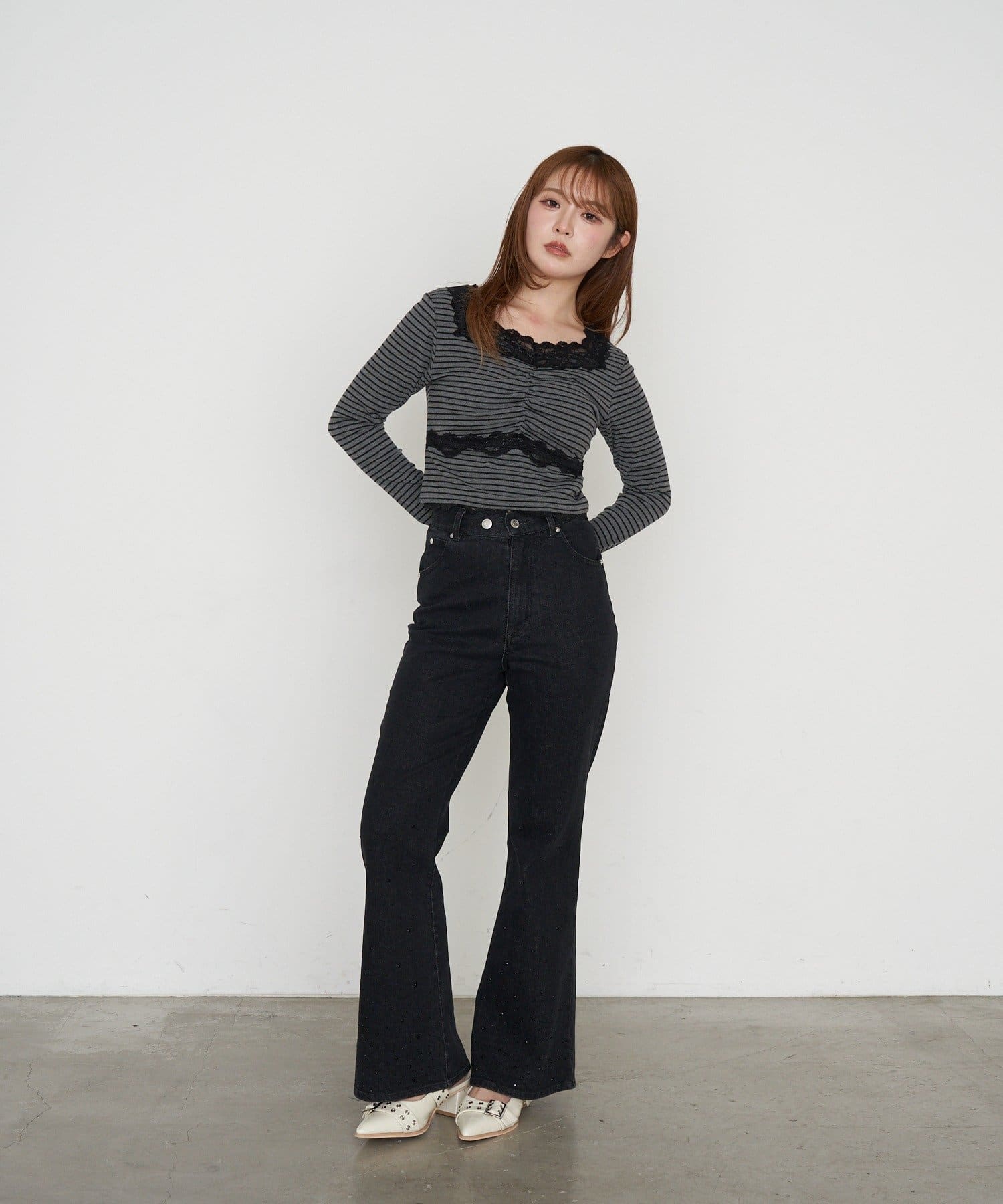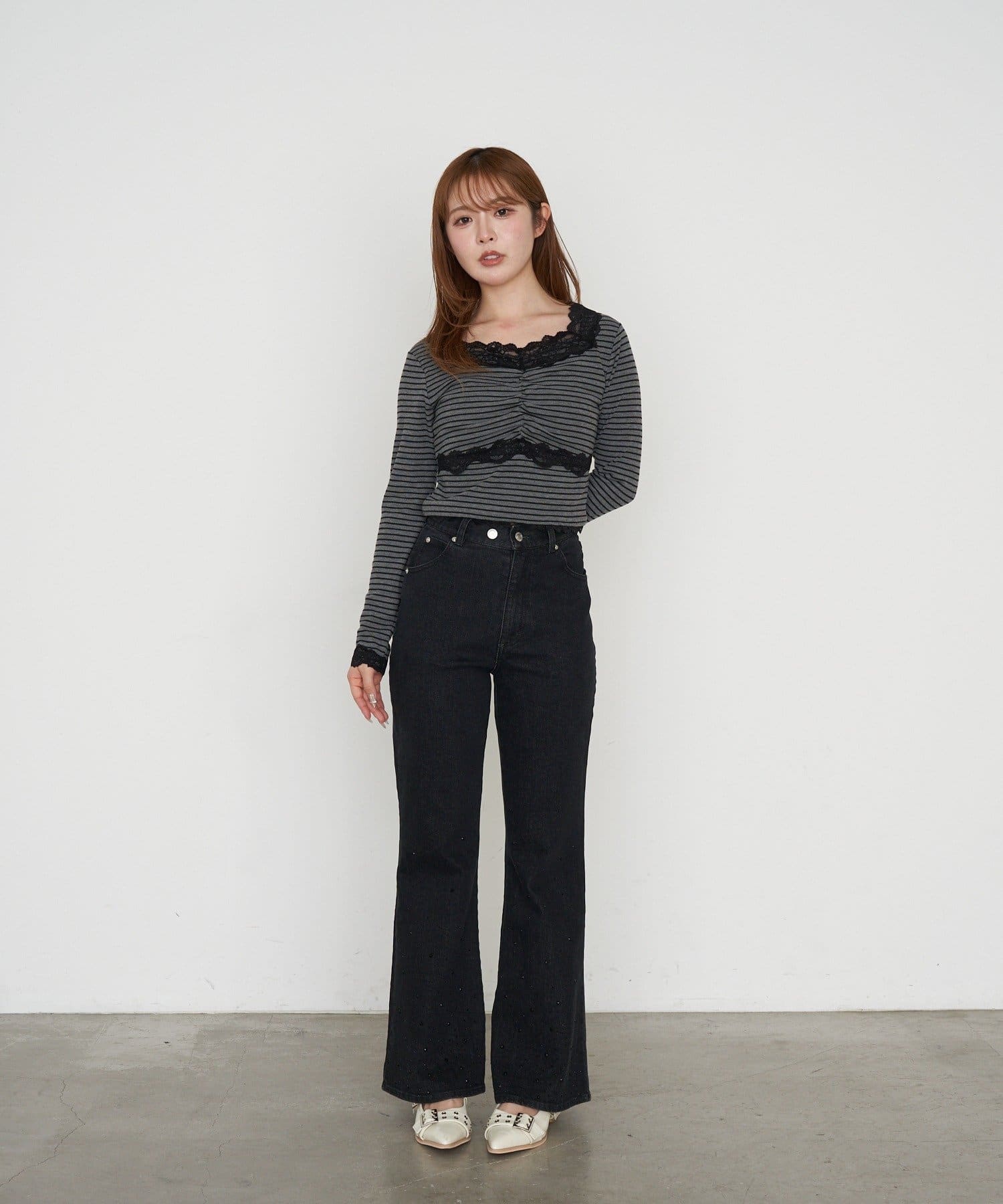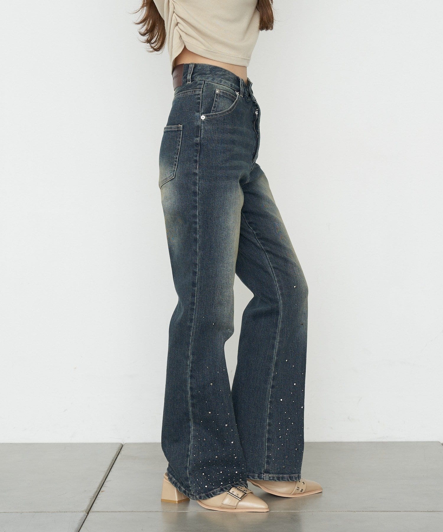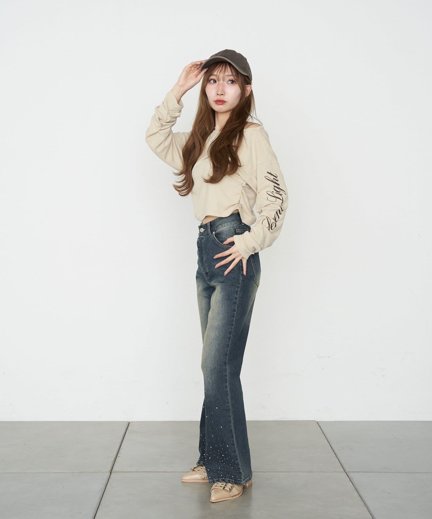 ・裾にはラインストーンが付くので、ベーシックなデニムは既にお持ちの方にもオススメです。