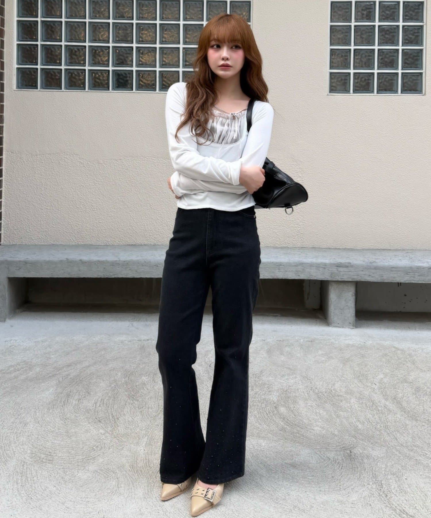 ・コンパクトなトップスと合わせた韓国風スタイル