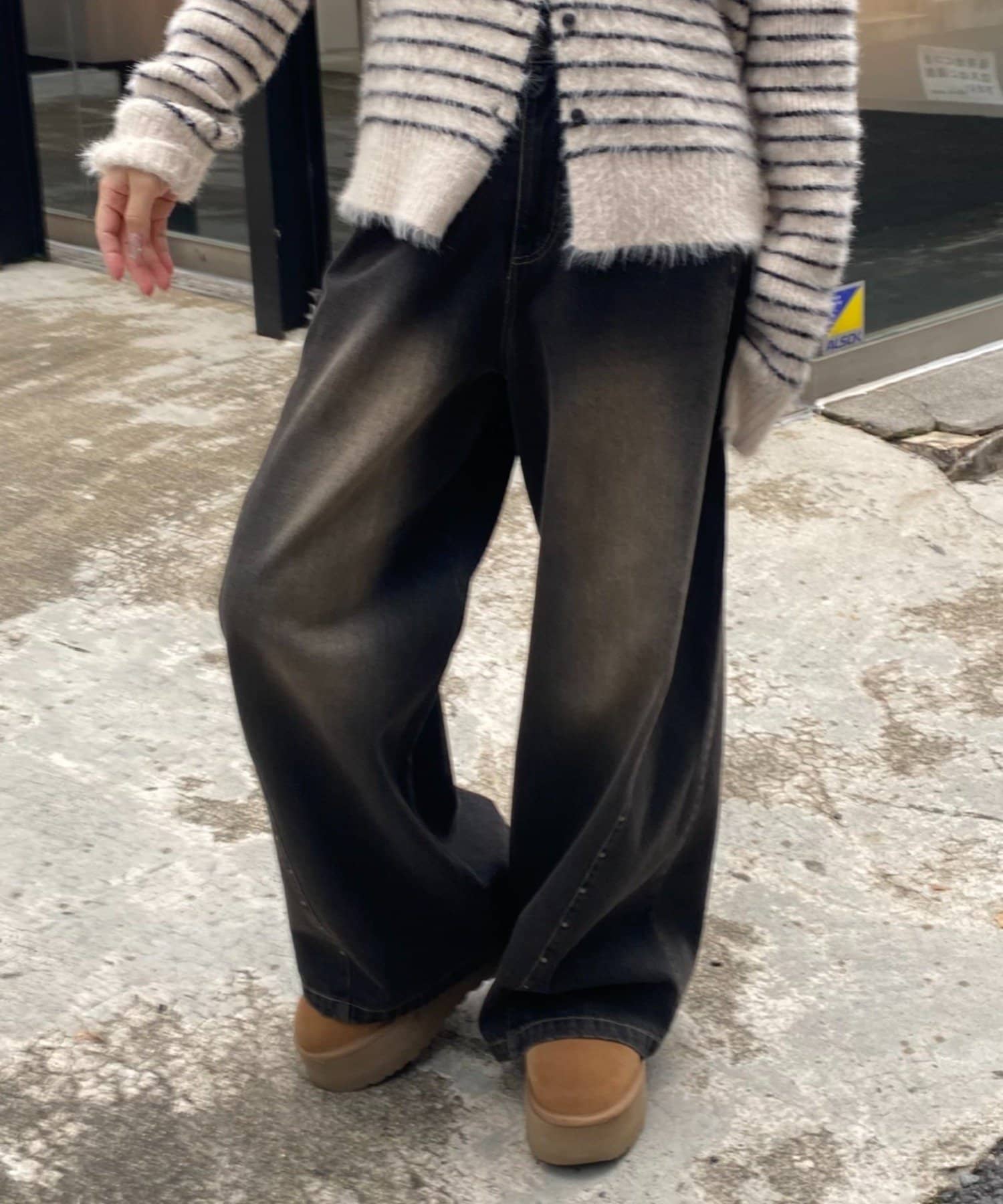 TOP > RAY CASSIN > レディース > パンツ > デニムパンツ > スタッズ付ワイドデニム