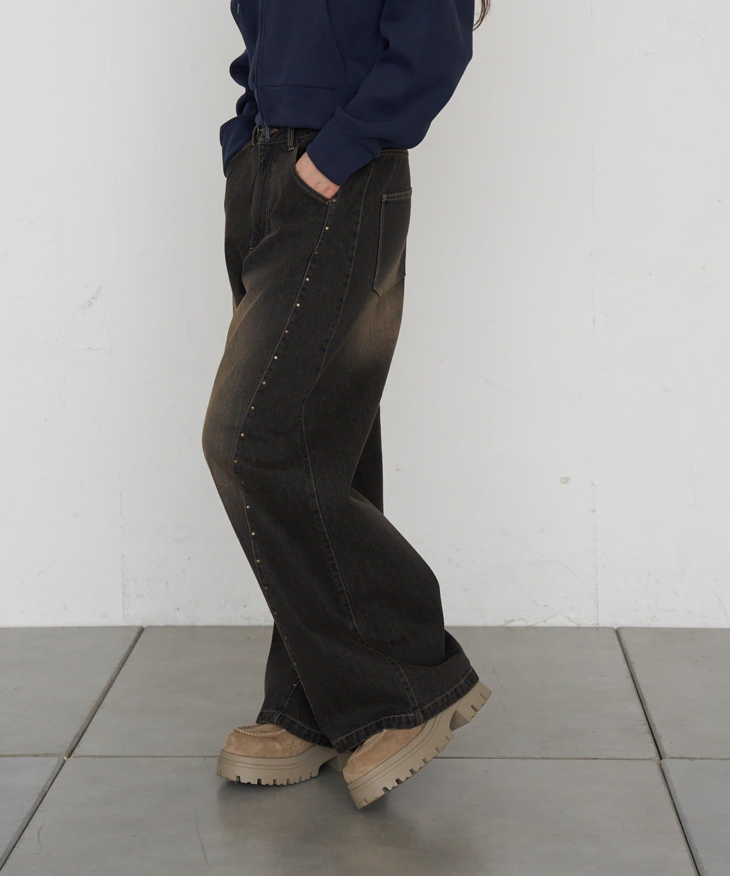 • RAY CASSIN(レイカズン) スタッズ付ワイドデニム