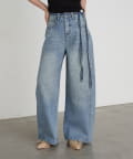 ・付属の紐の使い方で、カジュアルにもフェミニンにも決まる1着です。