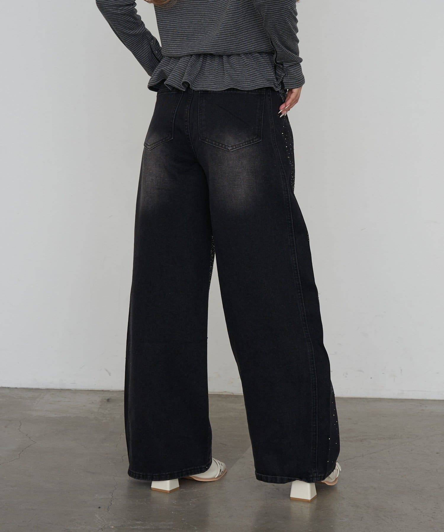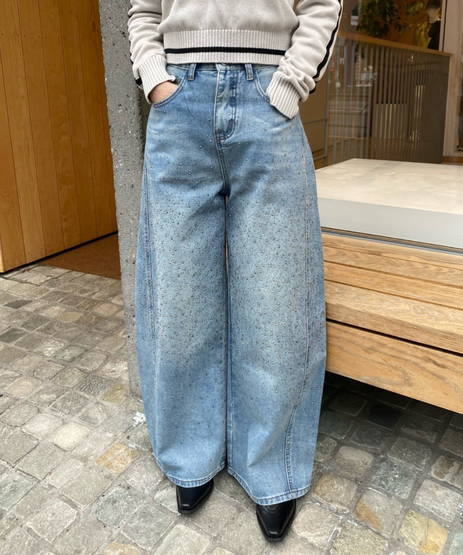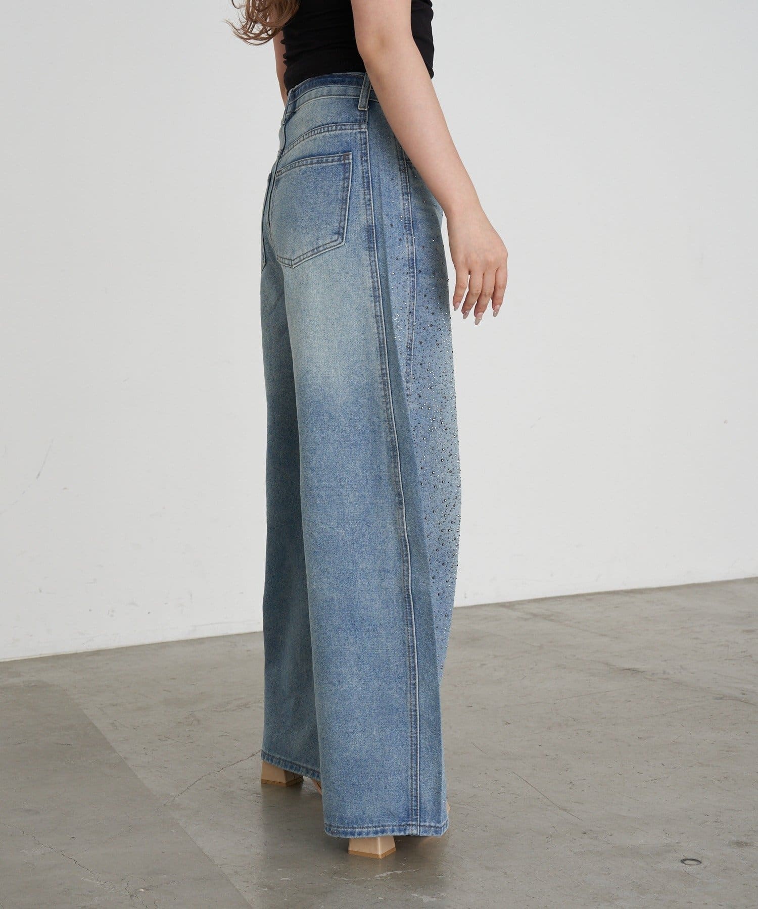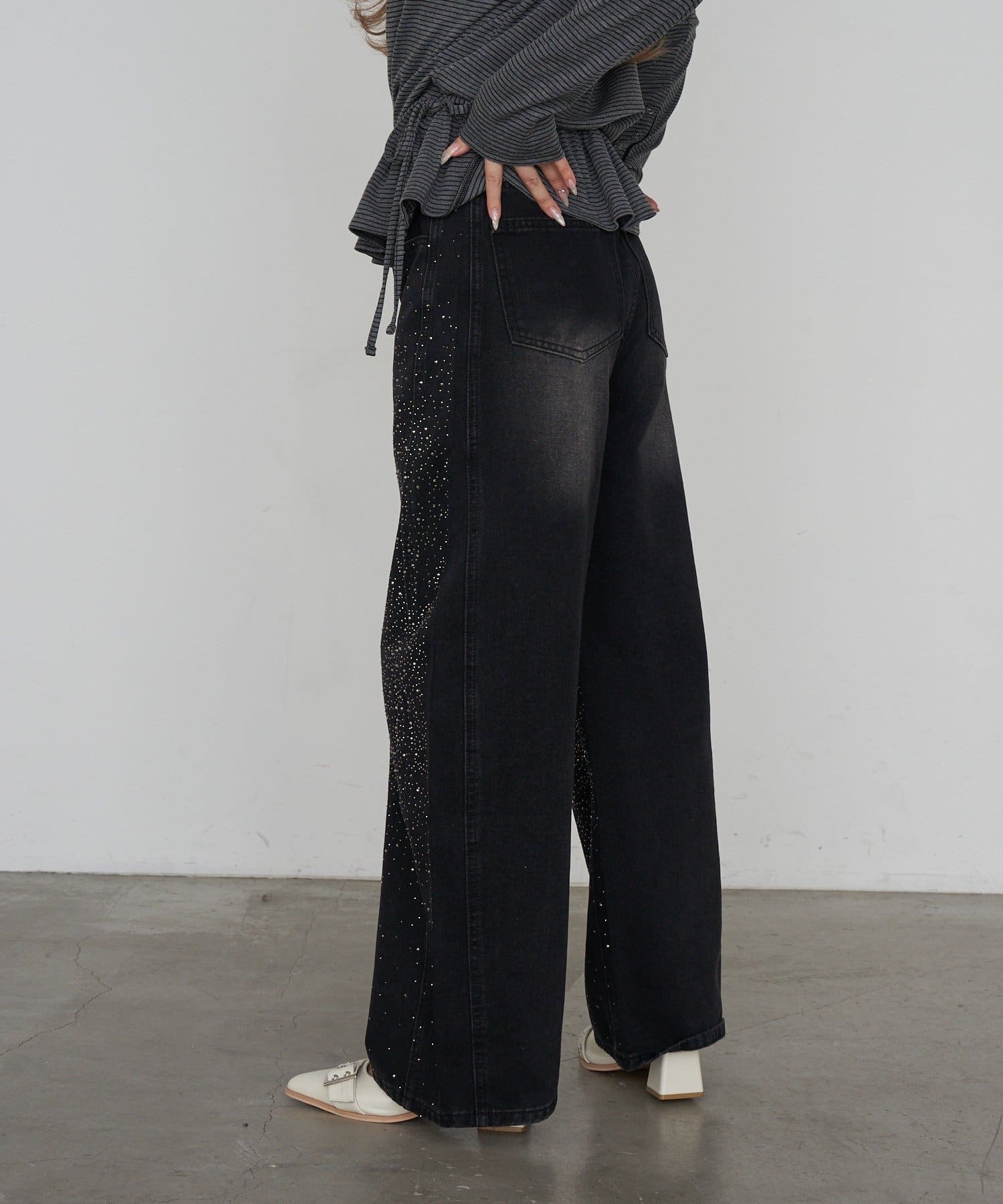 ・全体に散りばめられたラインストーンが、目を惹くデニムです。