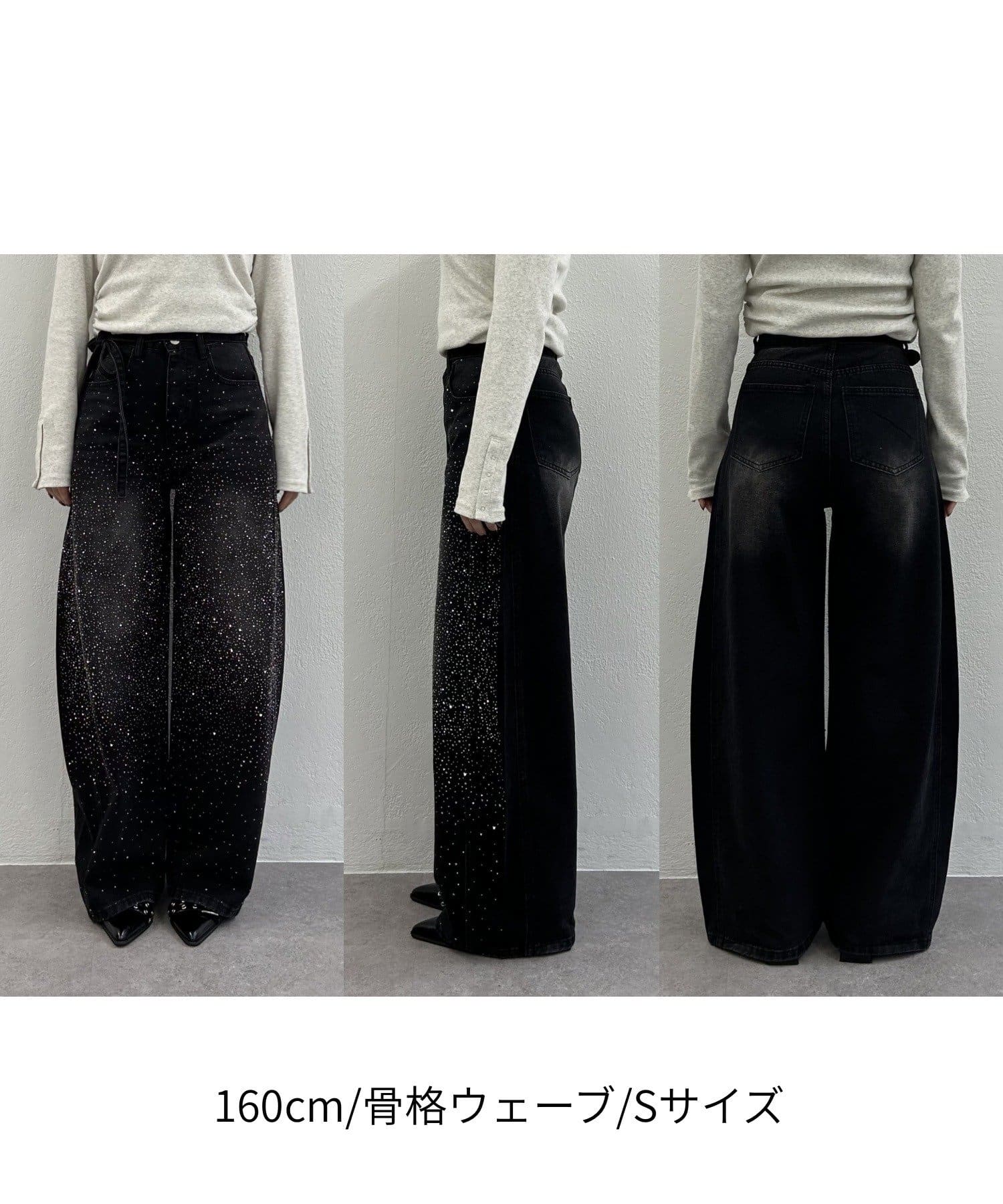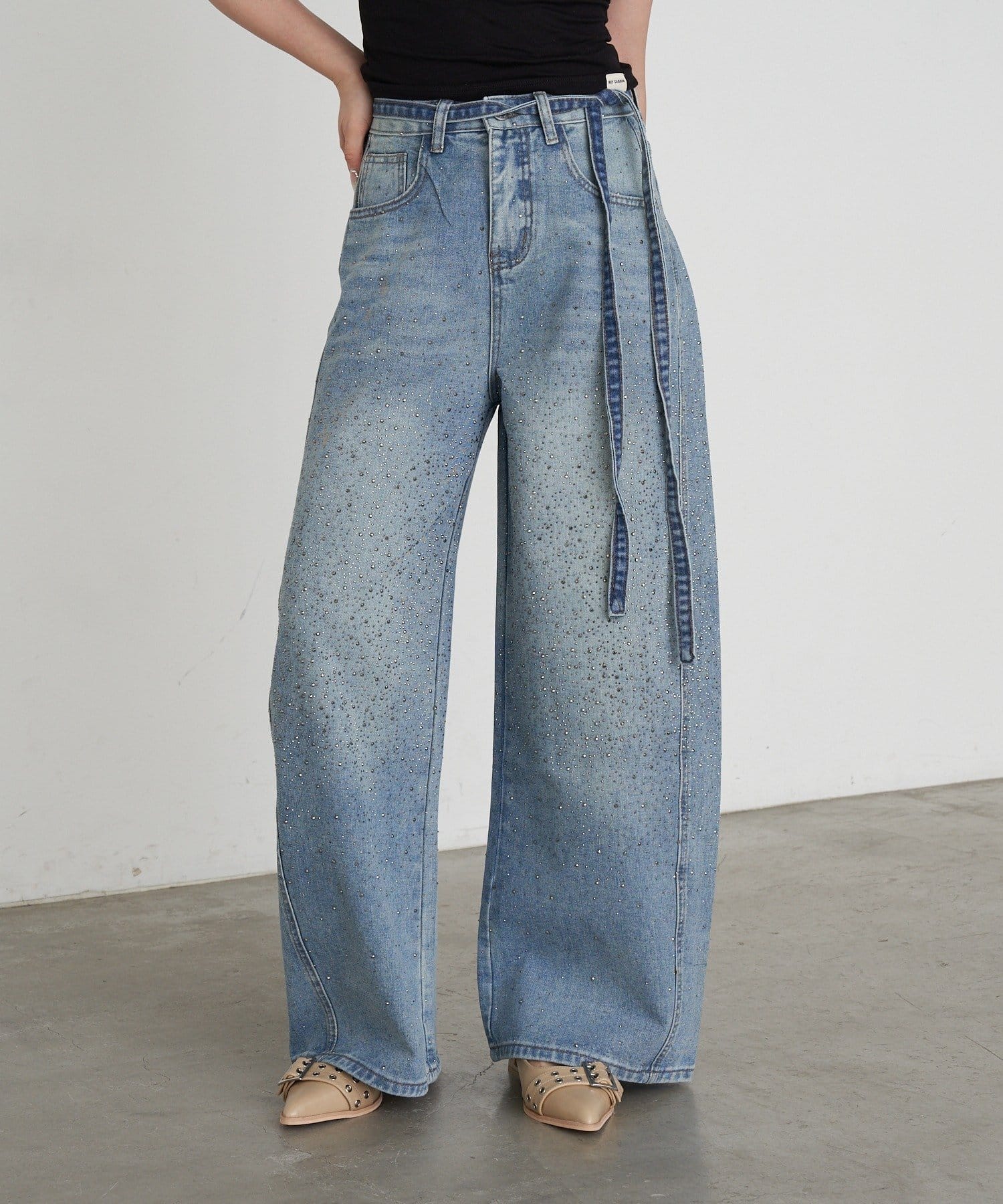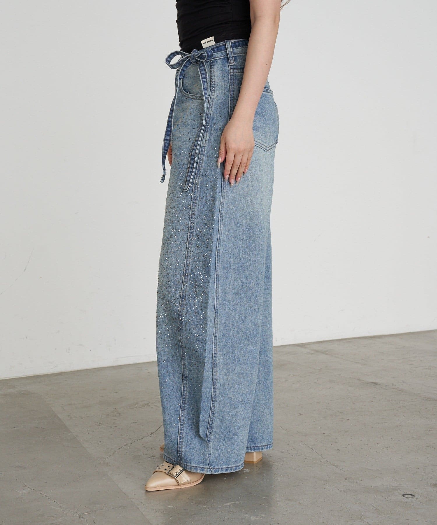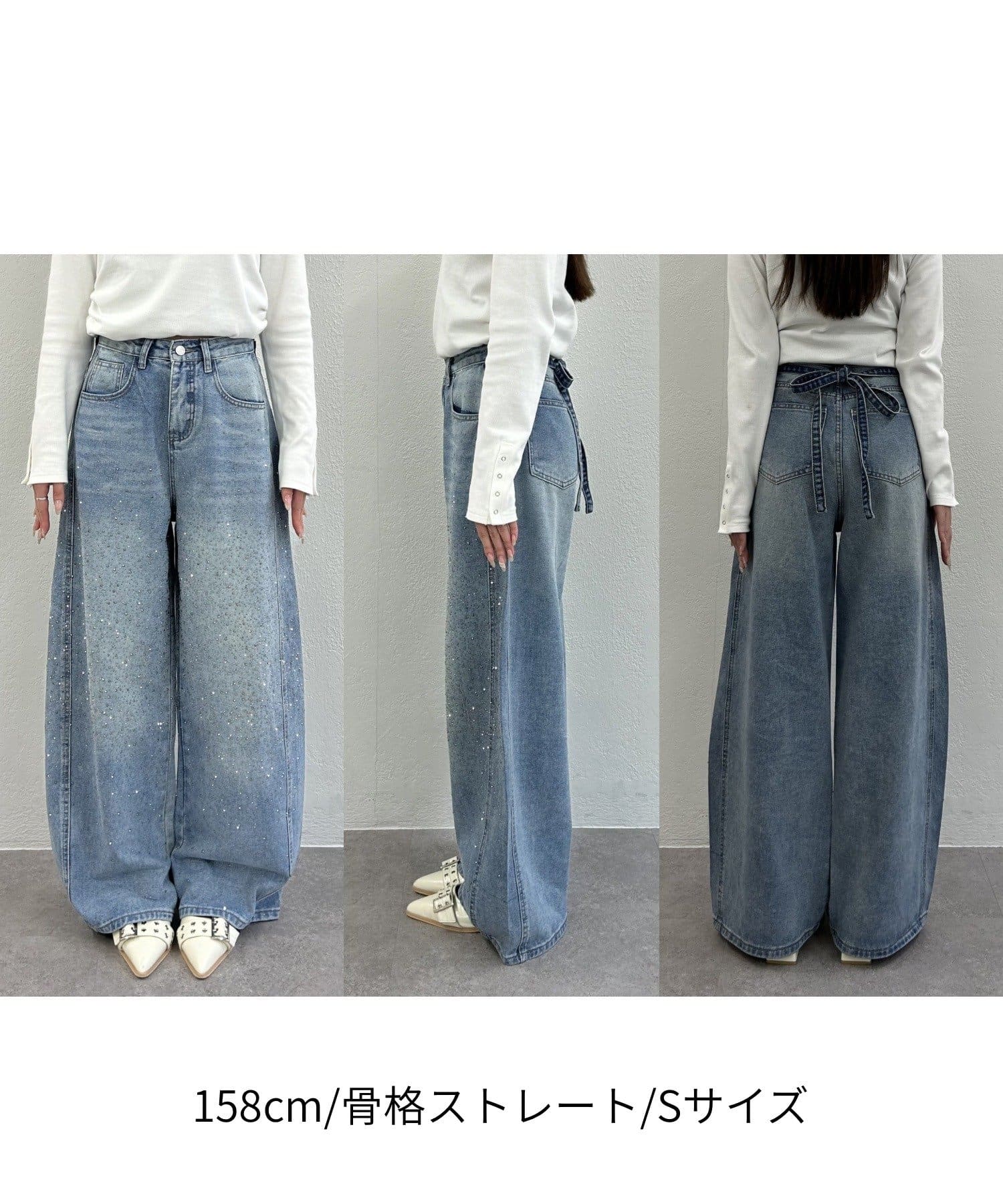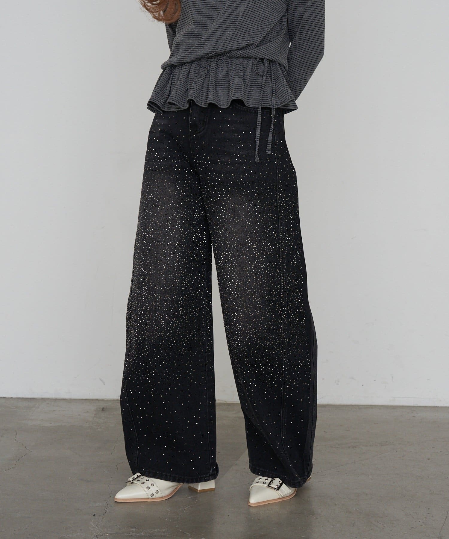 ・全体に散りばめられたラインストーンが、目を惹くデニムです。