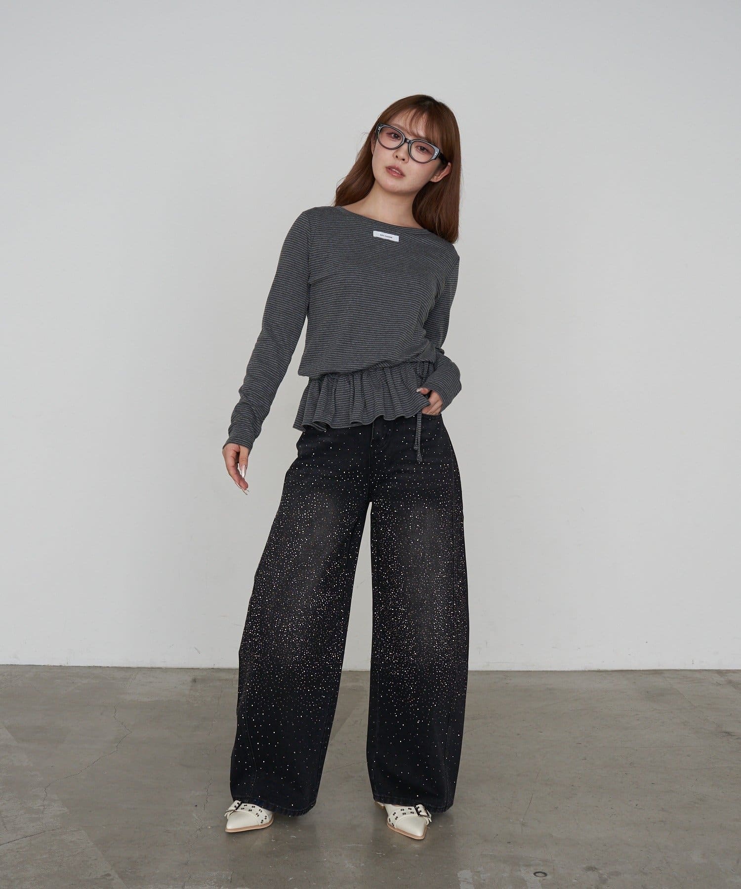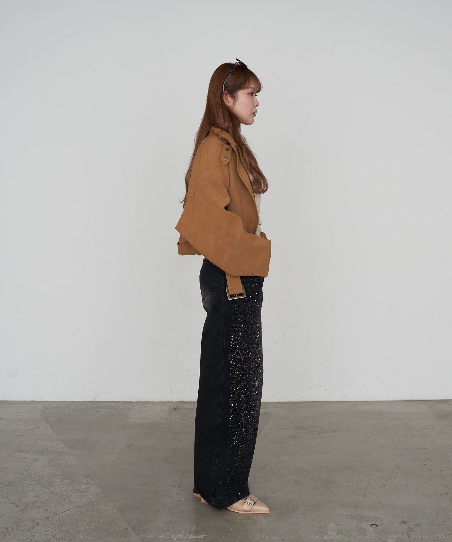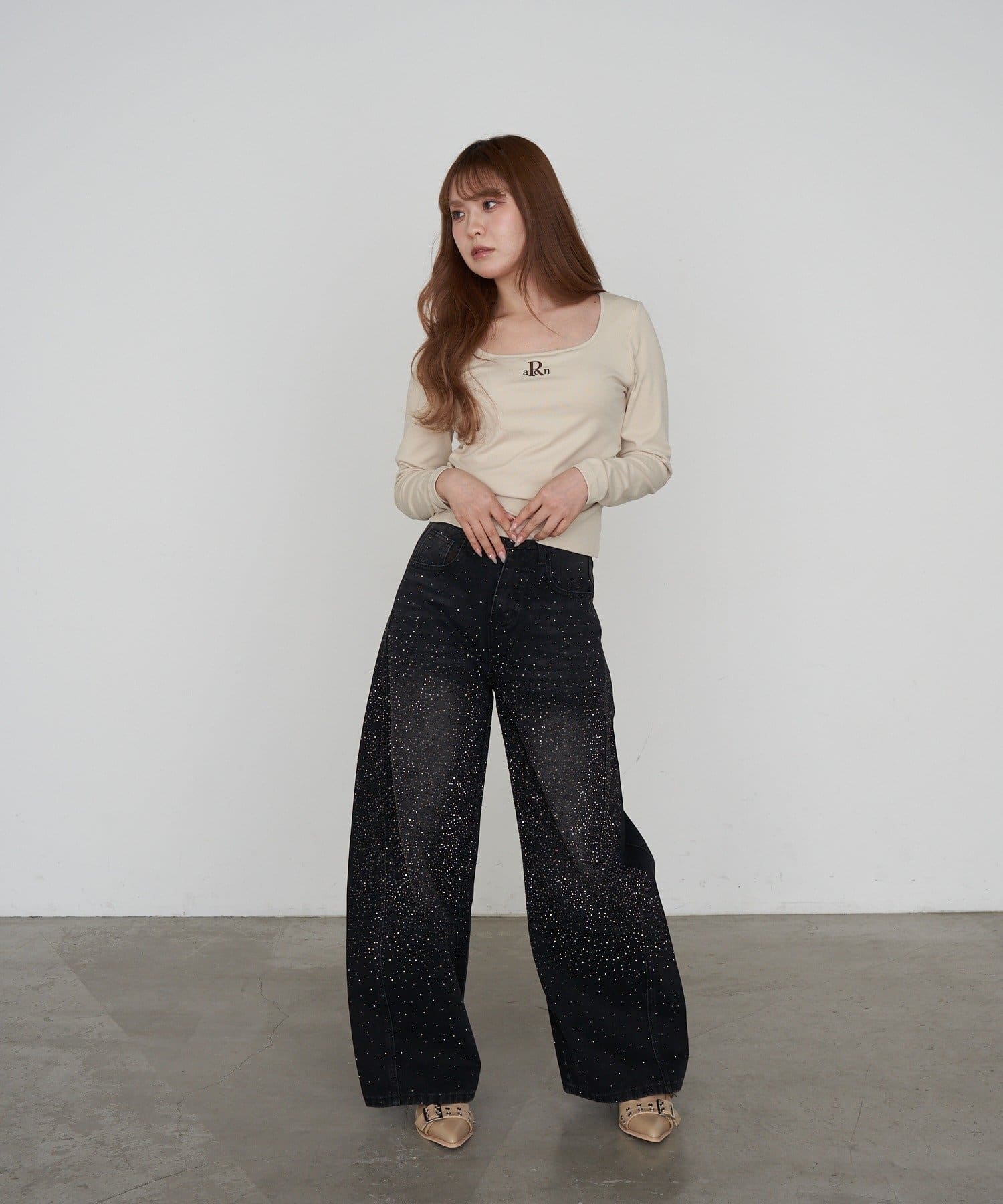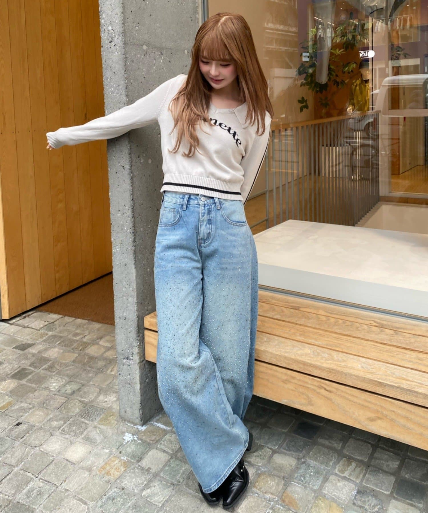 ・全体に散りばめられたラインストーンが、目を惹くデニムです。