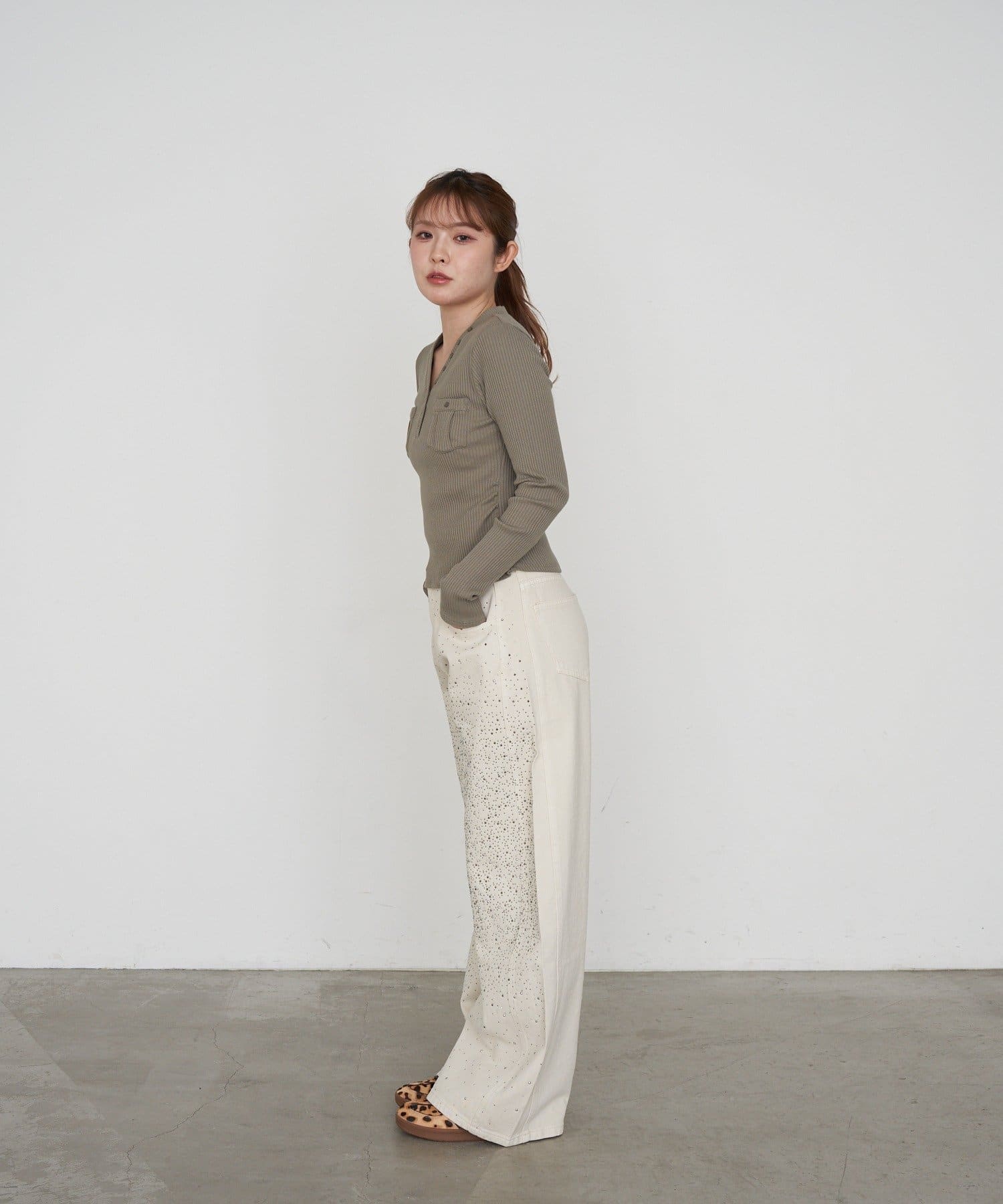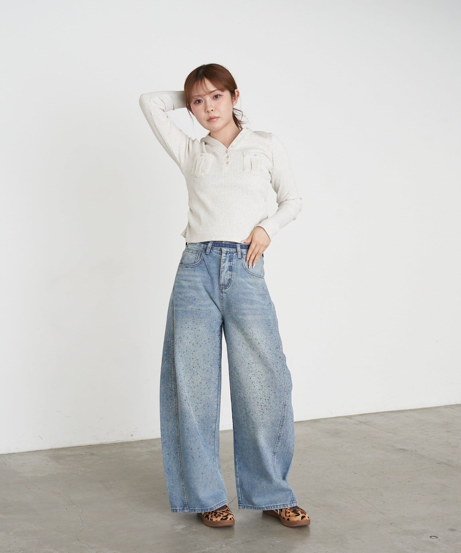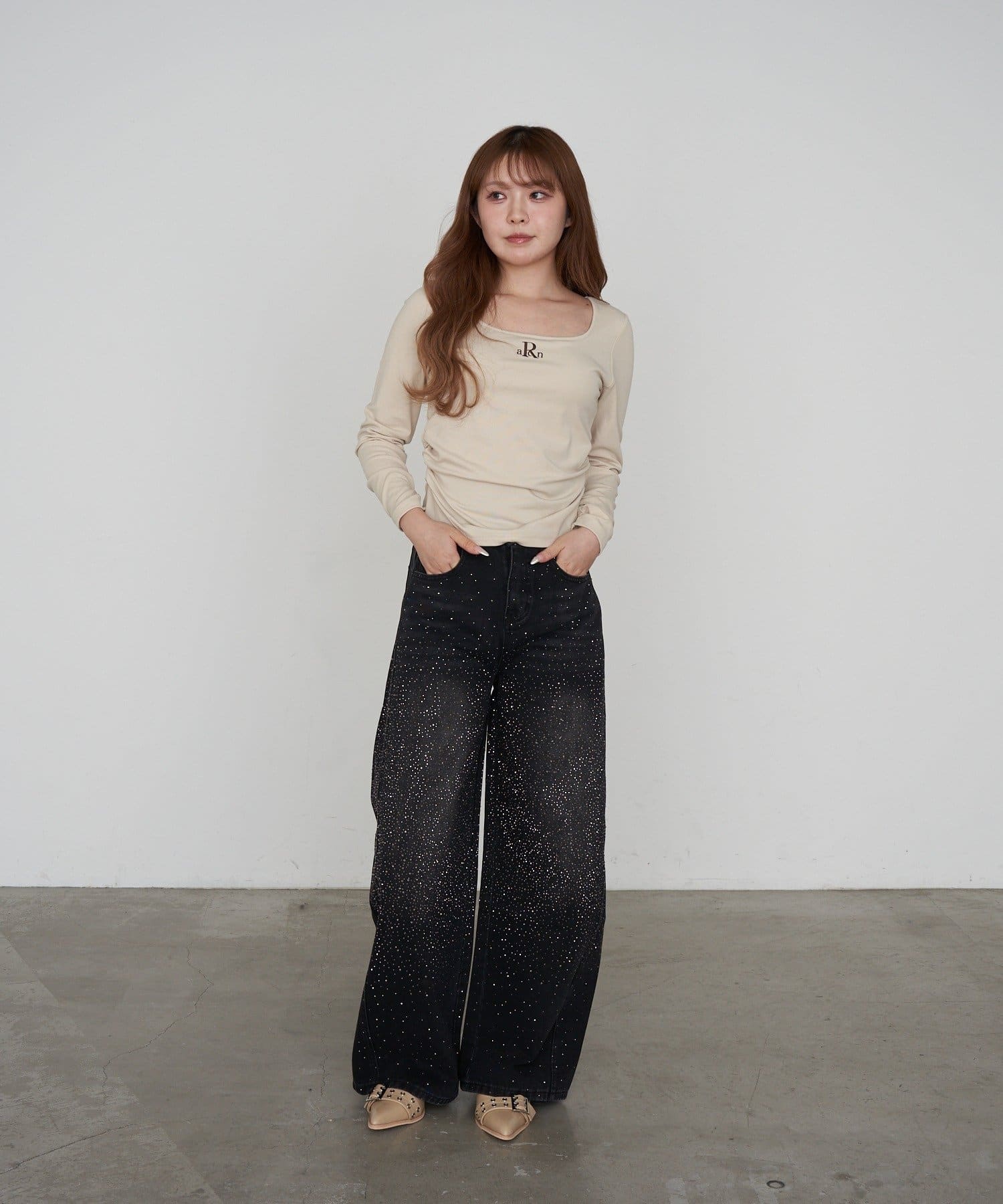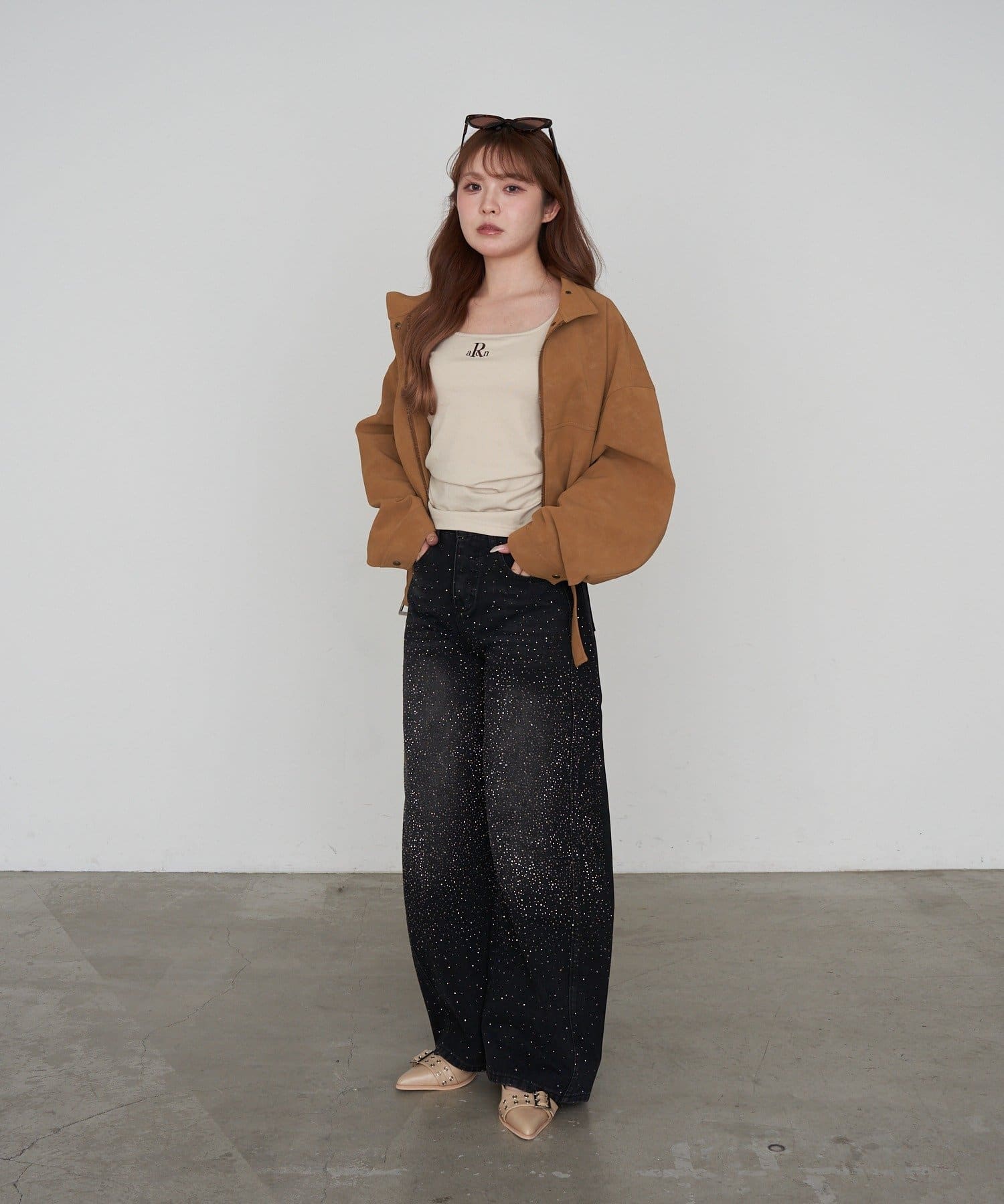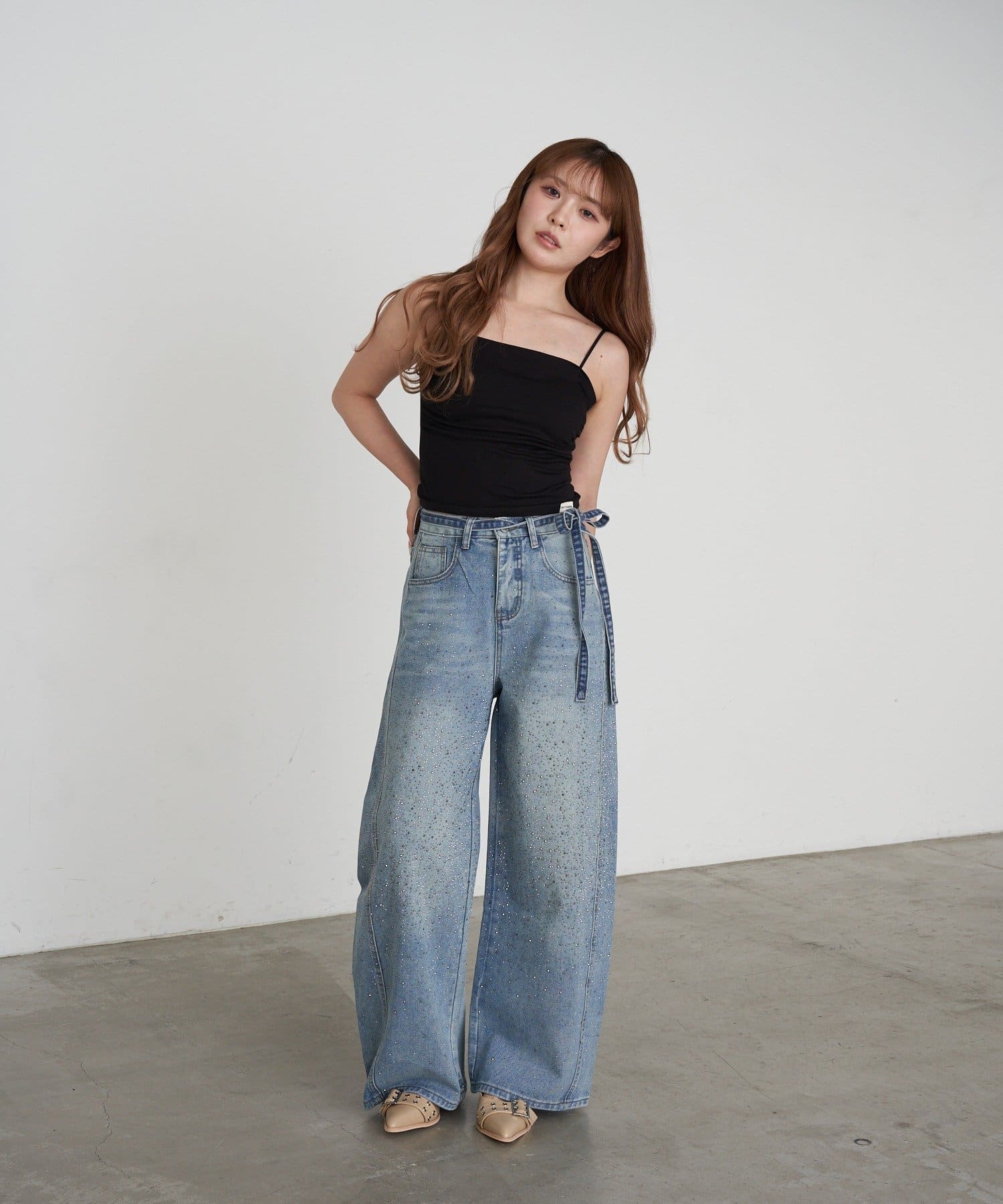 ・全体に散りばめられたラインストーンが、目を惹くデニムです。