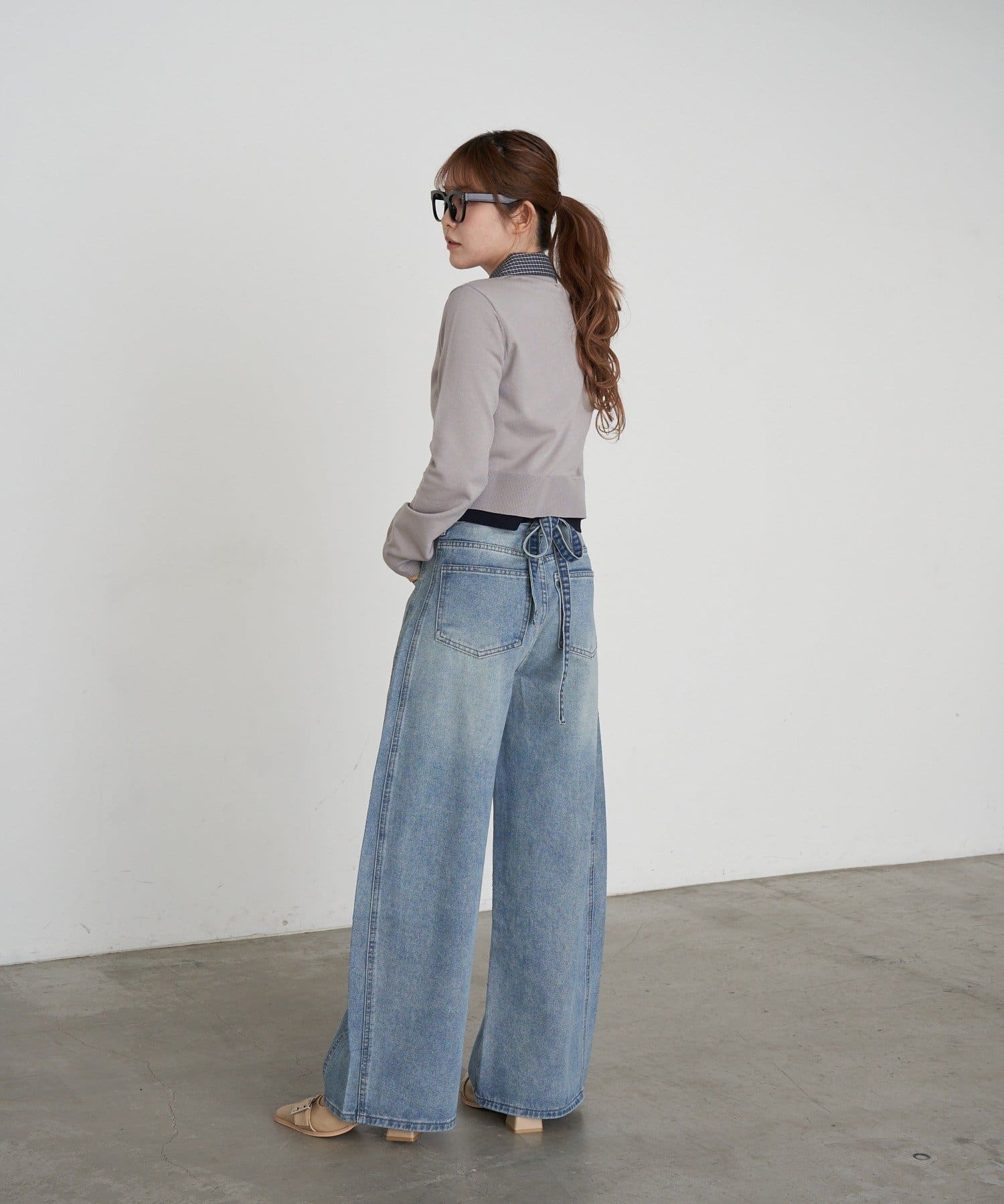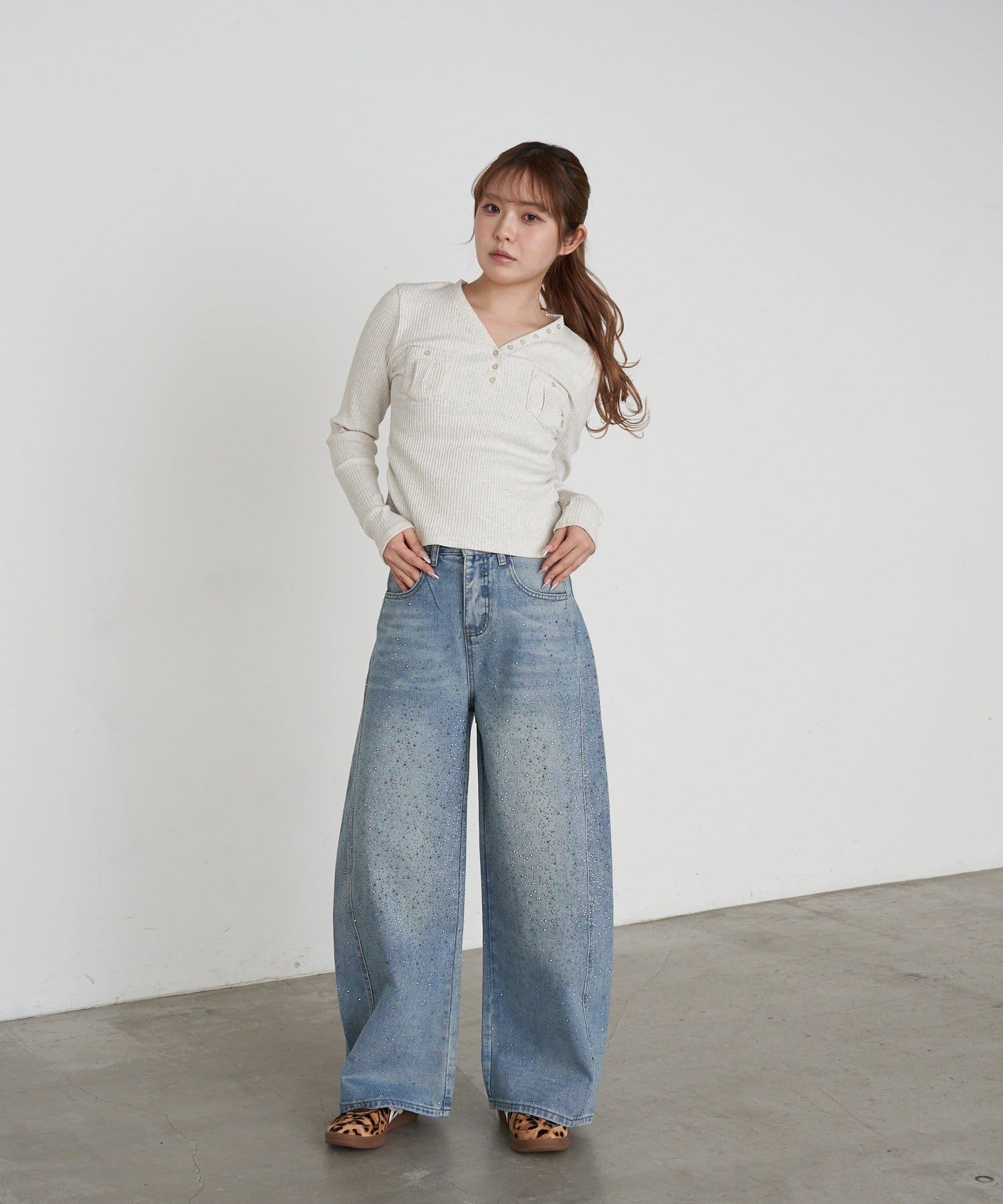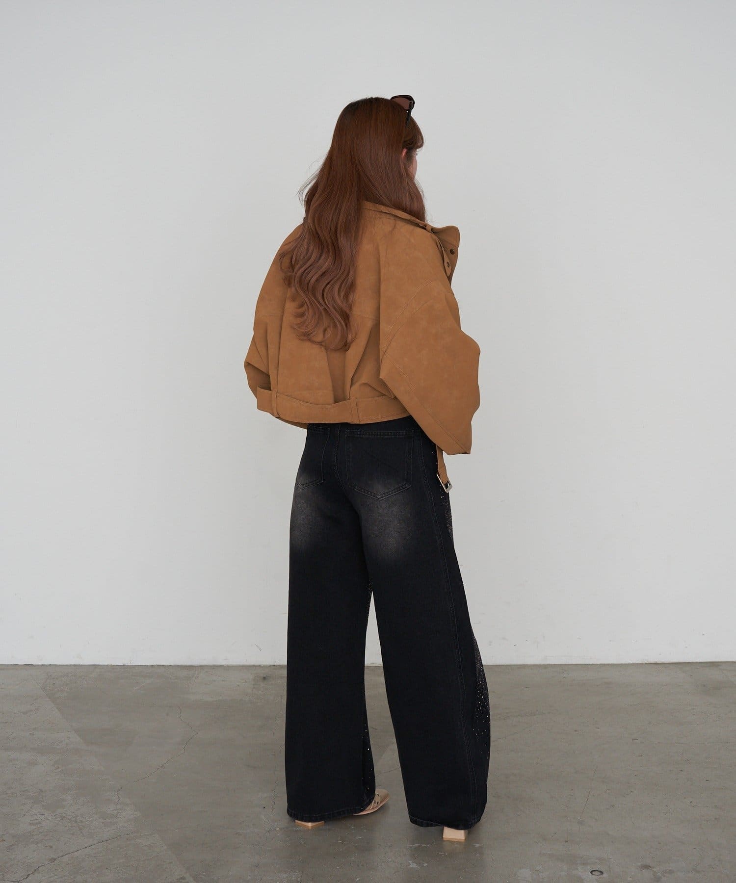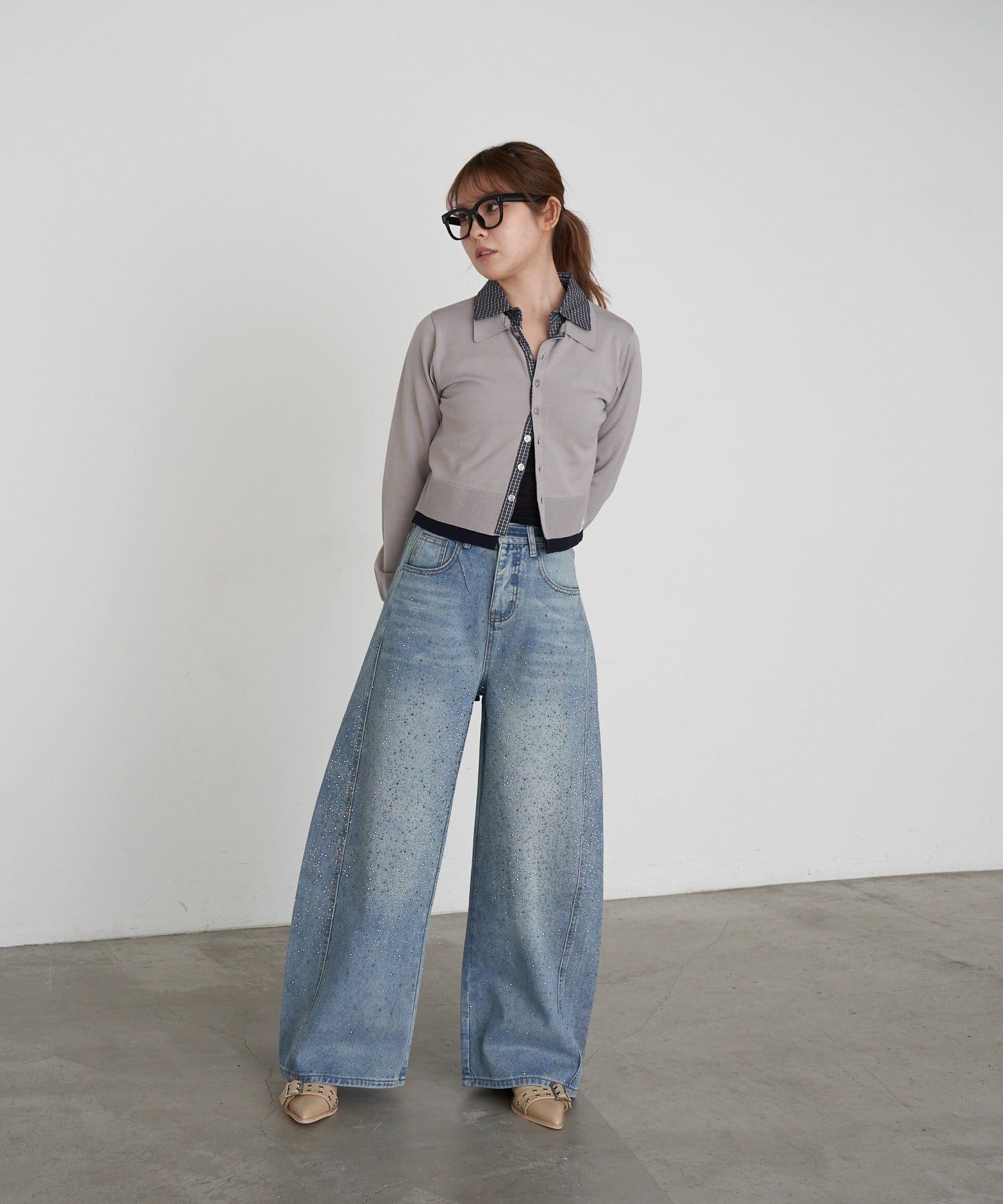 ・全体に散りばめられたラインストーンが、目を惹くデニムです。