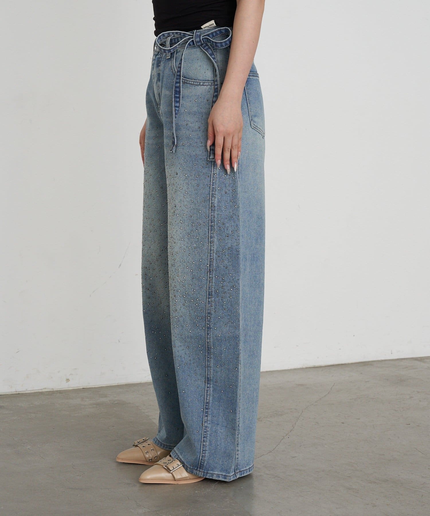 ・全体に散りばめられたラインストーンが、目を惹くデニムです。