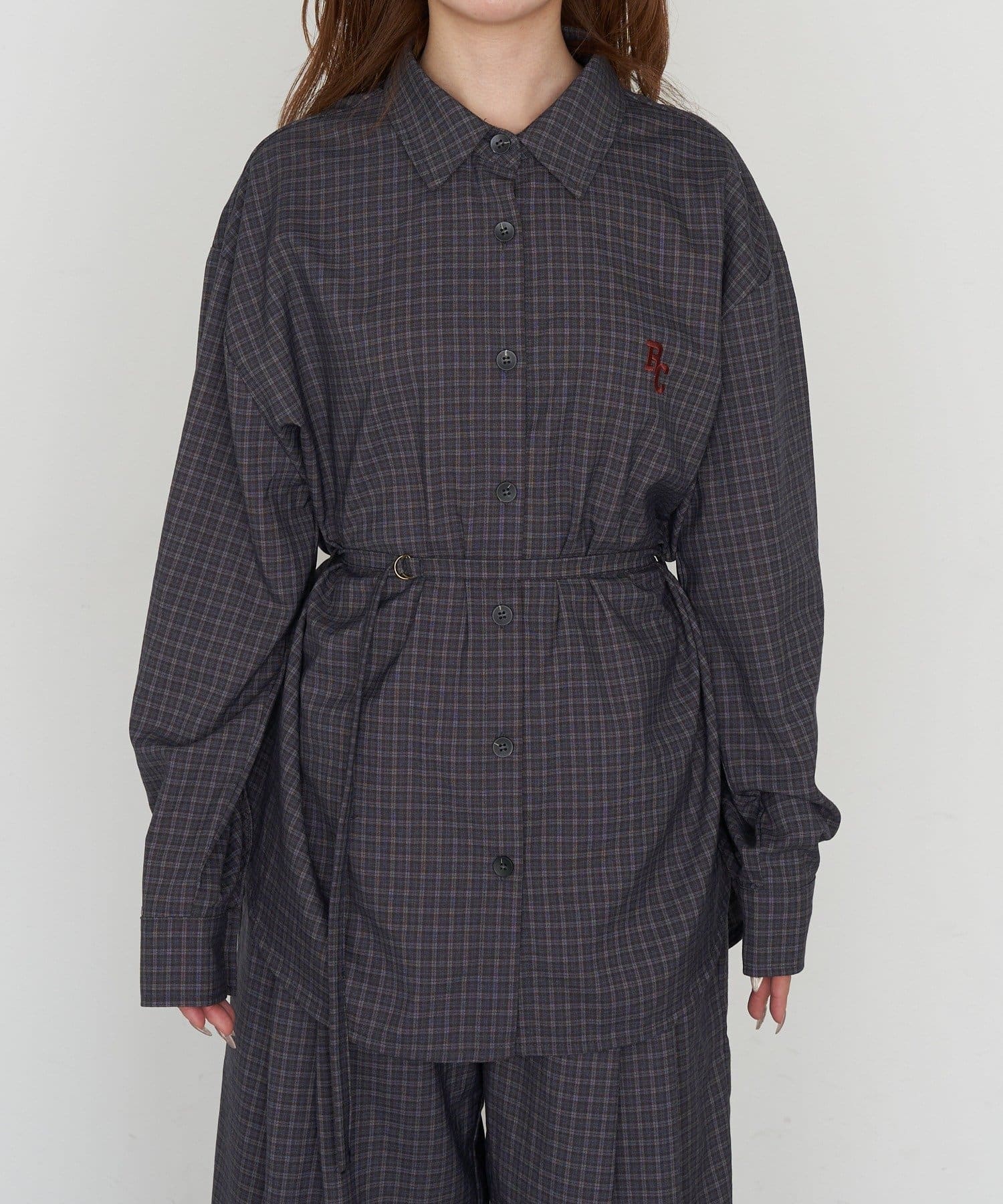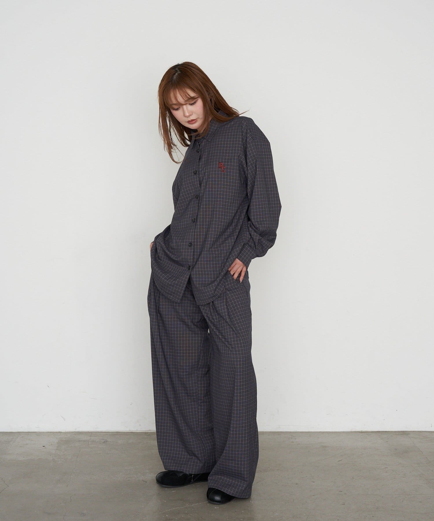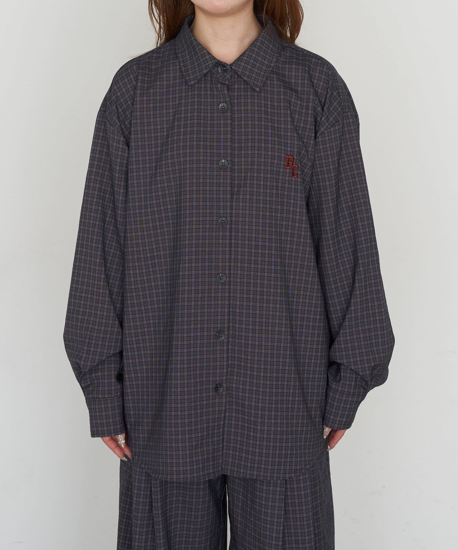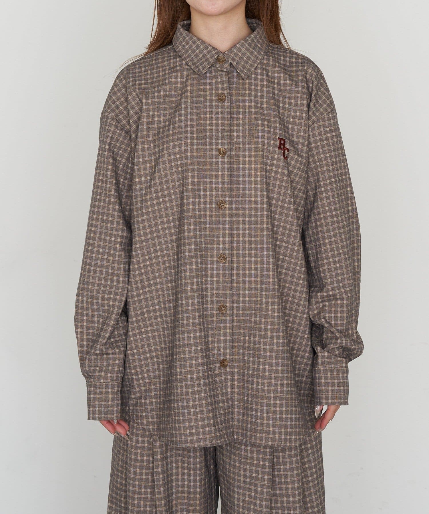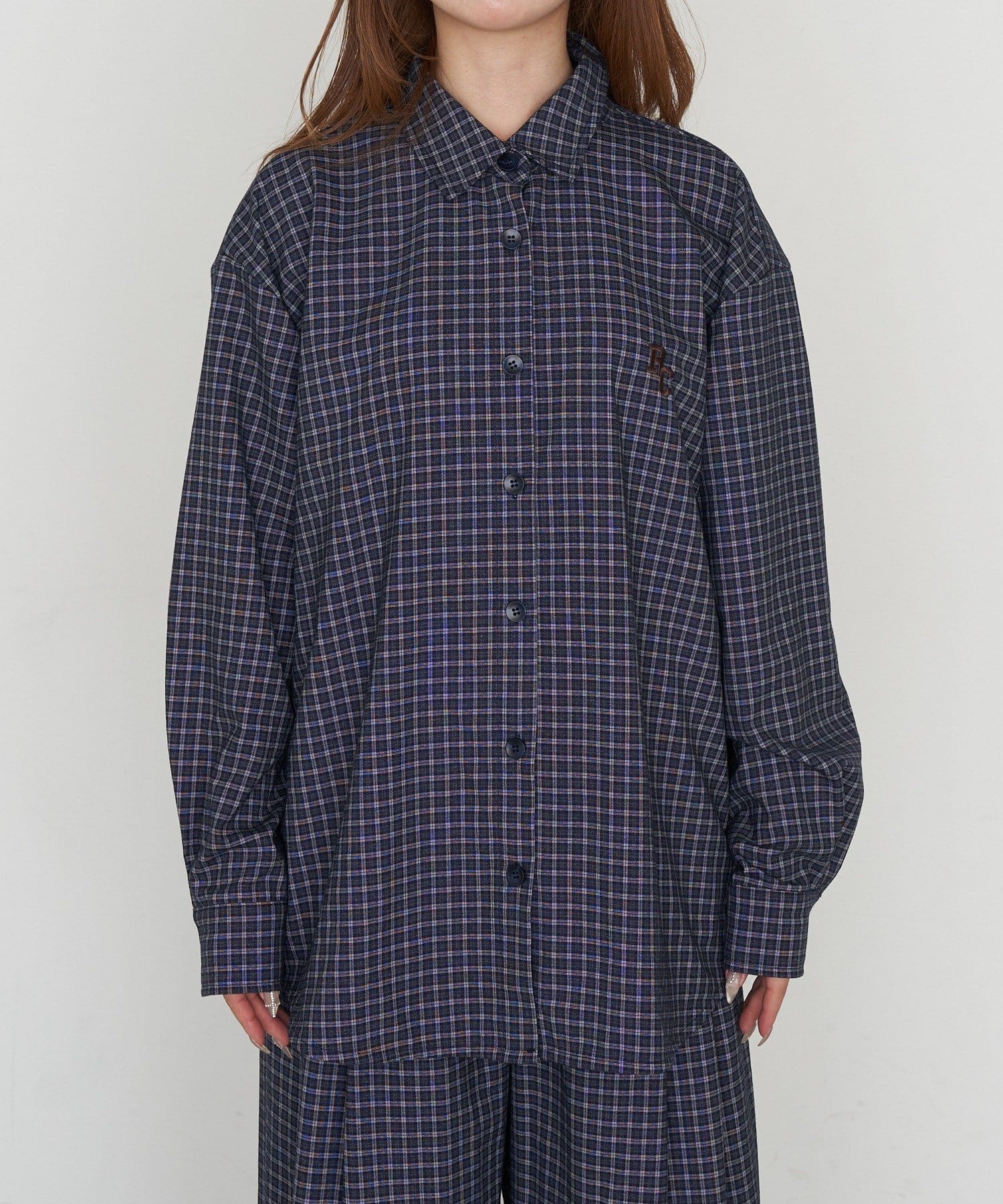 【セットアップで着られる】オーバーサイズ胸刺繡チェックシャツ