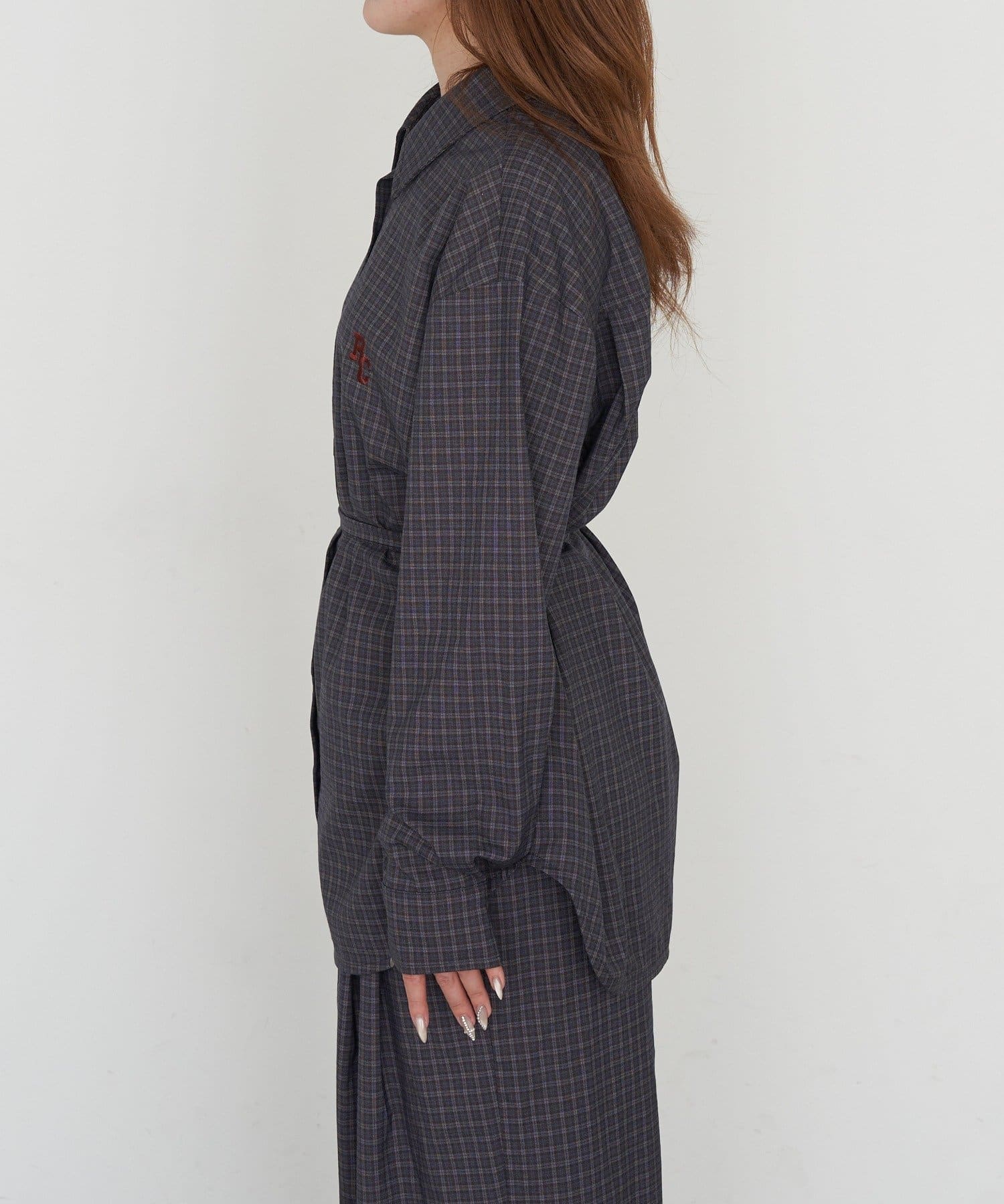 【SET UPで着られる!】オーバーサイズ胸刺繡チェックシャツ