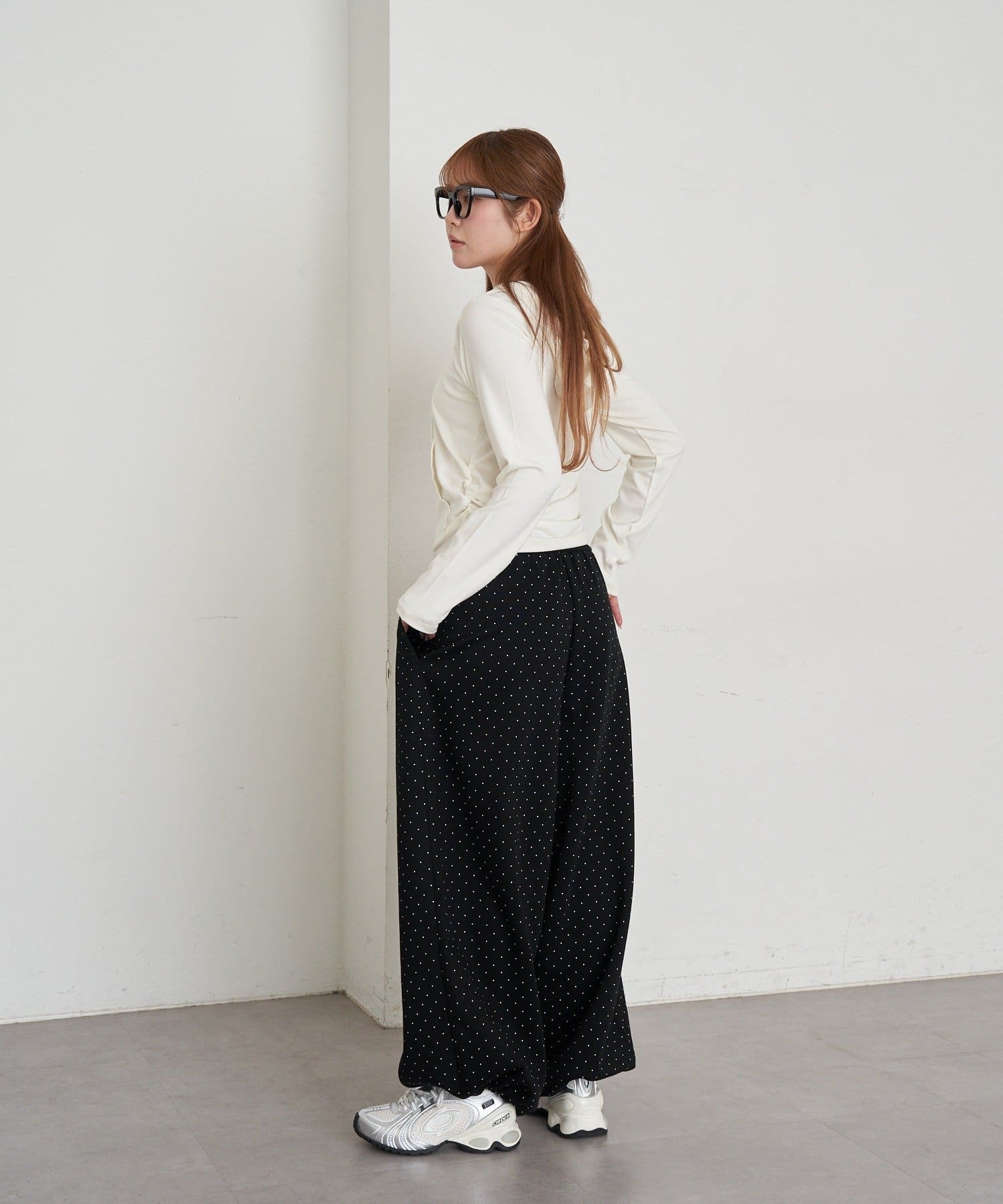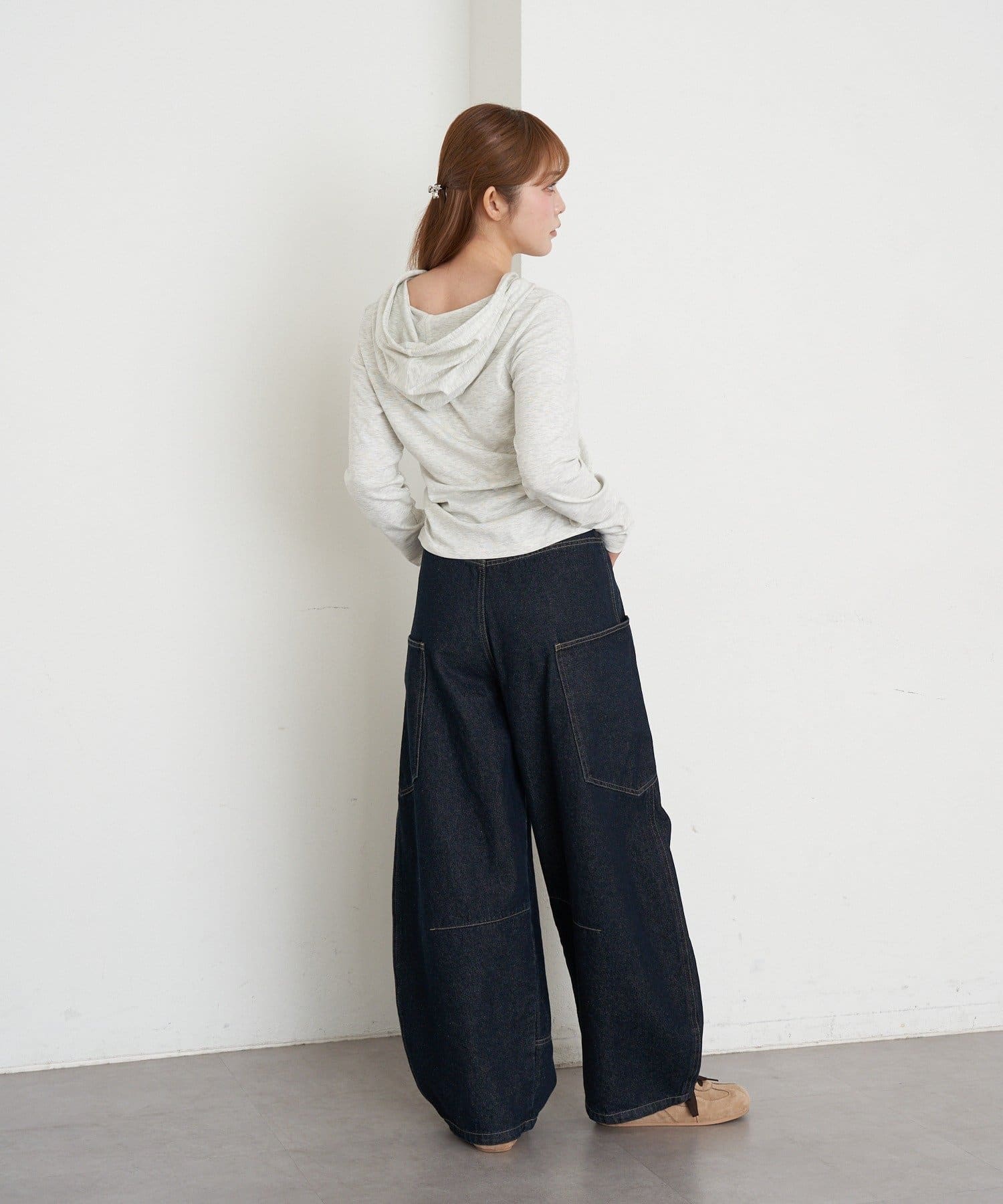 ・ルーズなボトムを合わせたカジュアルなスタイリング