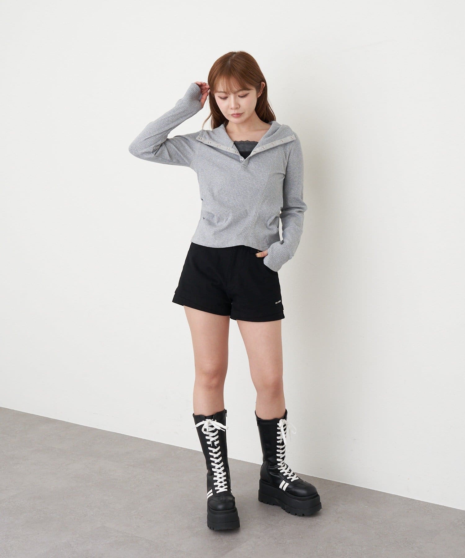 ・前面のみレイヤード風のデザインなので、スッキリ着られるアイテムです。