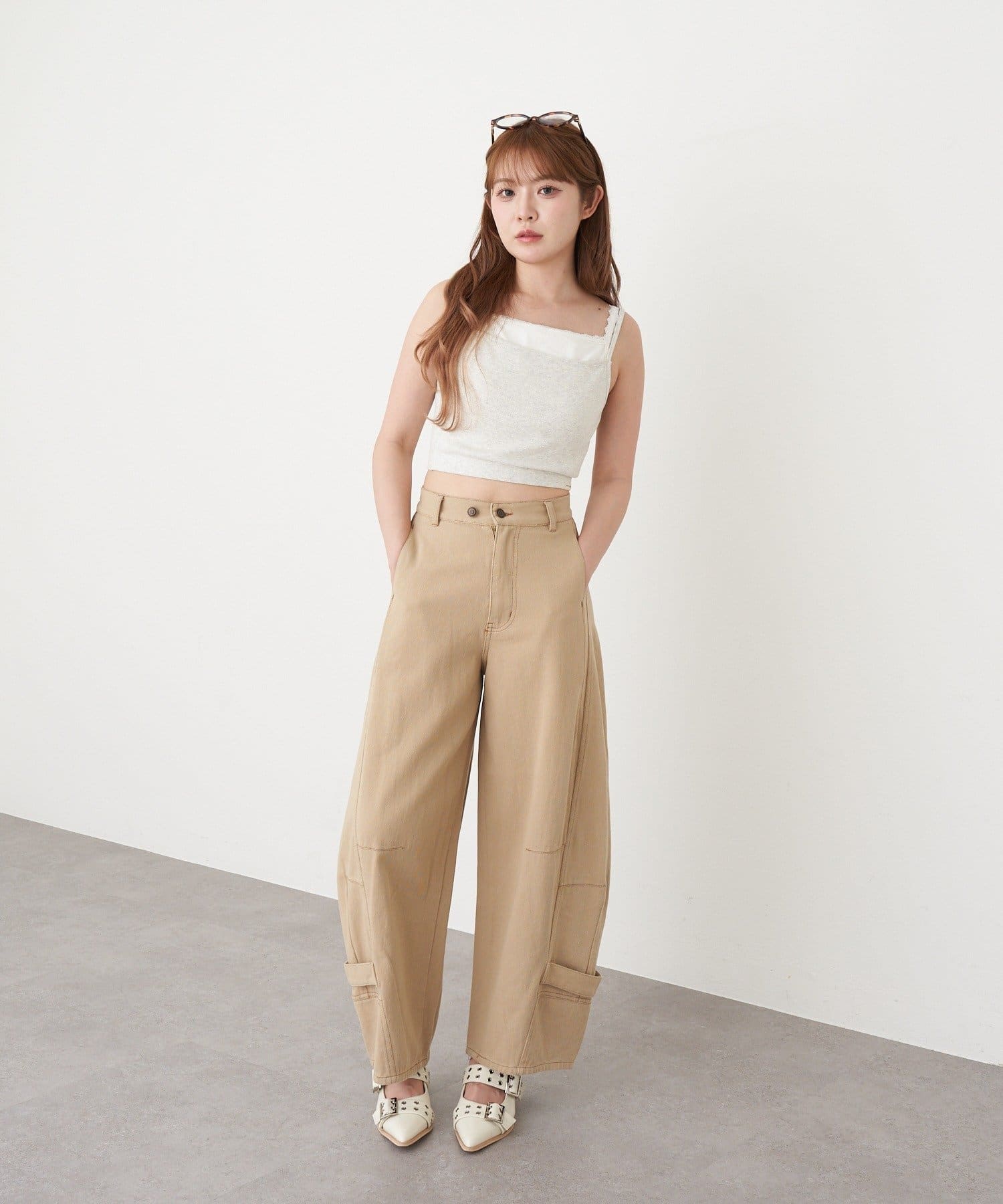 レイヤードパット付キャミ