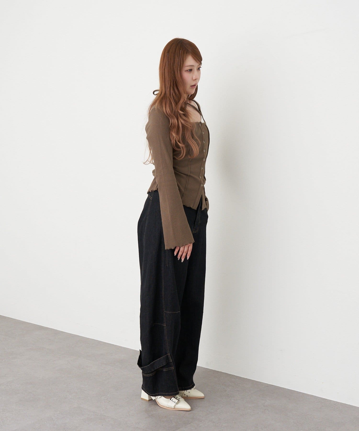 • RAY CASSIN(レイカズン) 釦開き袖フレアクロス紐ロンT