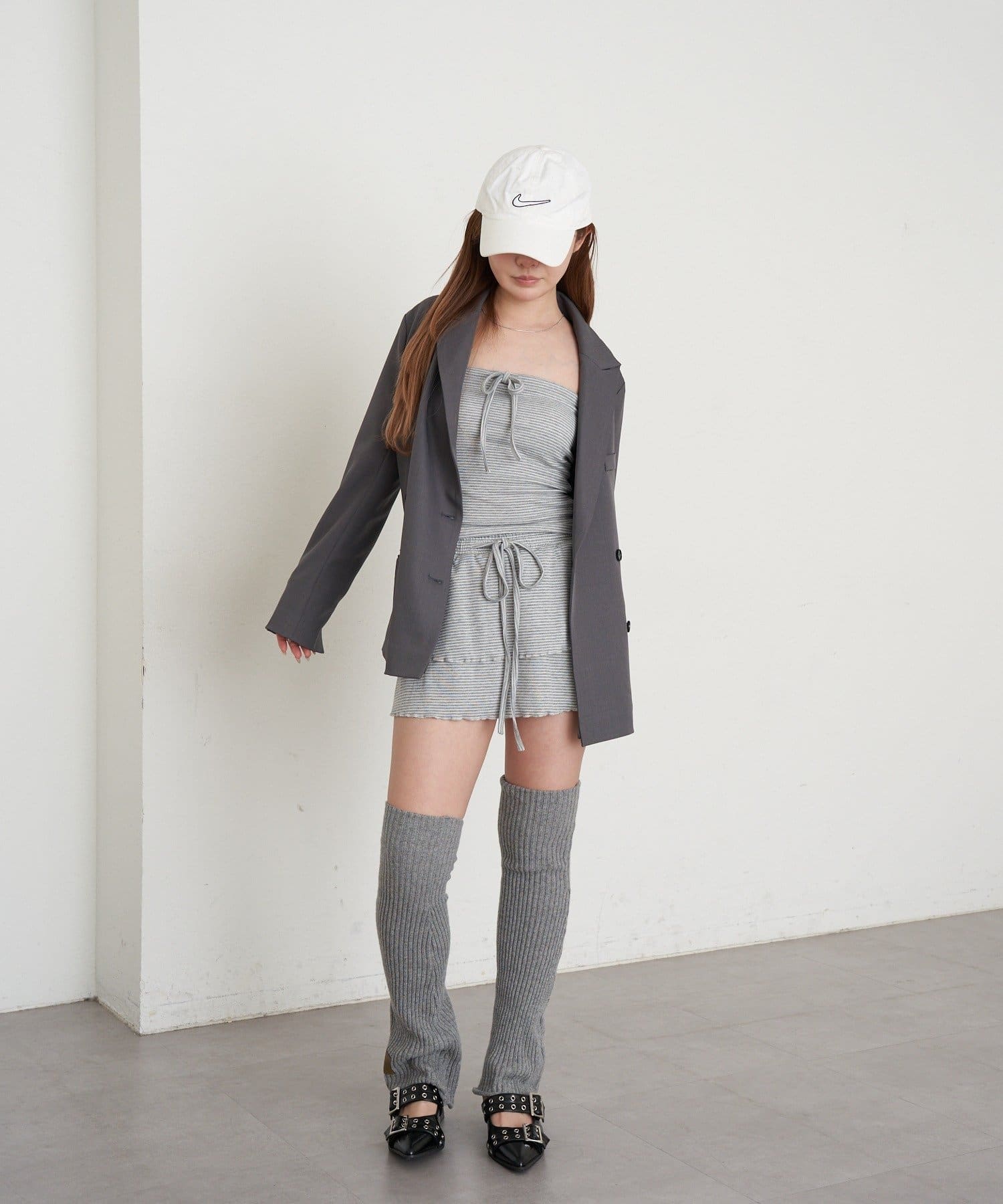・前を閉じてミニワンピ風スタイル