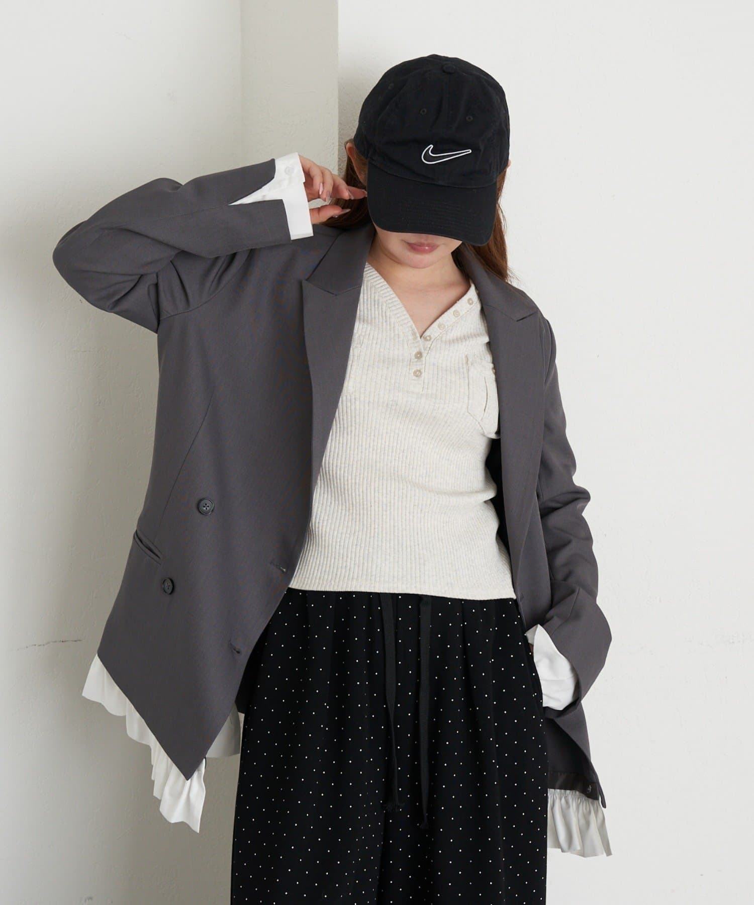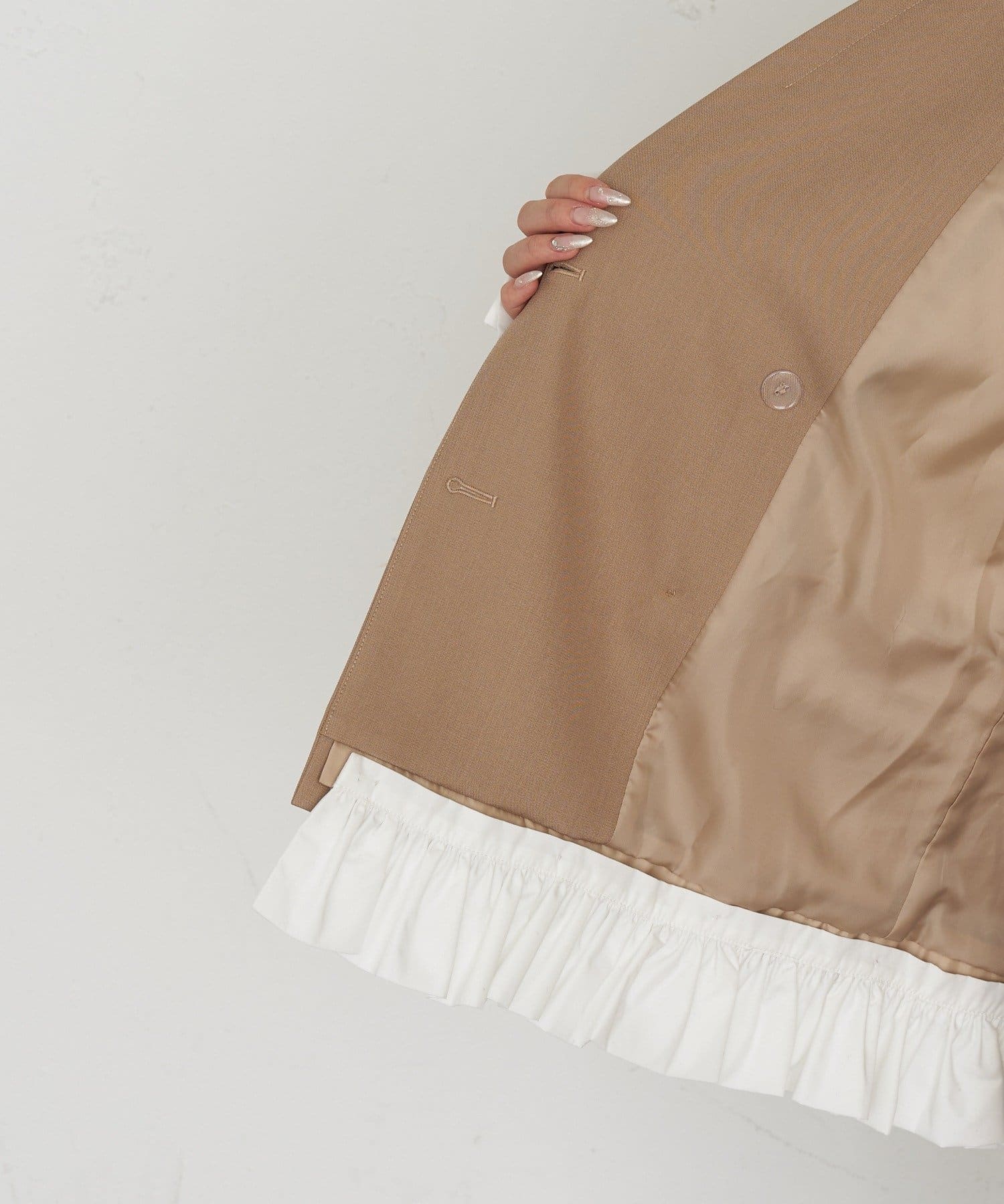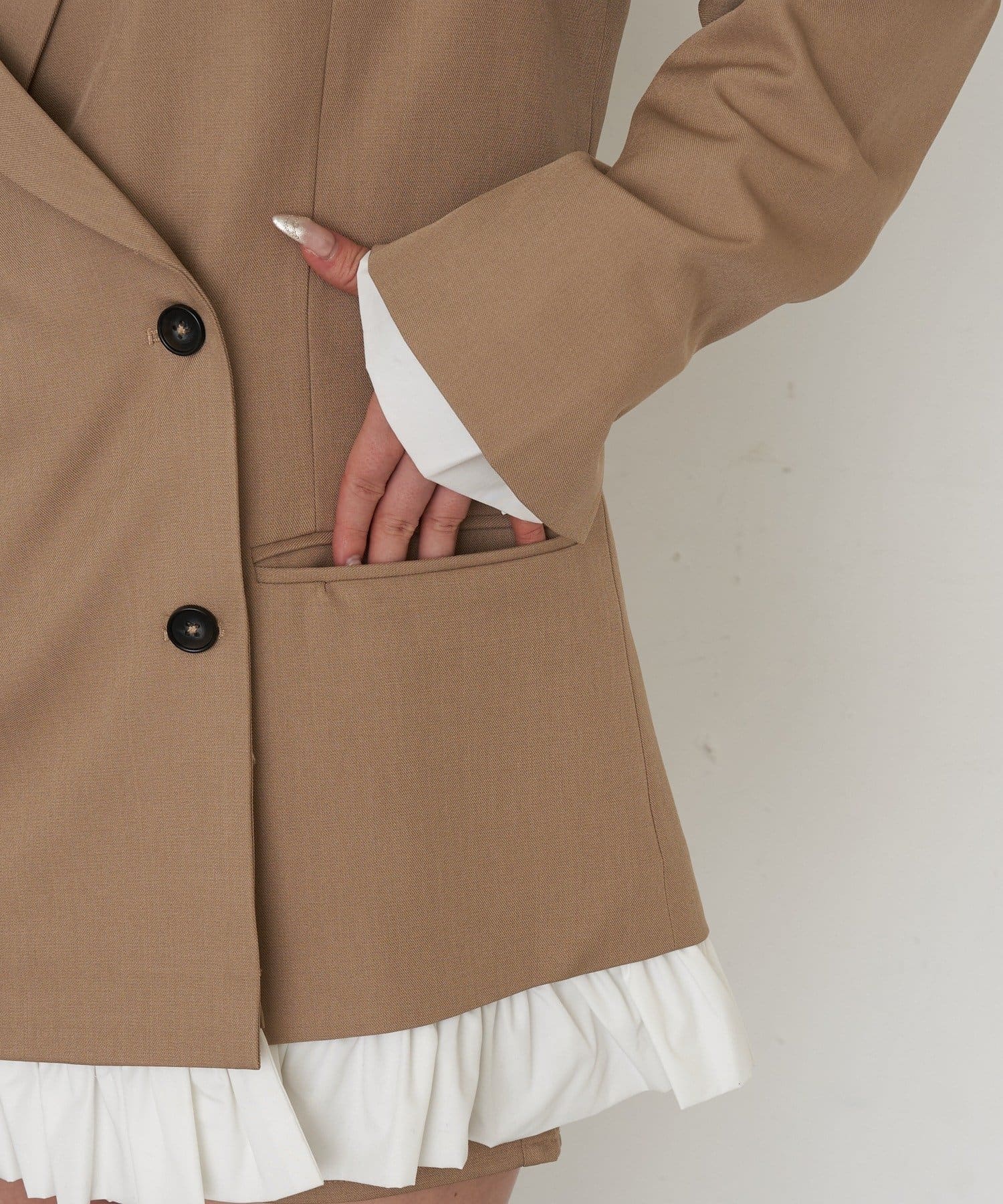 ・袖のシャツ、裾のフリルは取り外し可能なので、シンプルなジャケットとしても着用いただけます。
