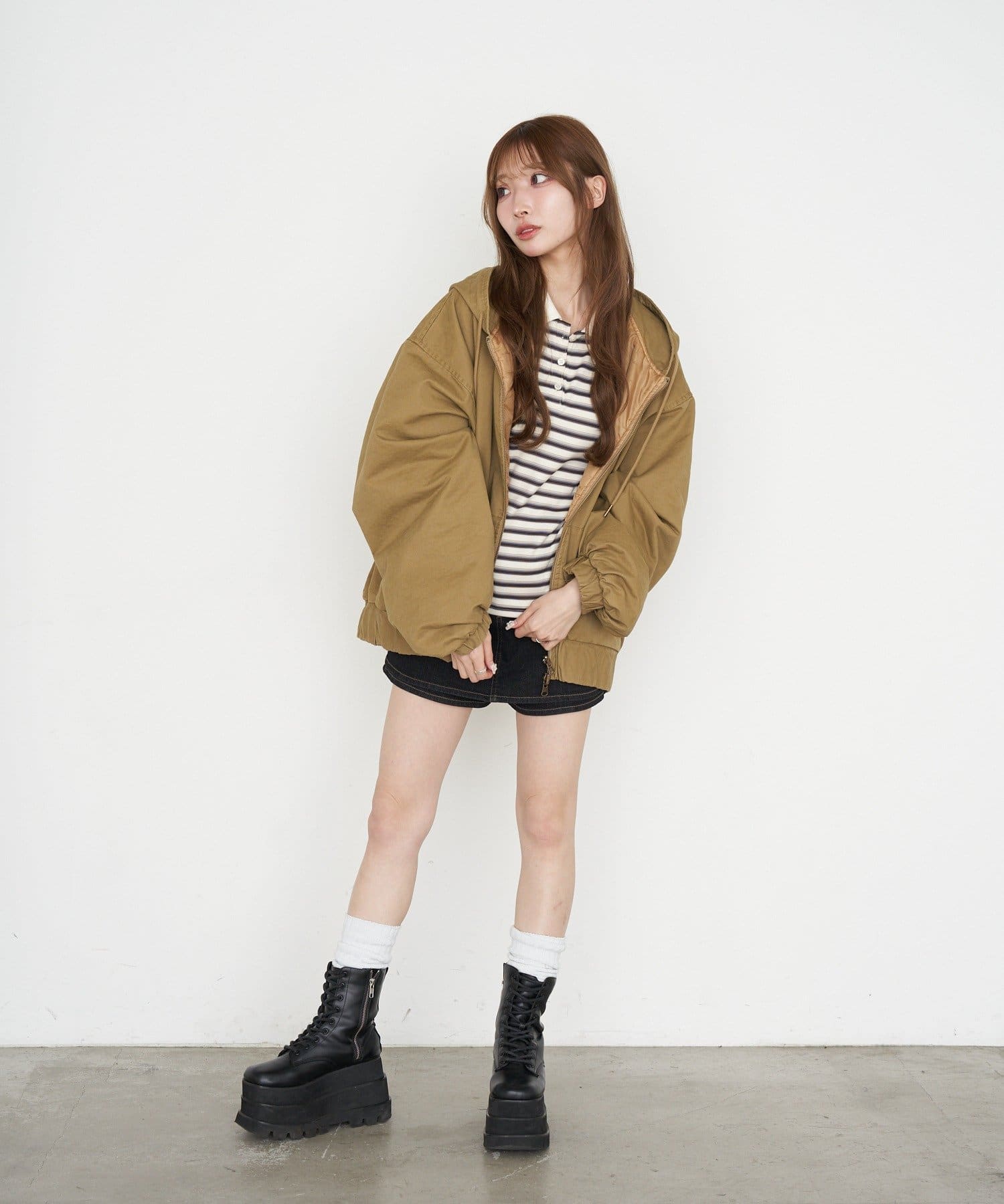 【RAY CASSIN】オーバーサイズフードダブルジップパーカー / ブルゾン