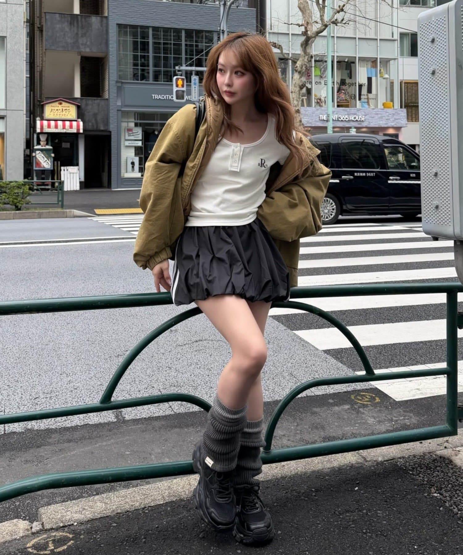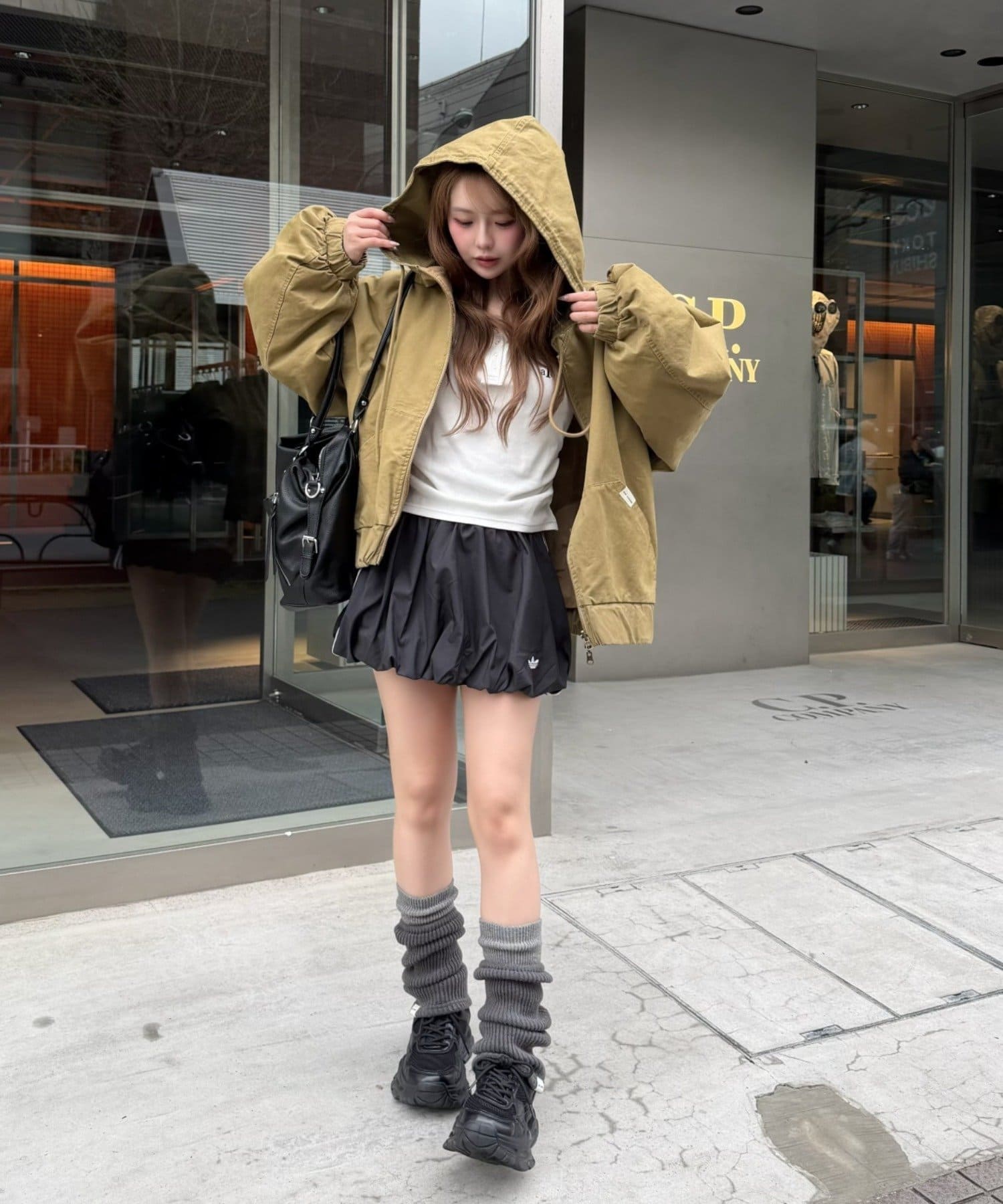 ・ミニボトムと合わせてフェミニンなスタイル◎