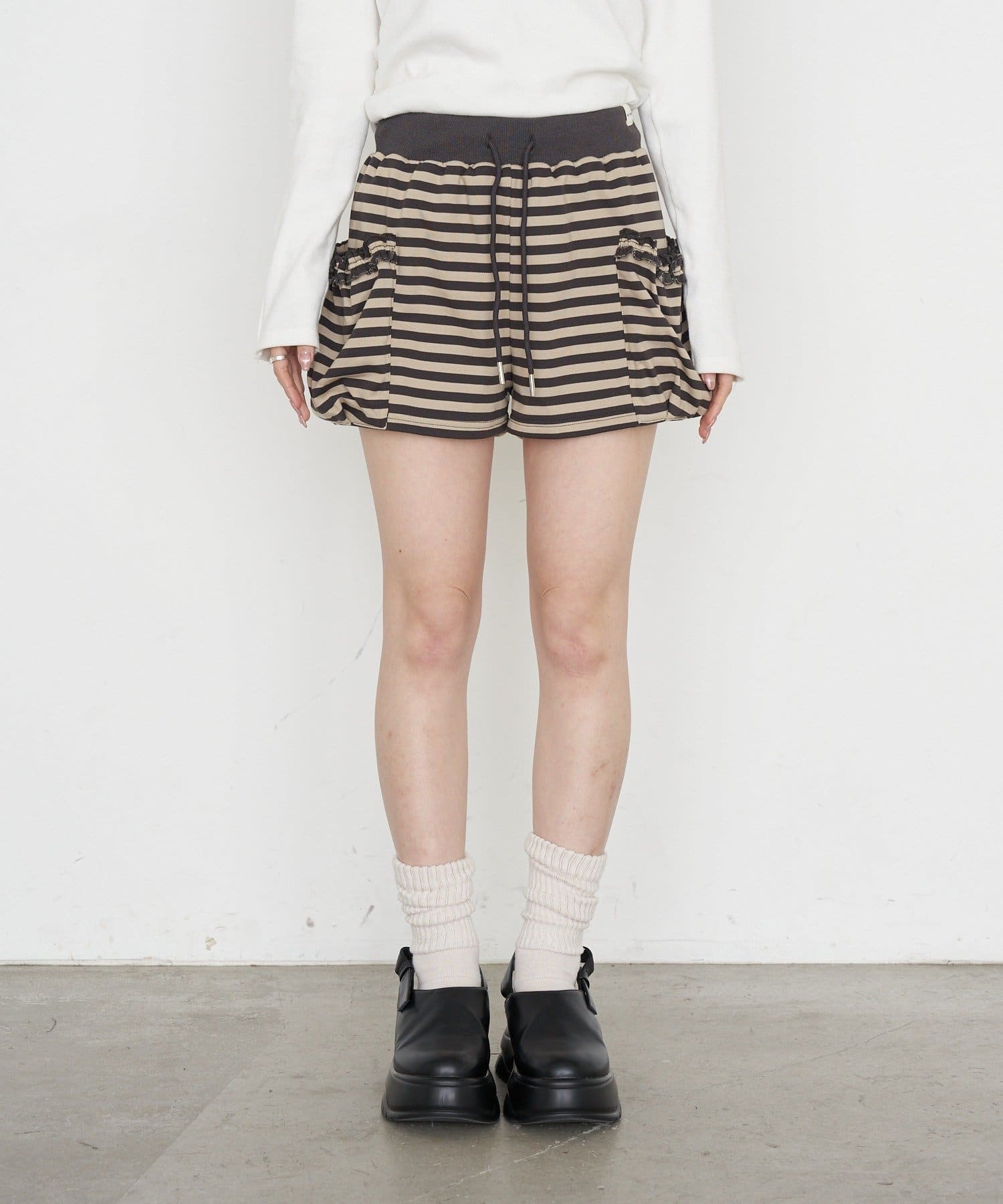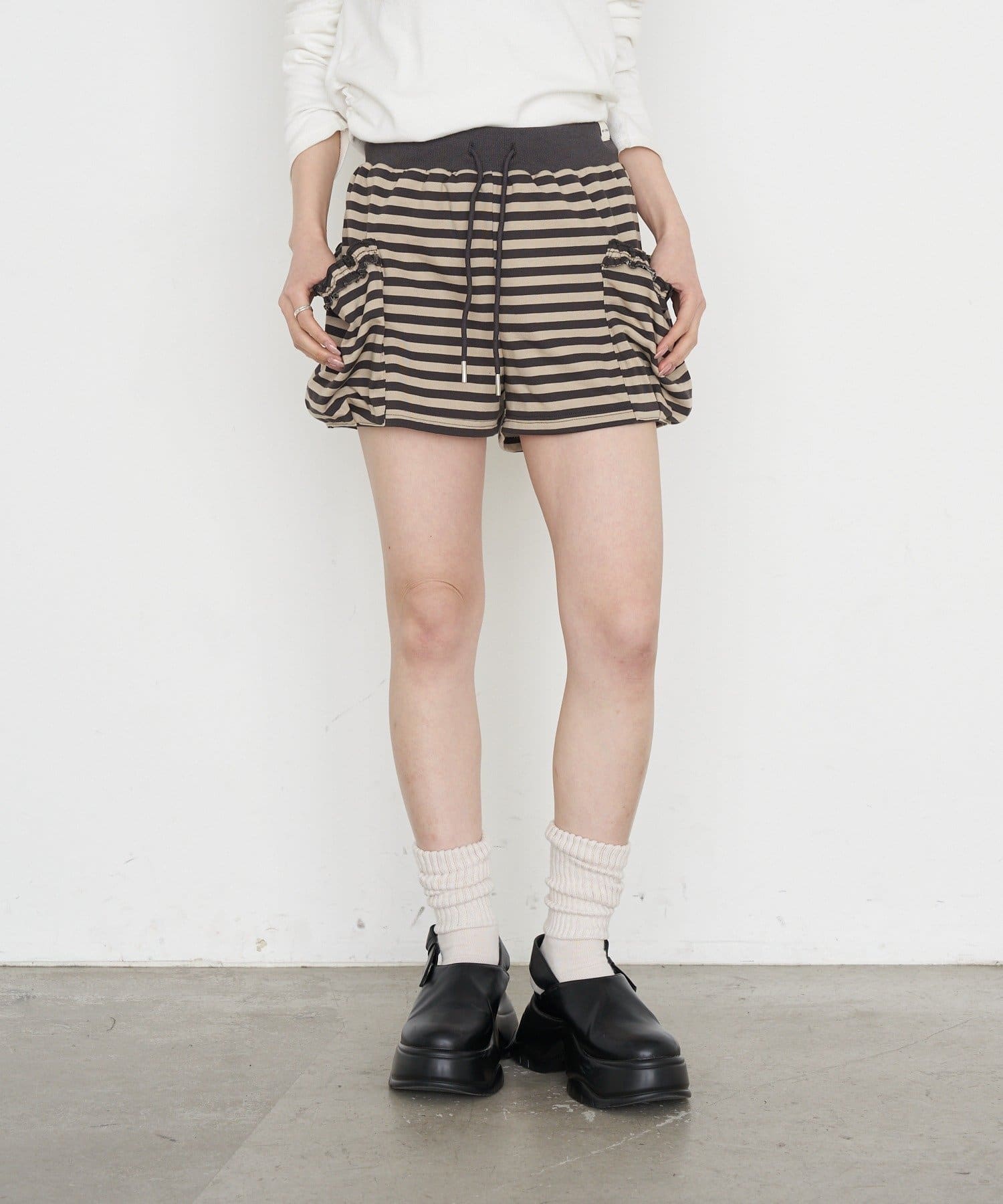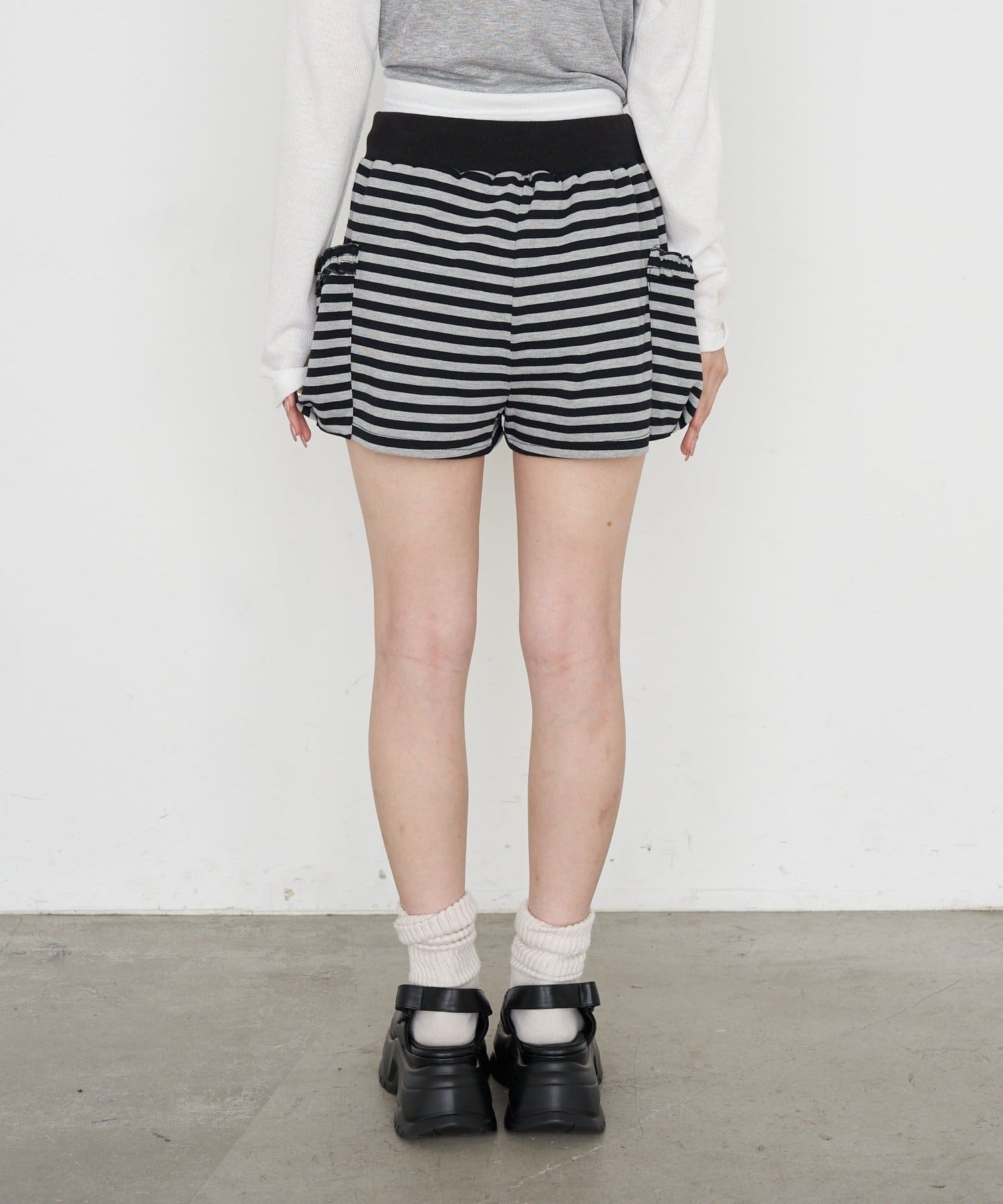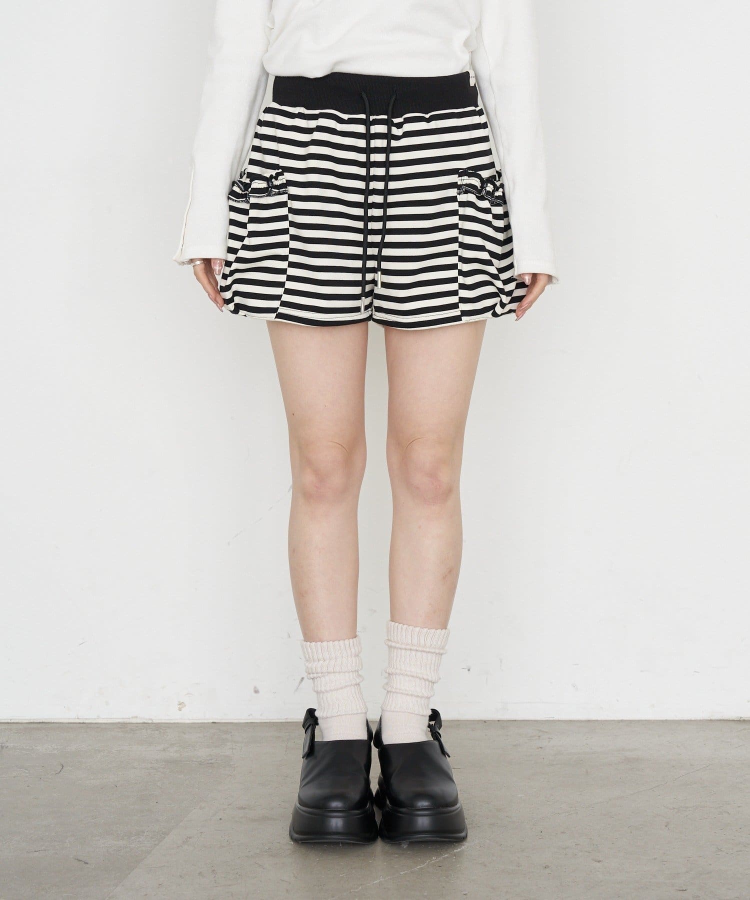 【セットアップで着られる】ポケットフリルボーダーマイクロショーツ