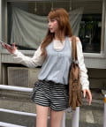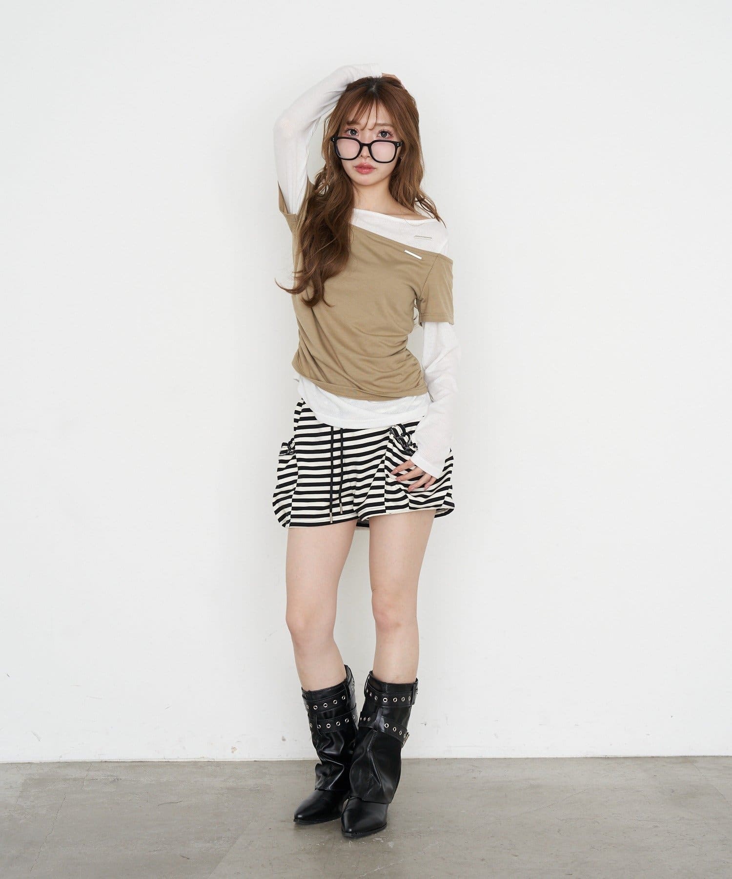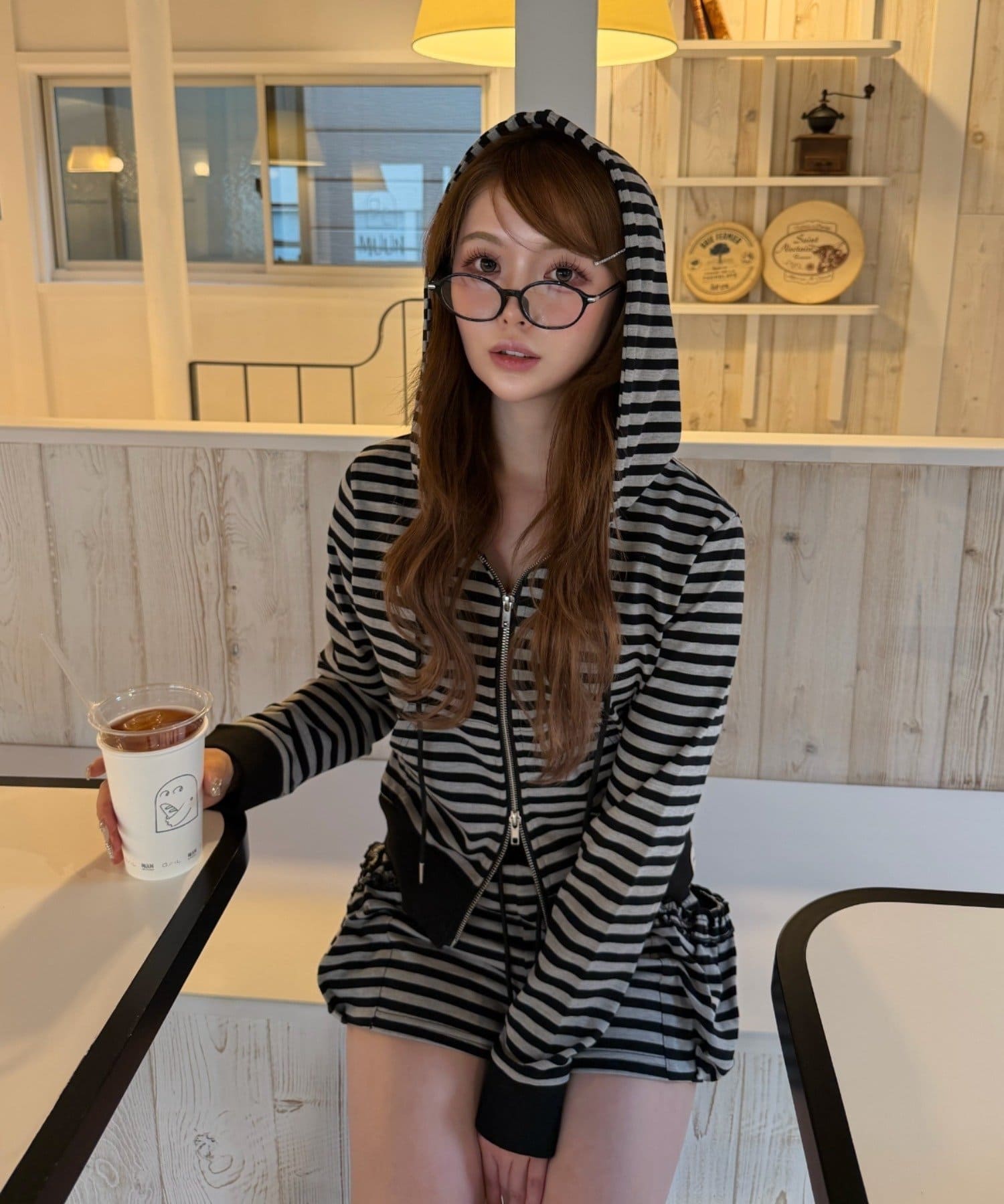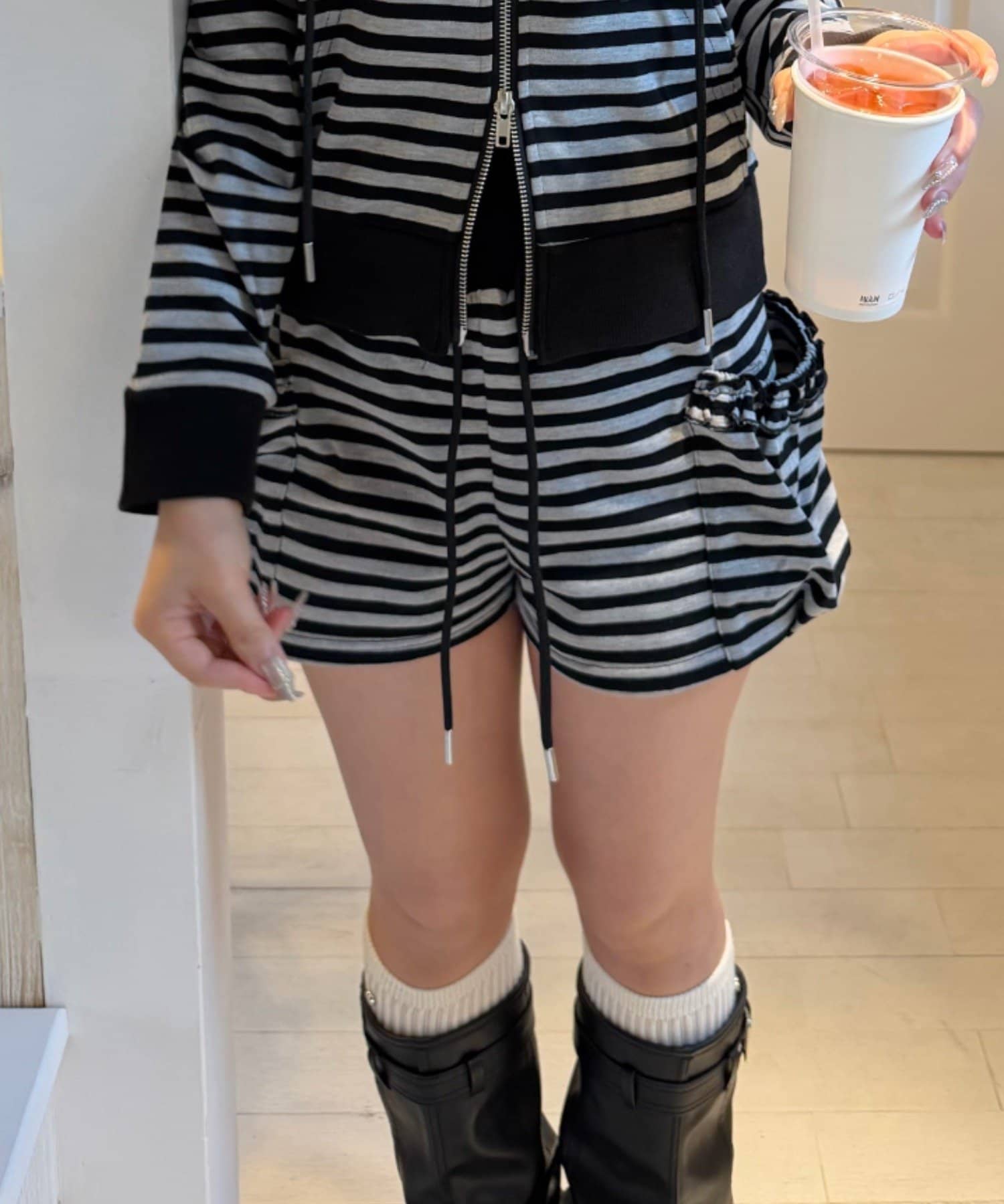 【セットアップで着られる】ポケットフリルボーダーマイクロショーツ