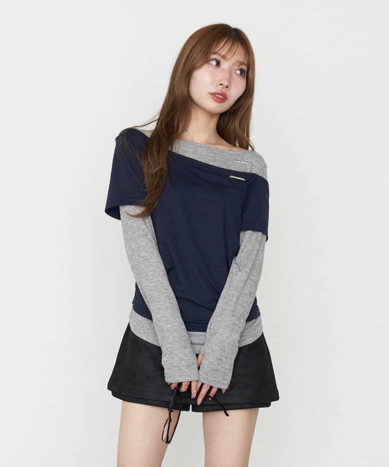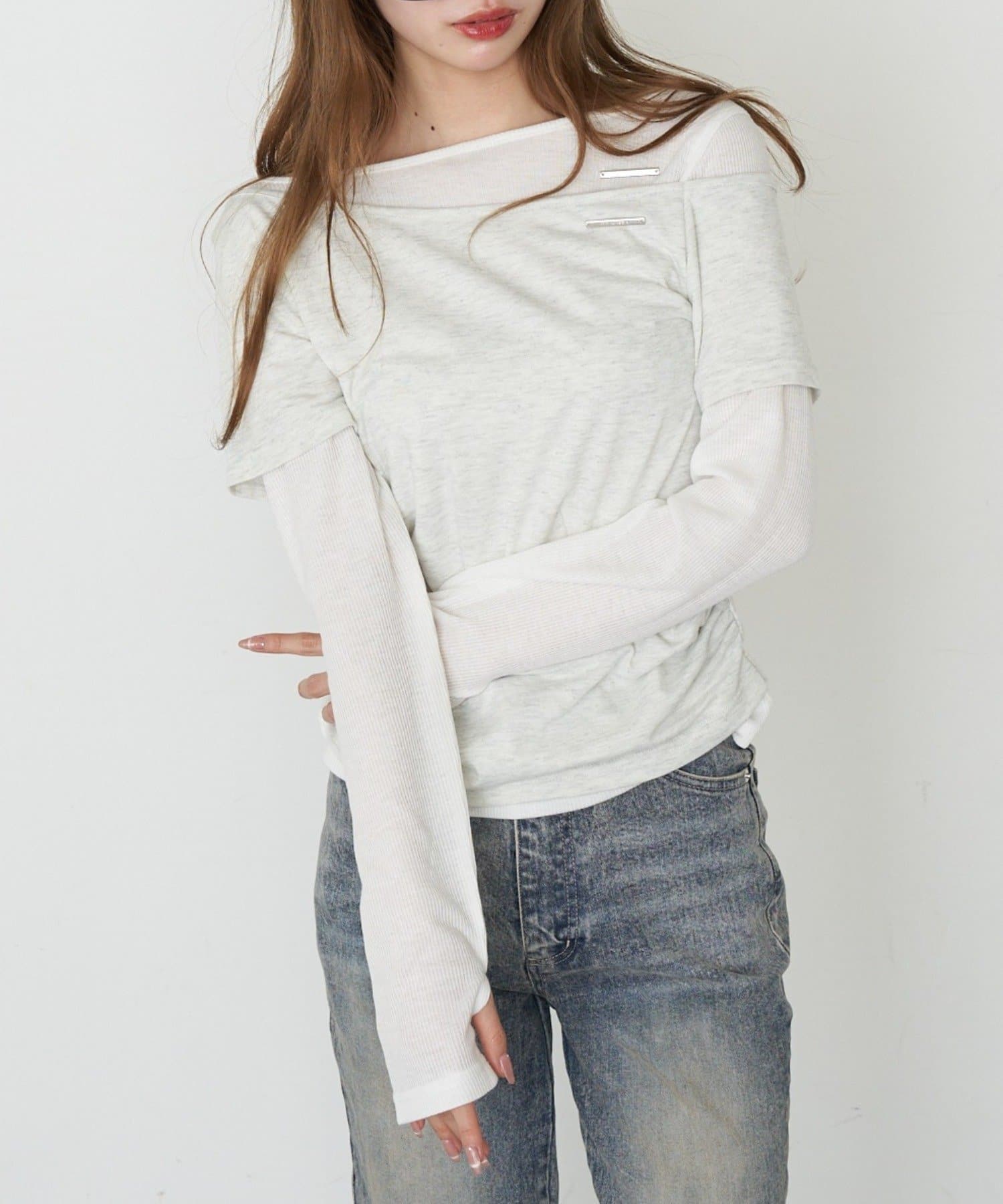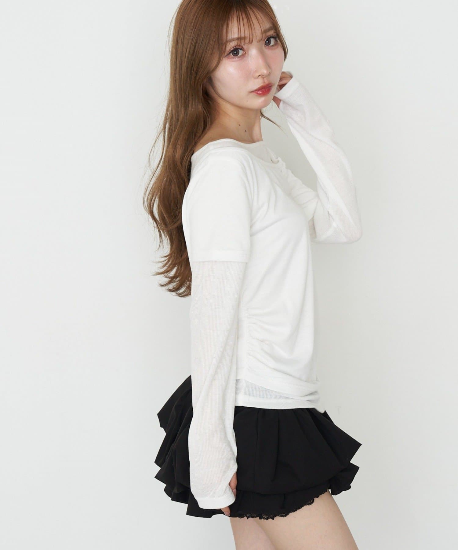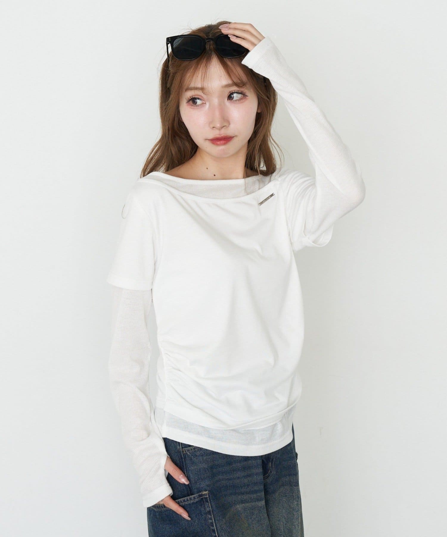 ・レイヤード風のデザインで、着膨れしにくいのが嬉しいポイント◎