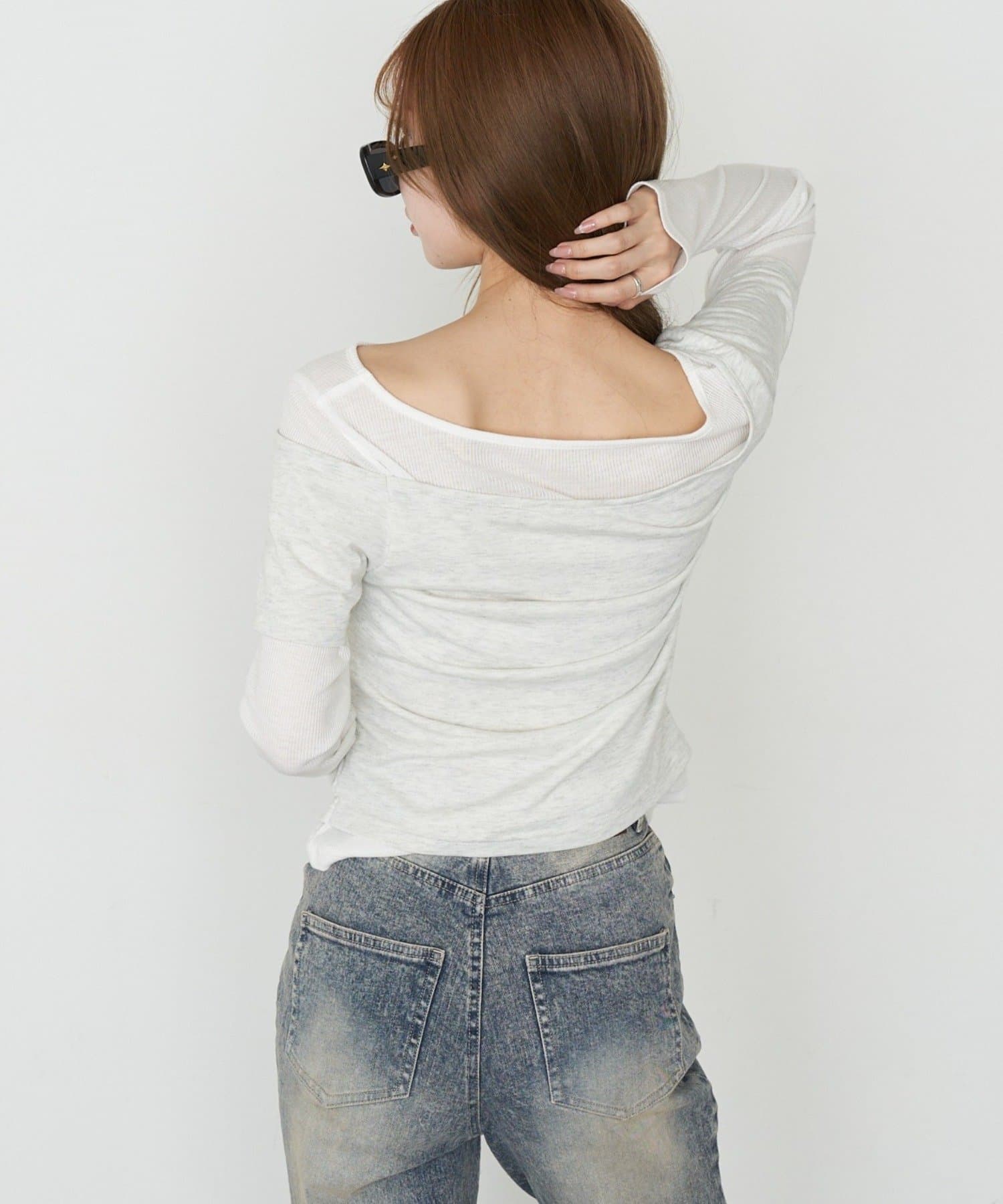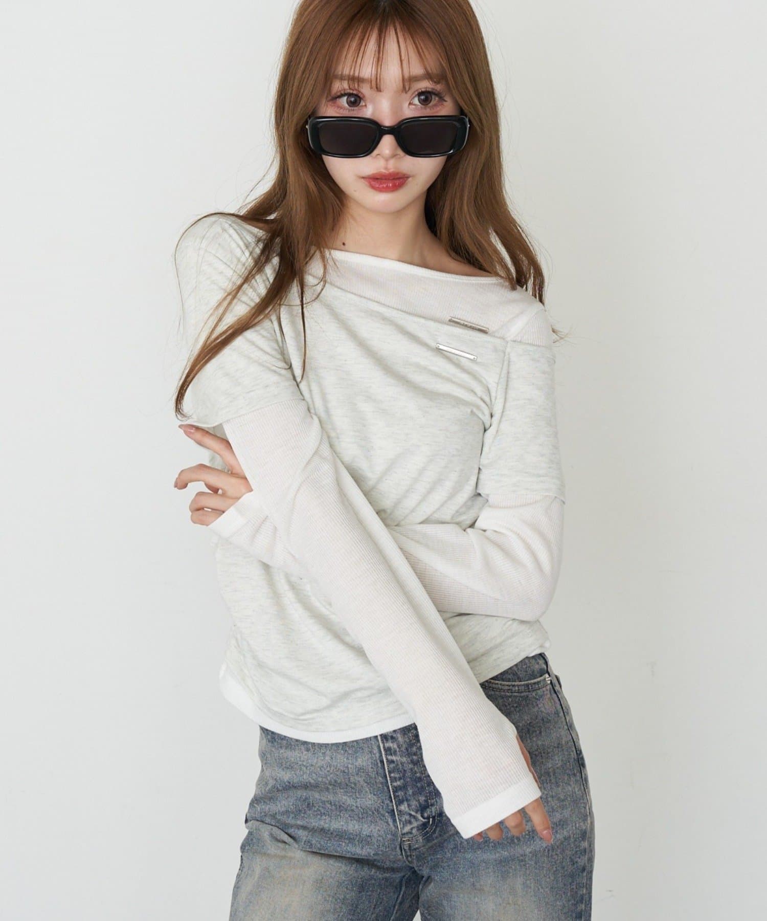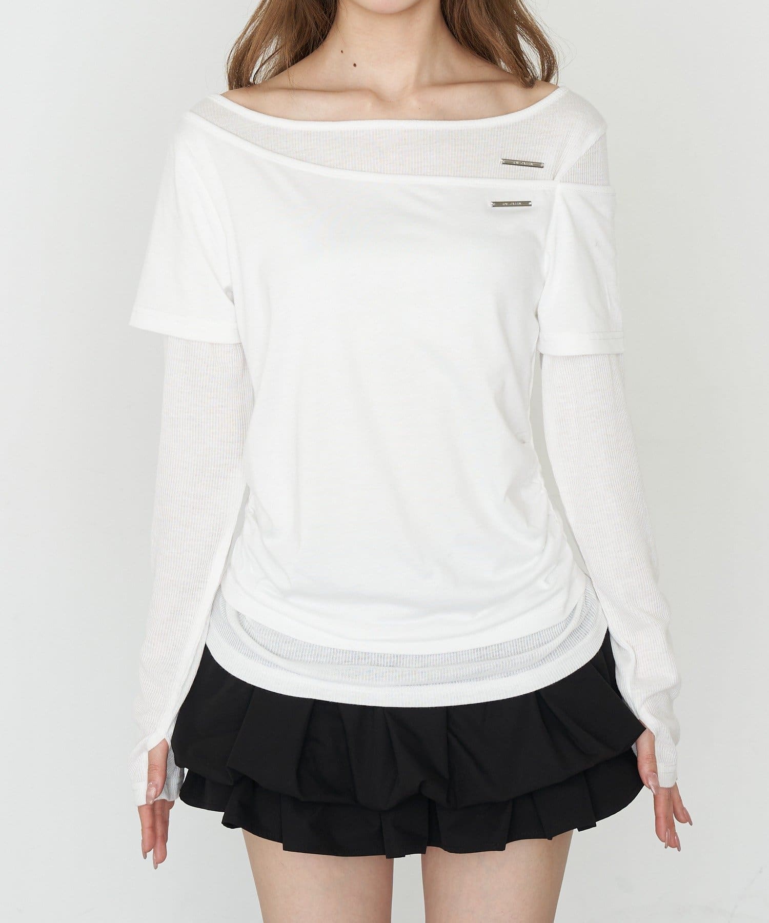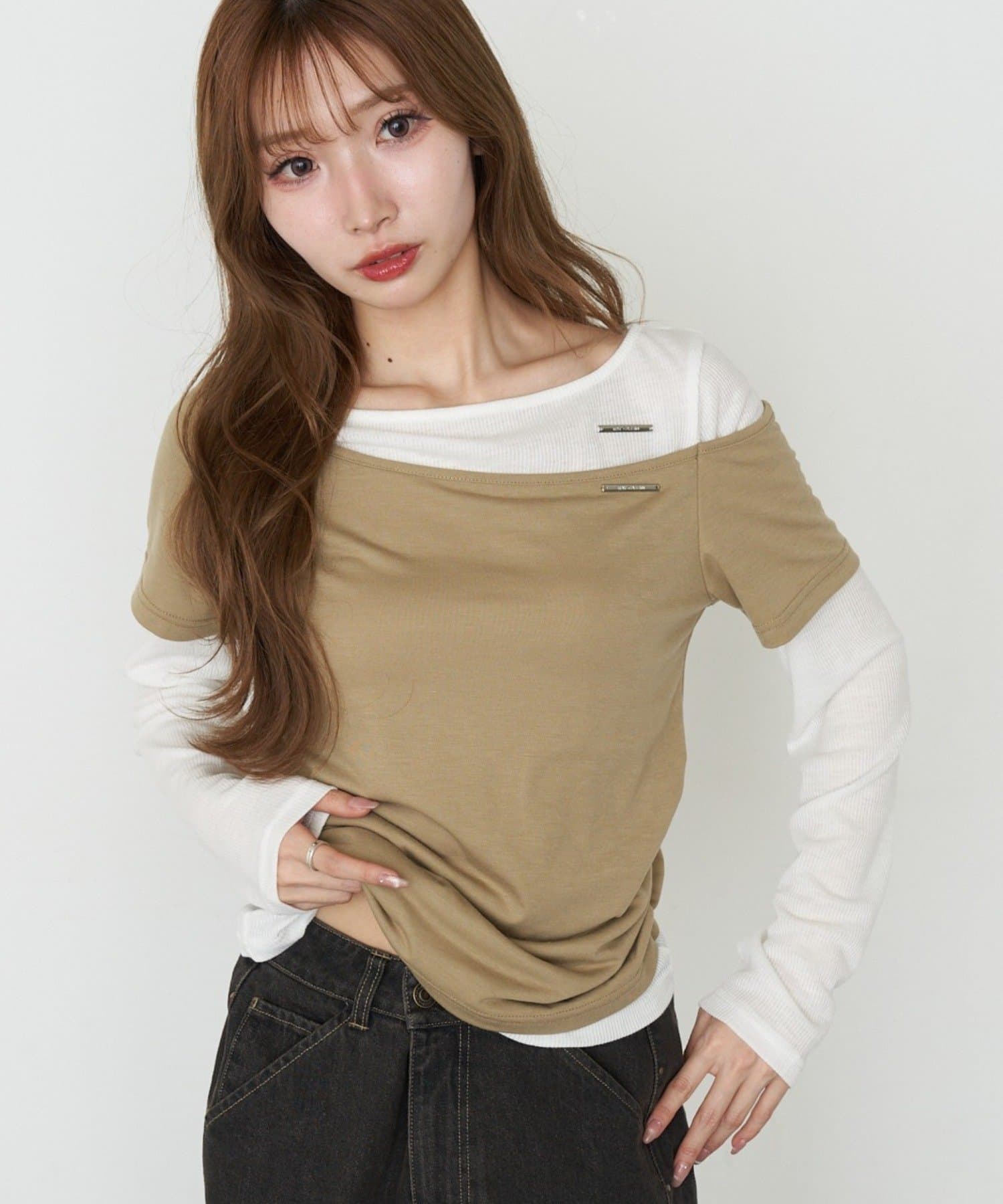 ・Tシャツですが、オフショルデザインでカジュアルすぎないアイテムです。