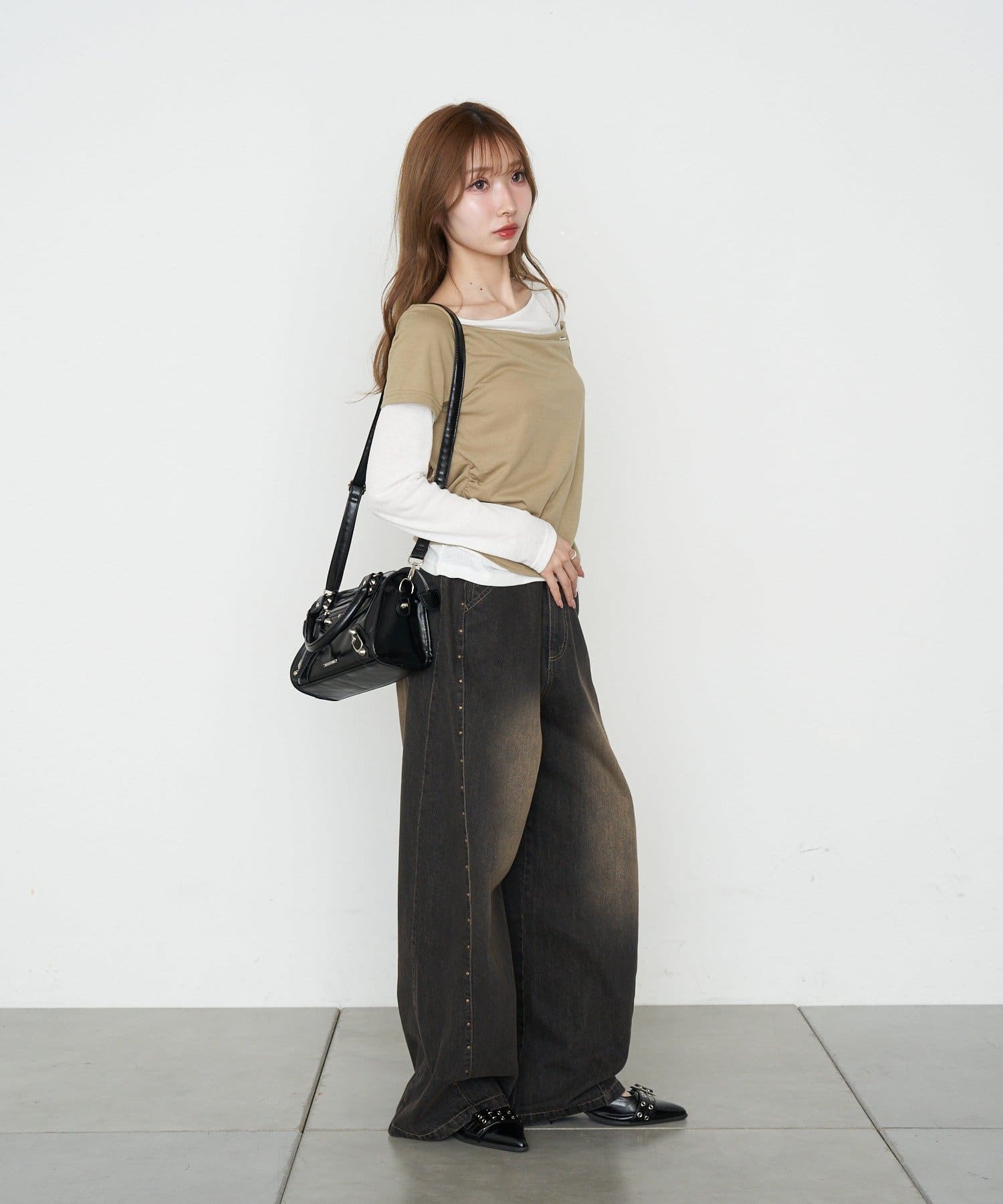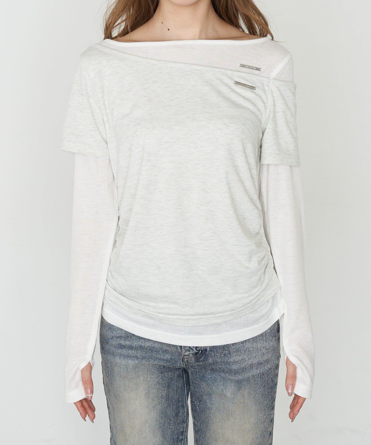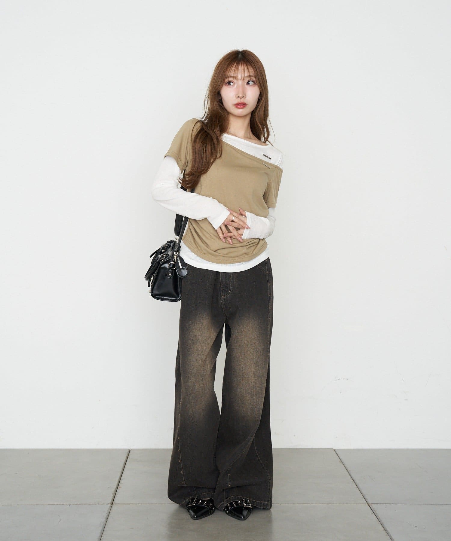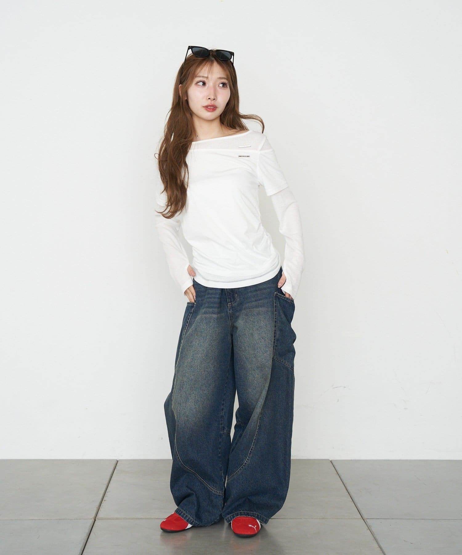 ・Tシャツですが、オフショルデザインでカジュアルすぎないアイテムです。