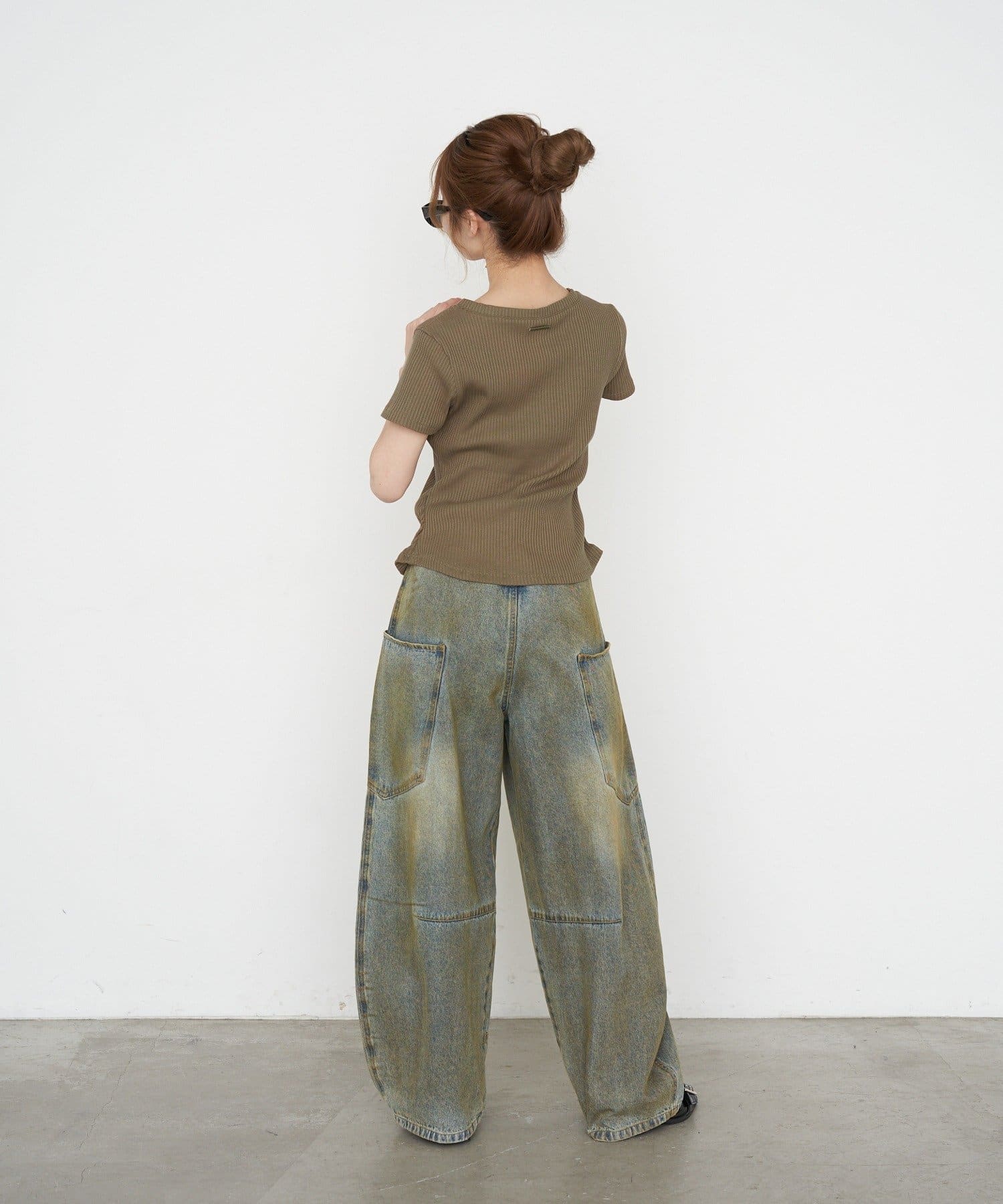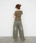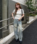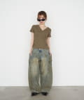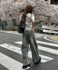 ・スウェットやバレルレッグデニム、ルーズデニムと合わせたカジュアルスタイル。