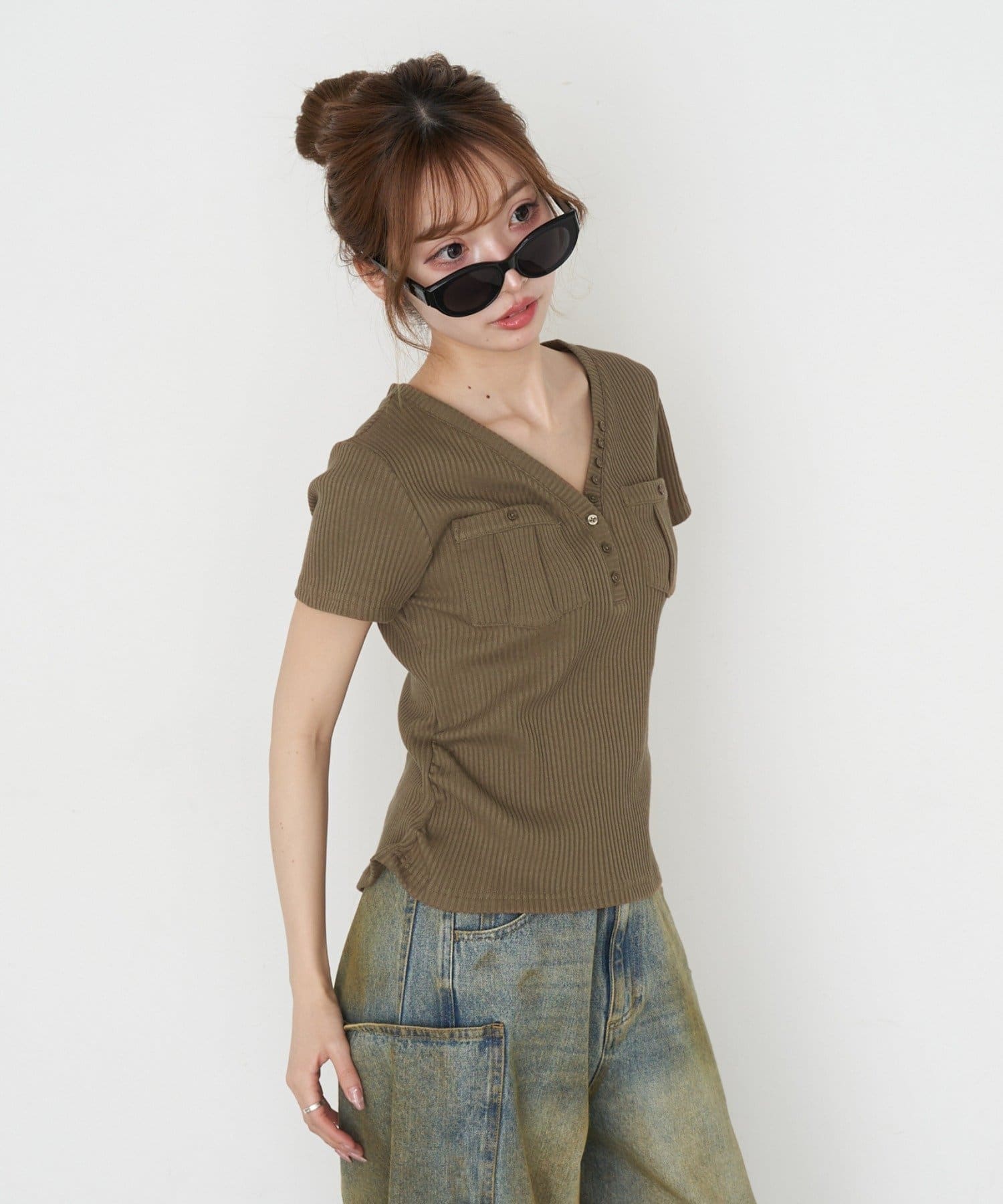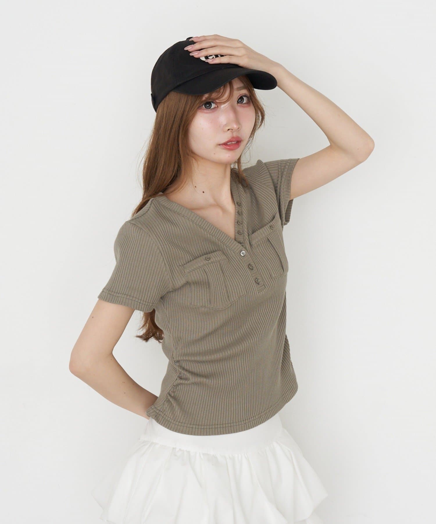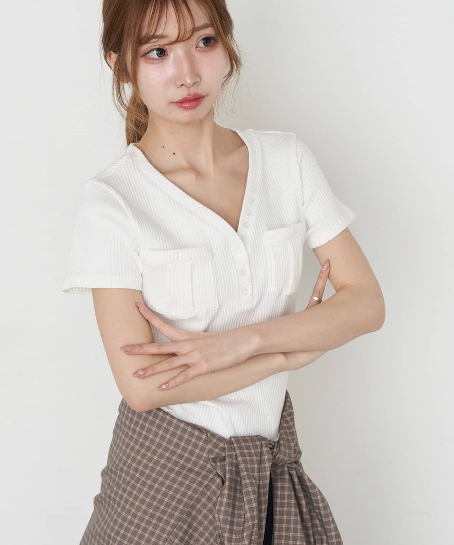 春夏トップス / Vネック / 無地トップス