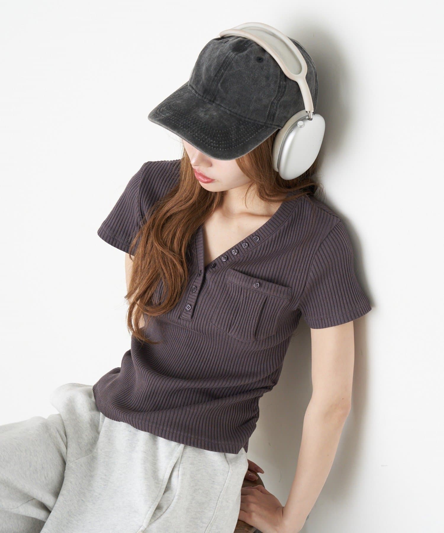 ・細めのリブが縦のラインを見せてくれるのも嬉しいポイント◎