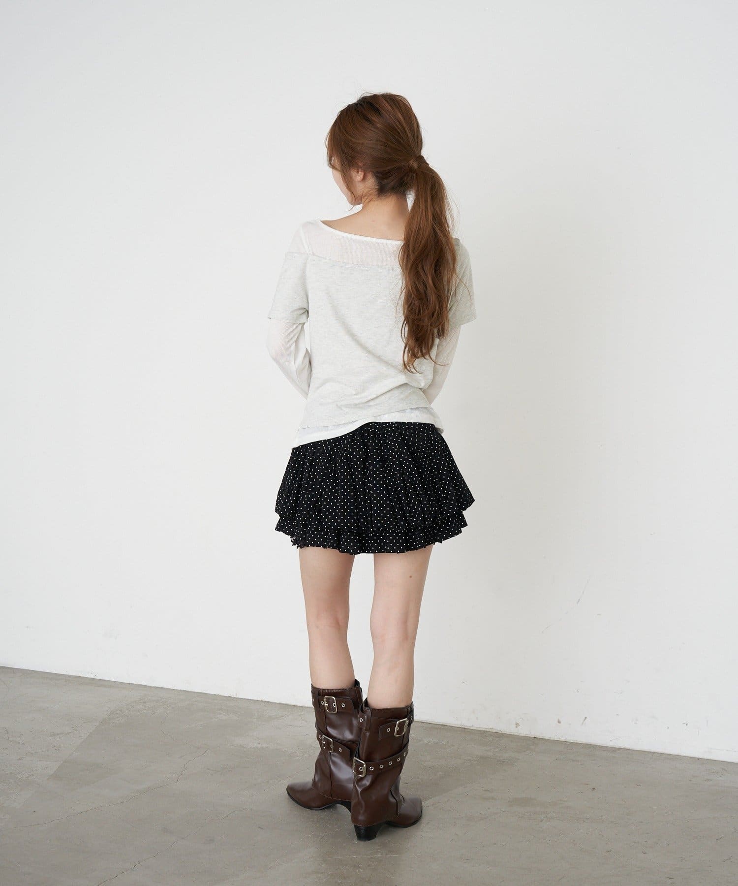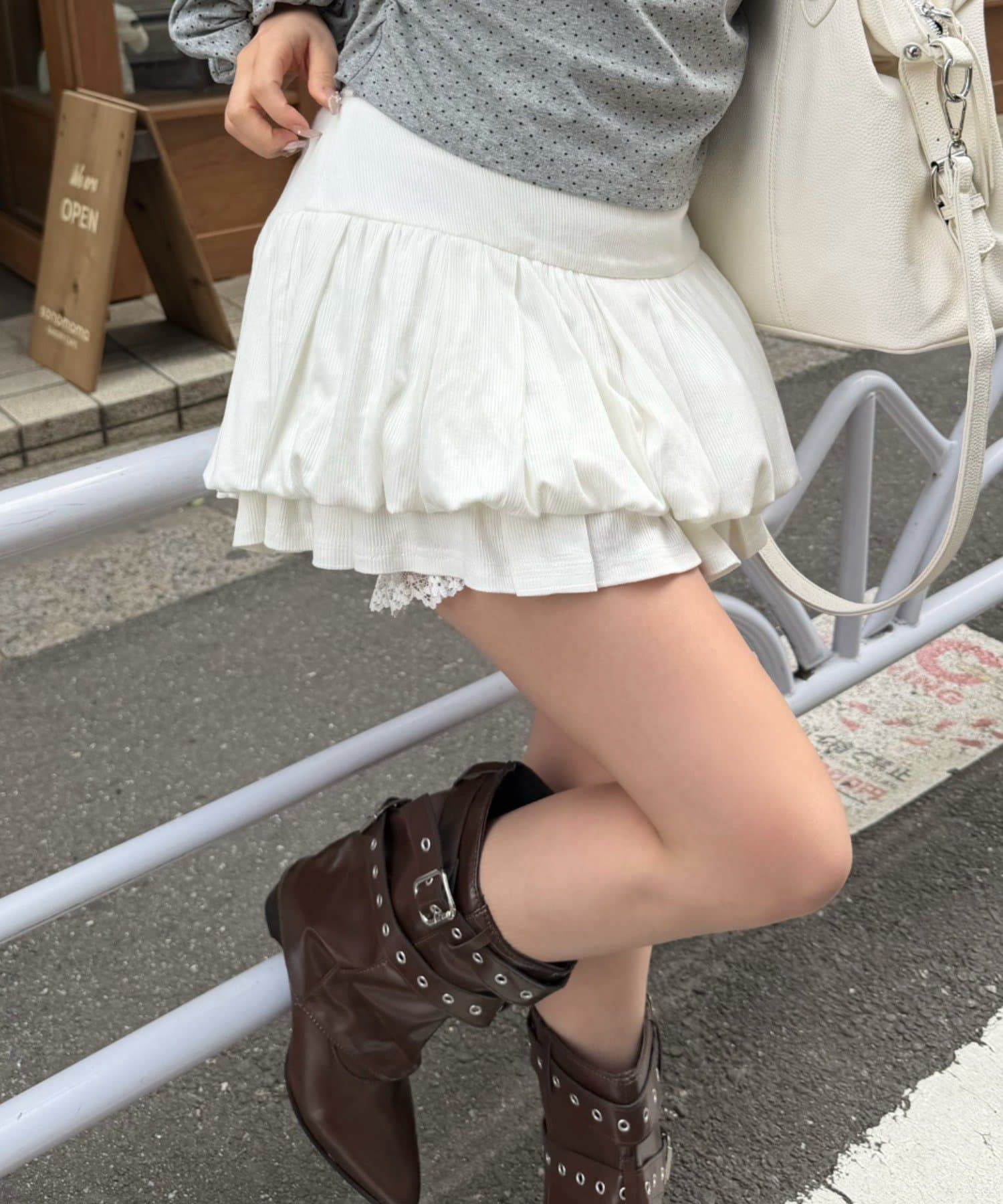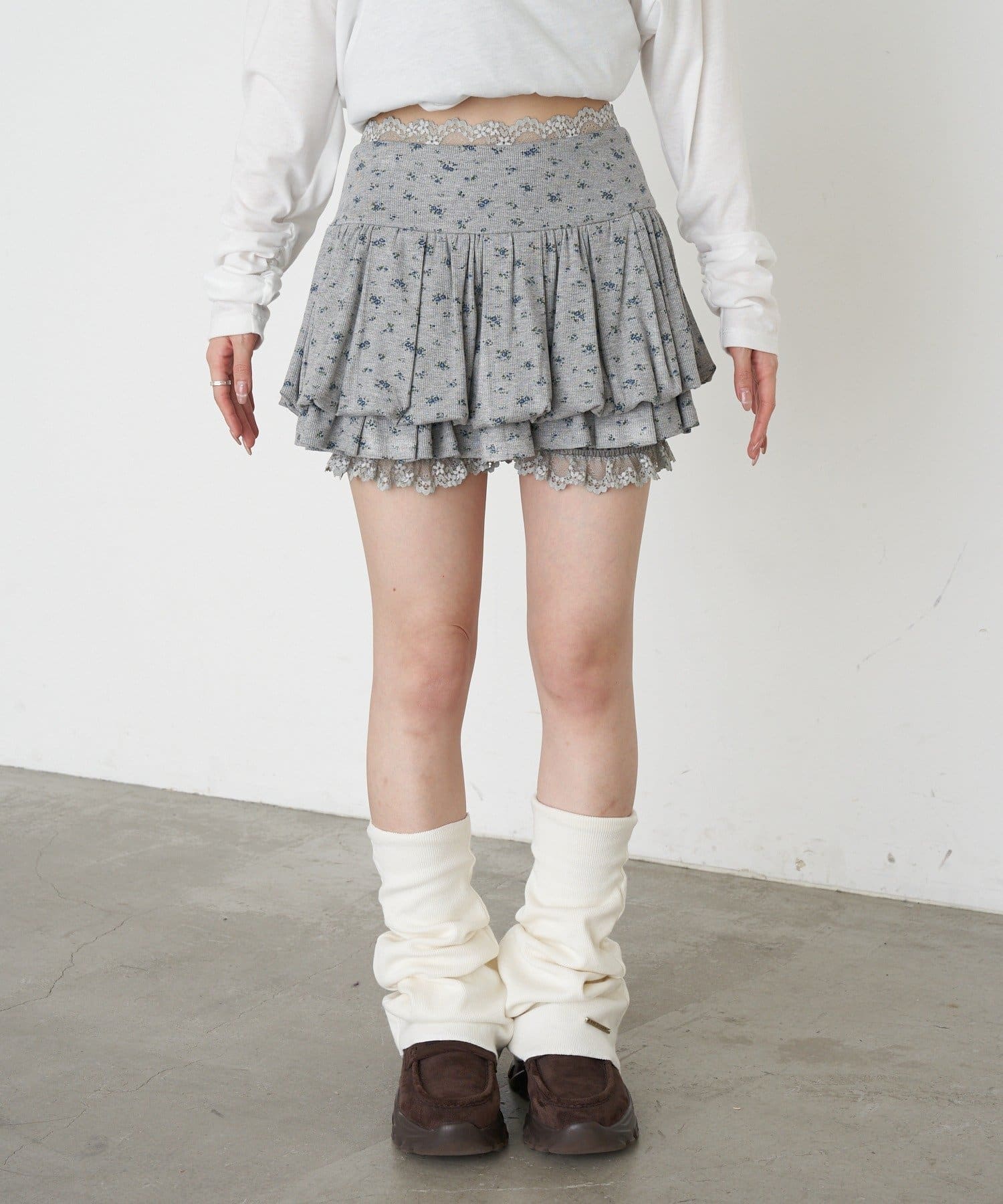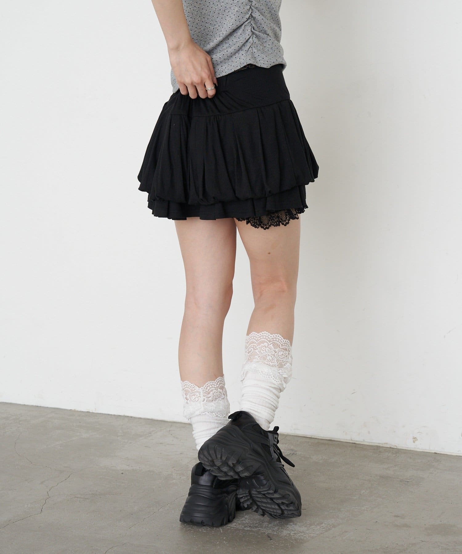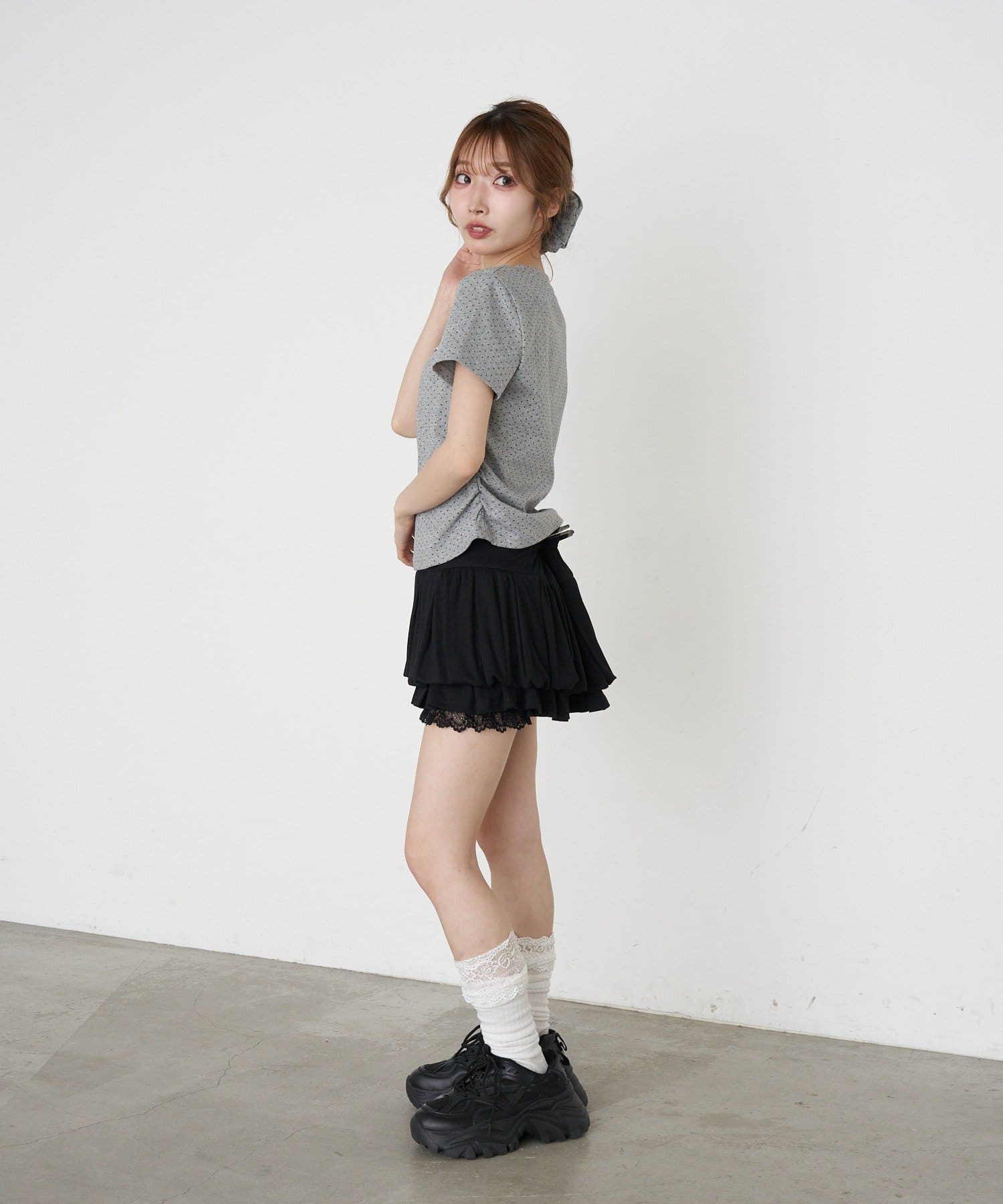 【無地 / ドット / 花柄】カットティアードバルーンミニスカート