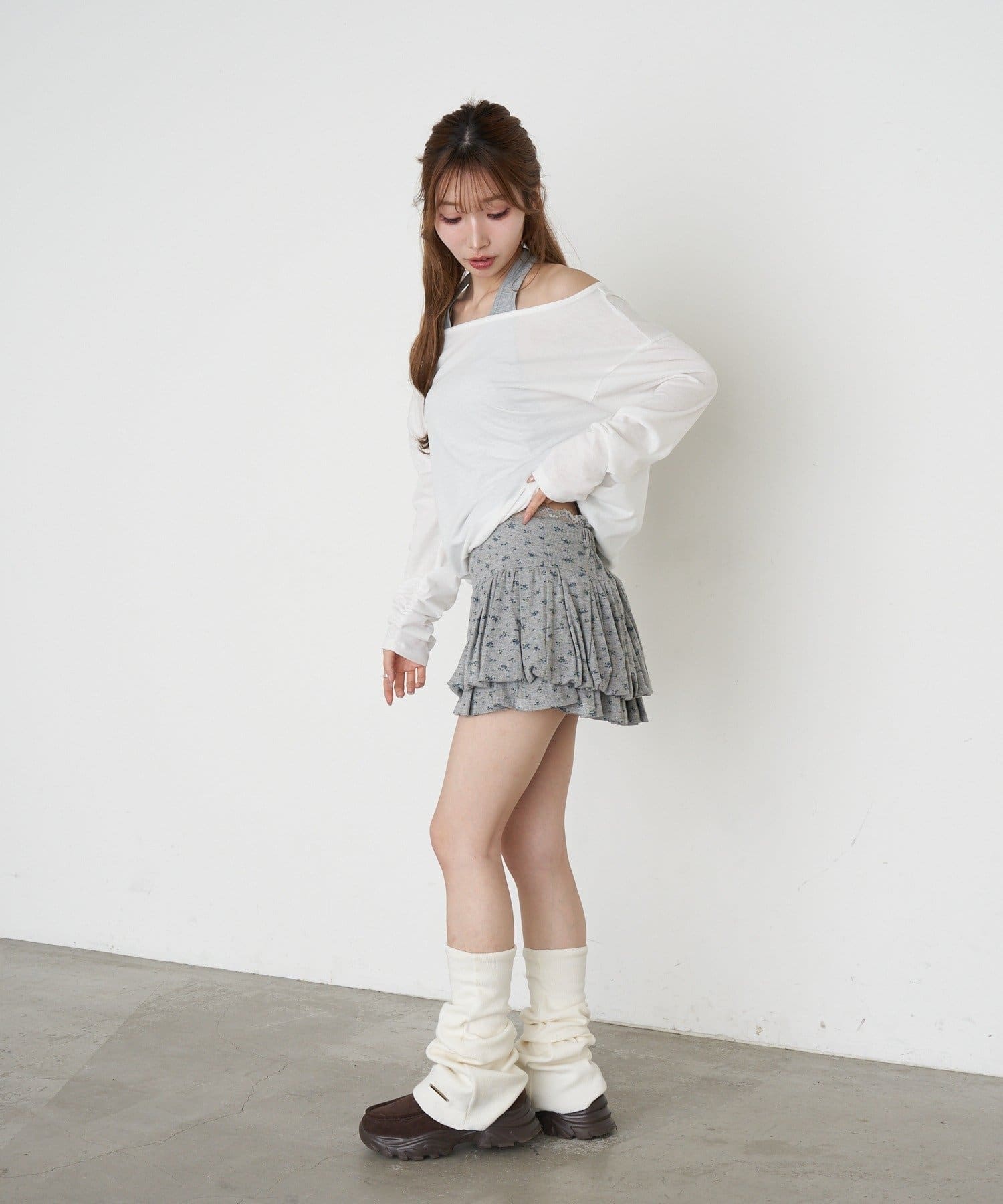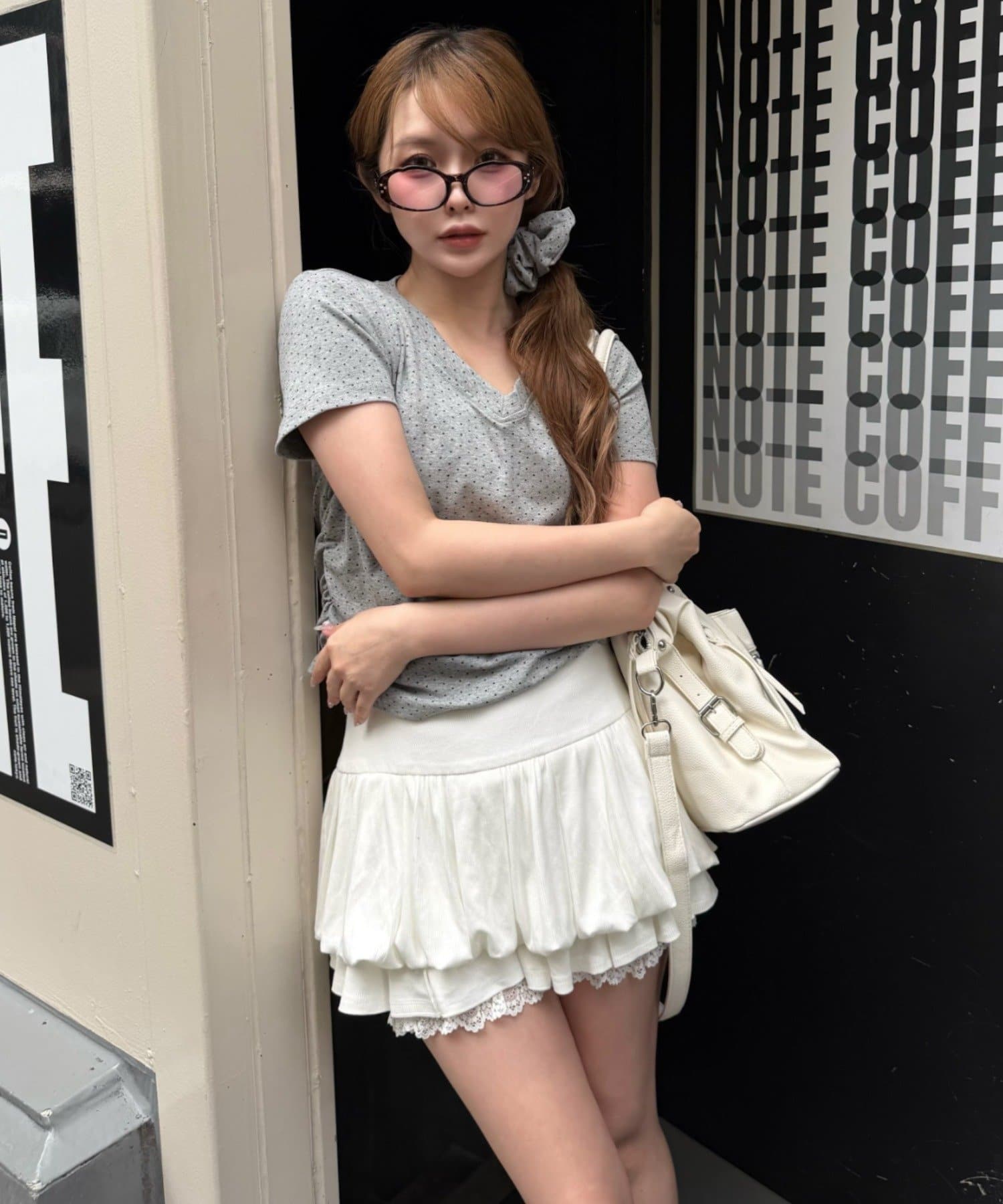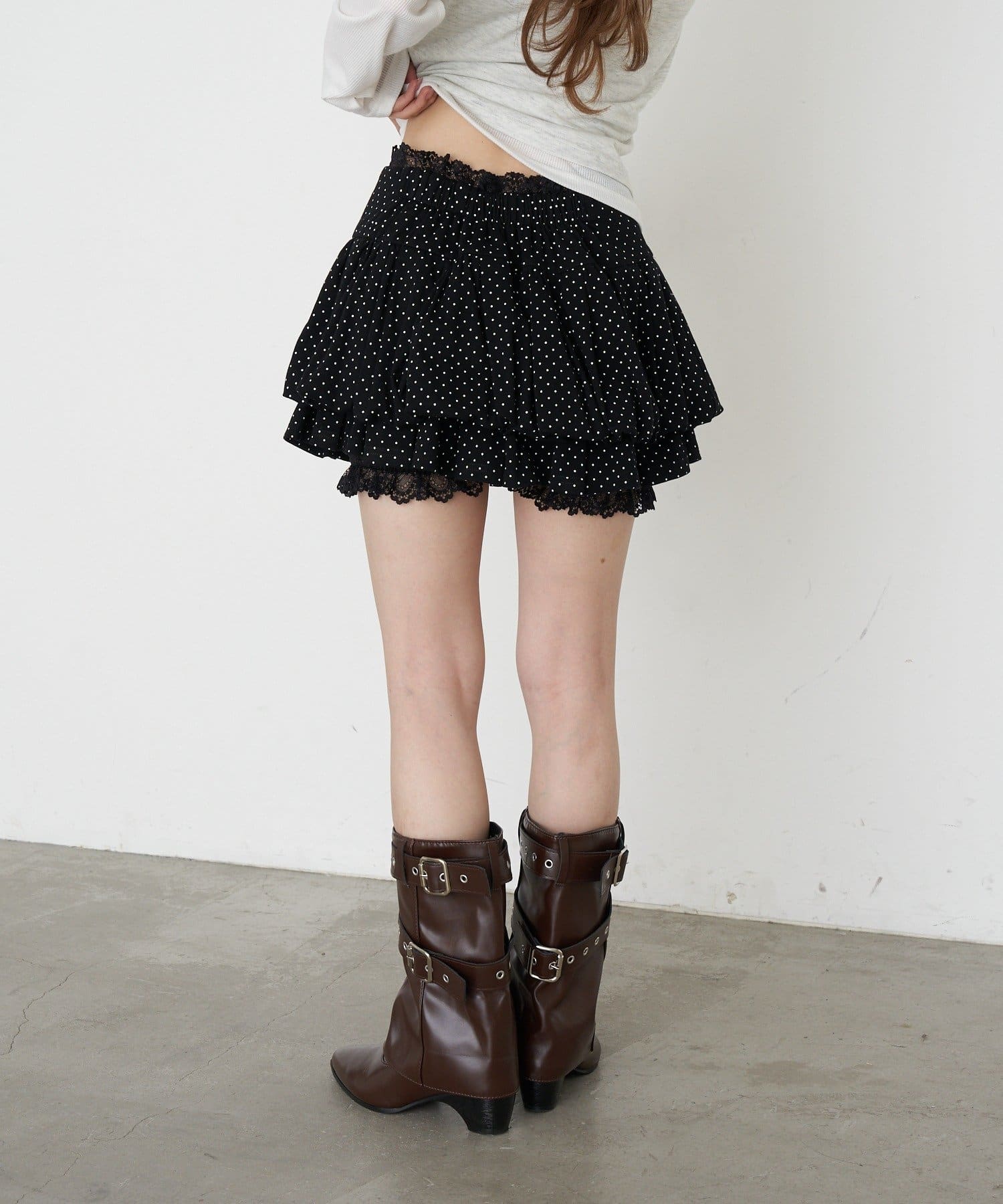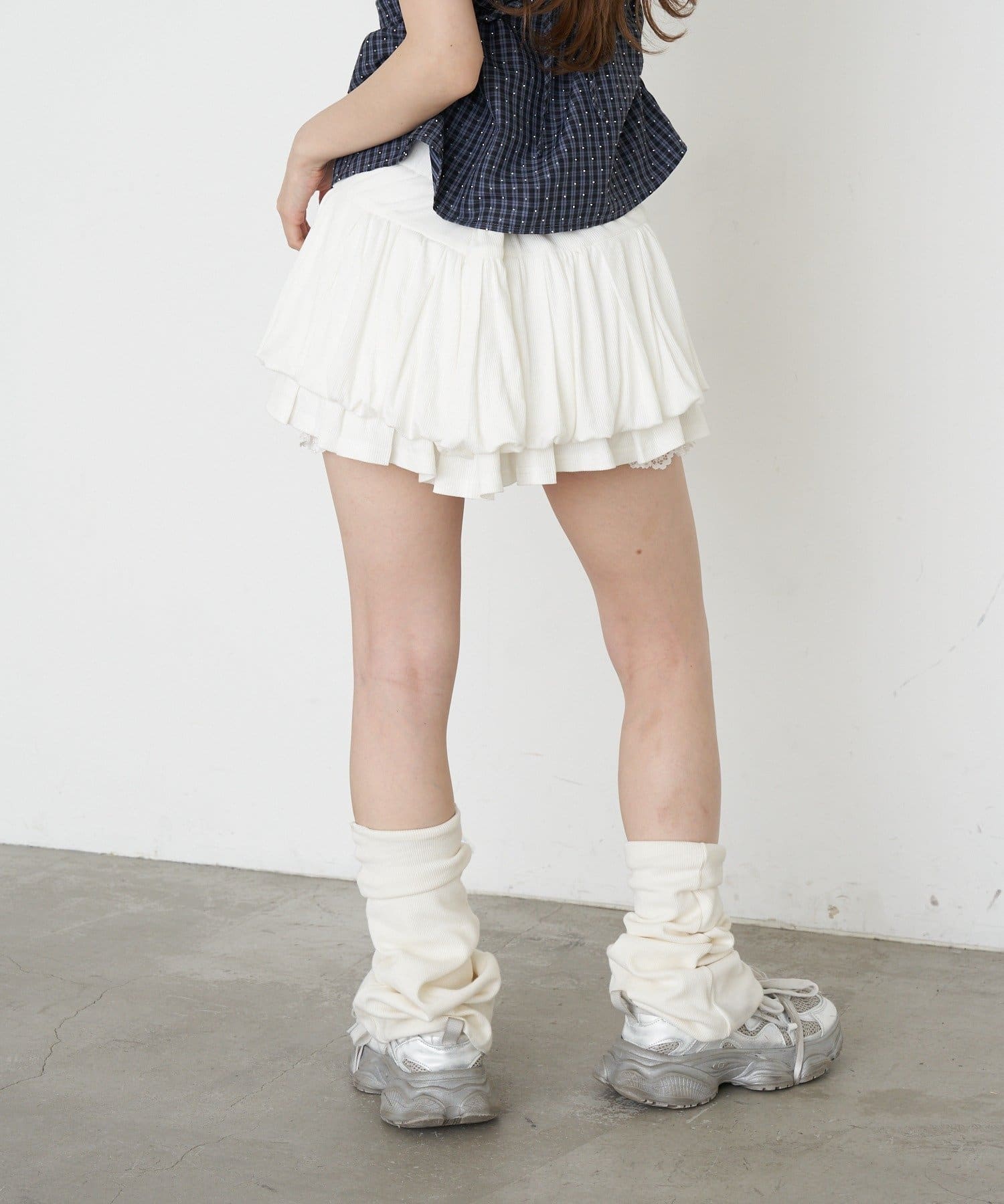 【無地 / ドット / 花柄】カットティアードバルーンミニスカート