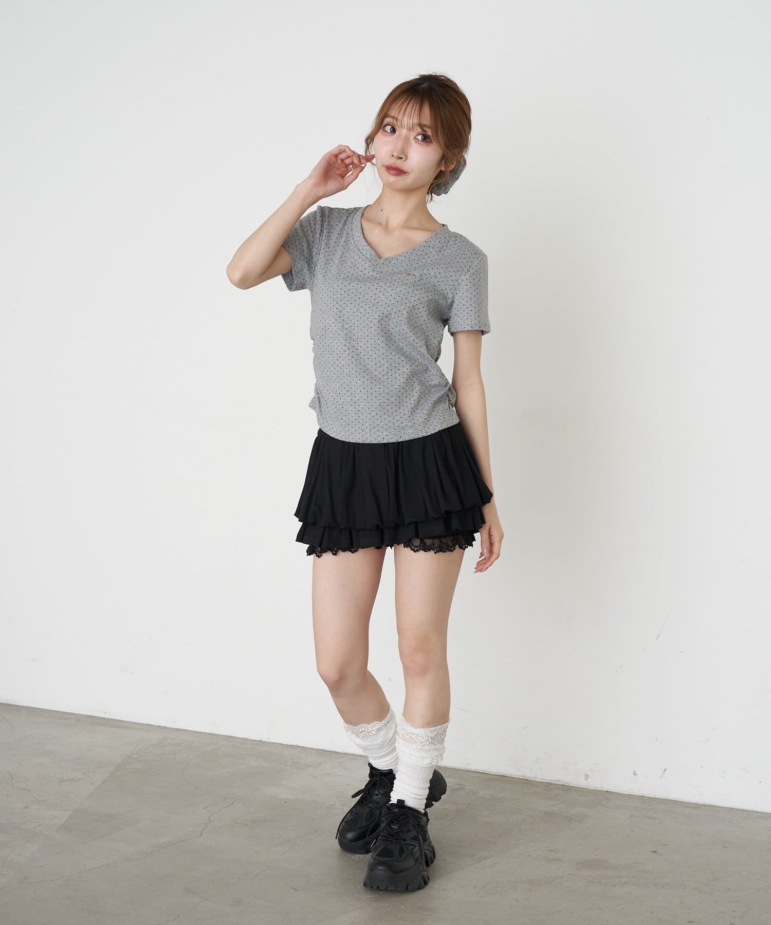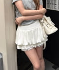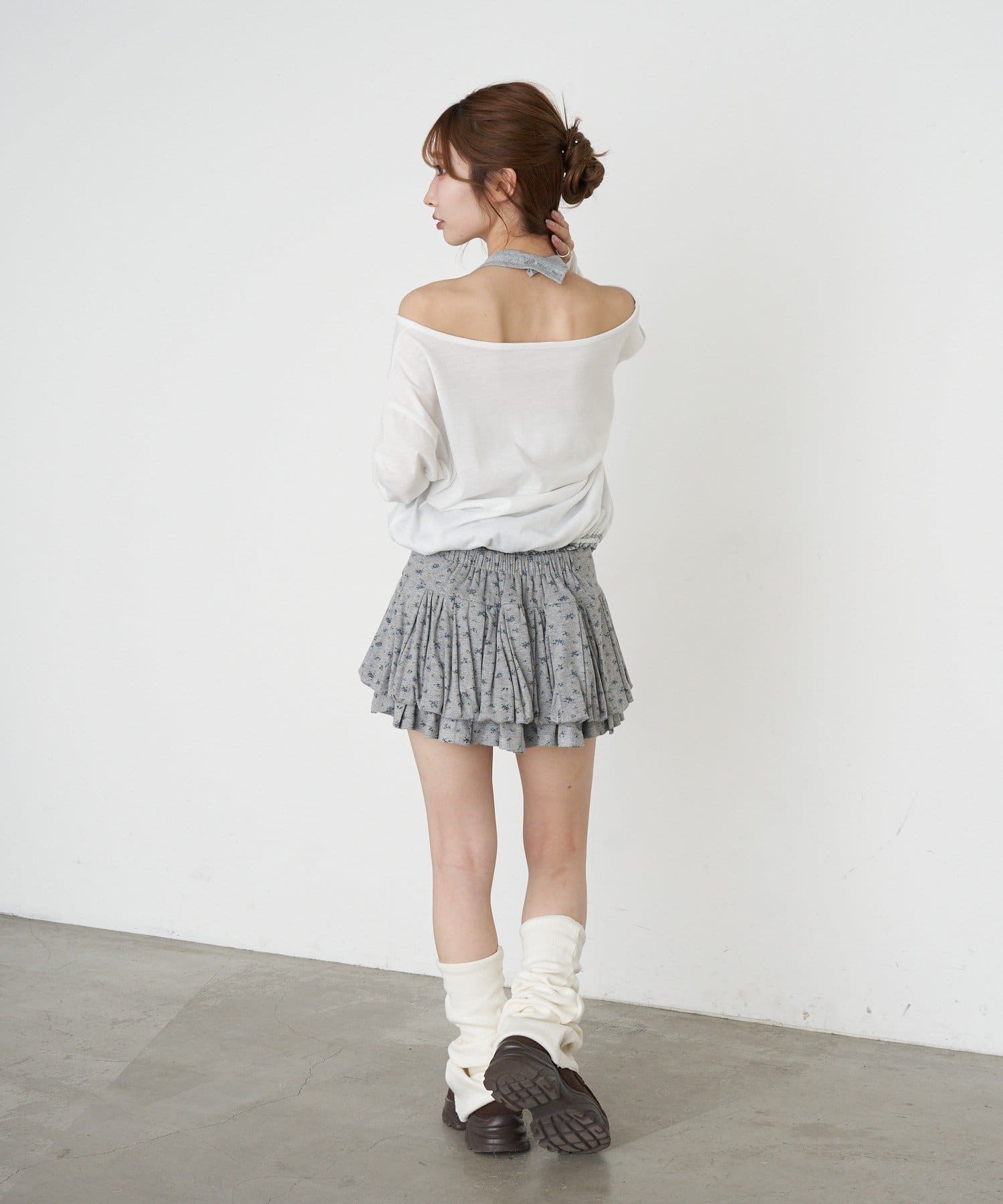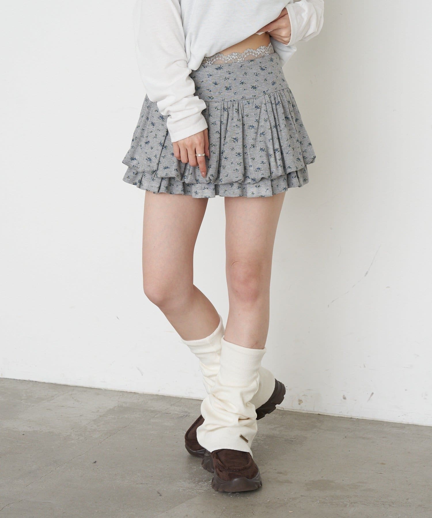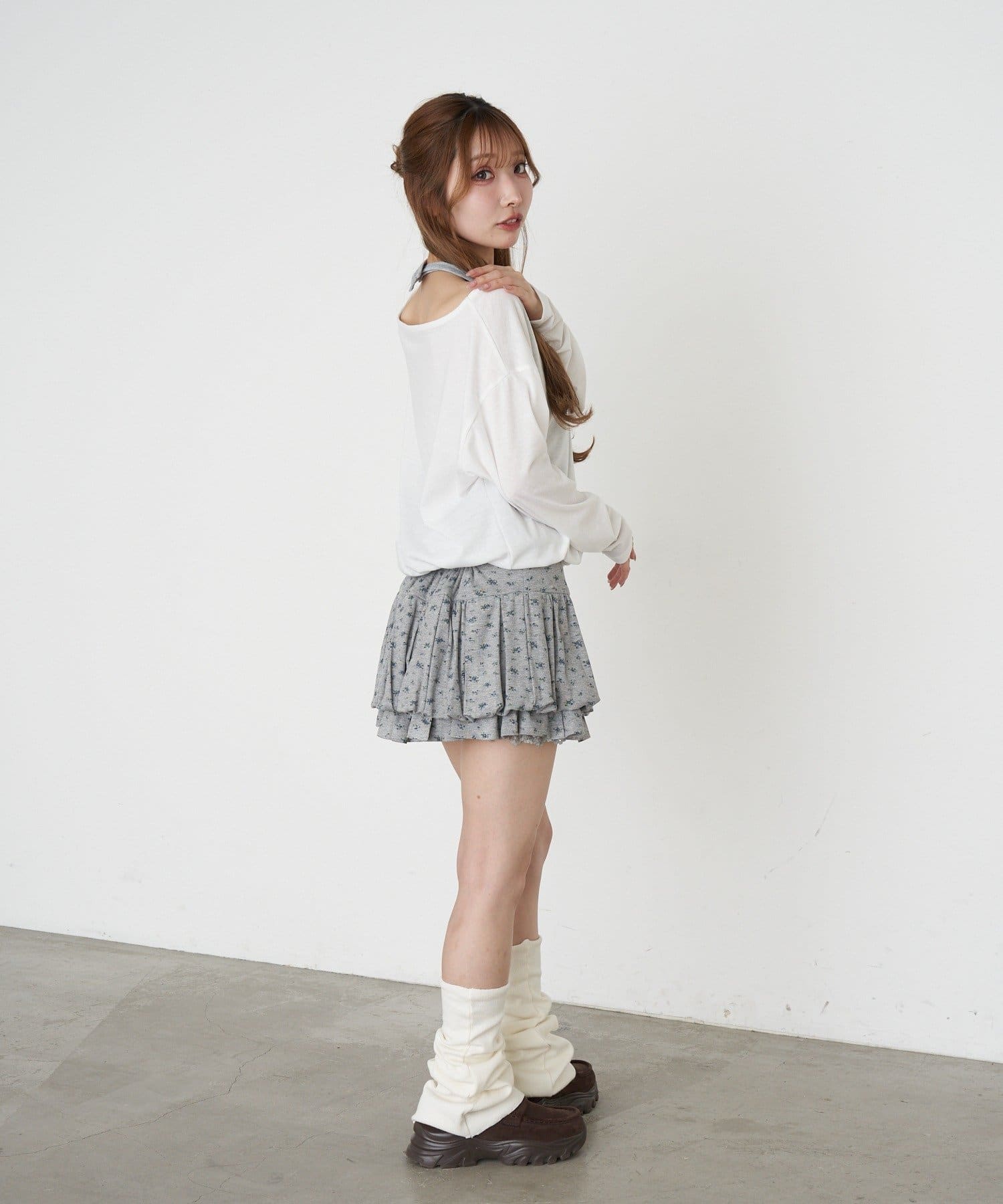 【無地 / ドット / 花柄】カットティアードバルーンミニスカート