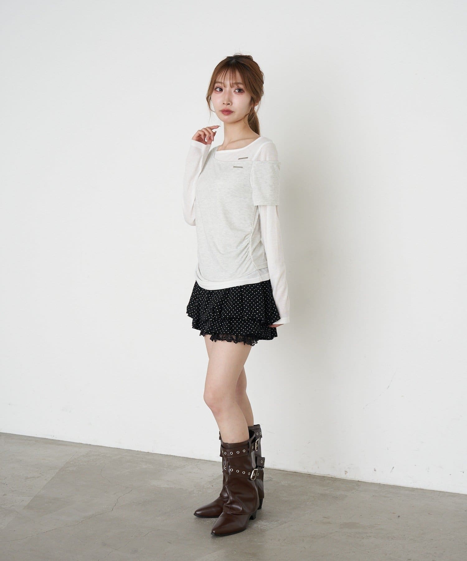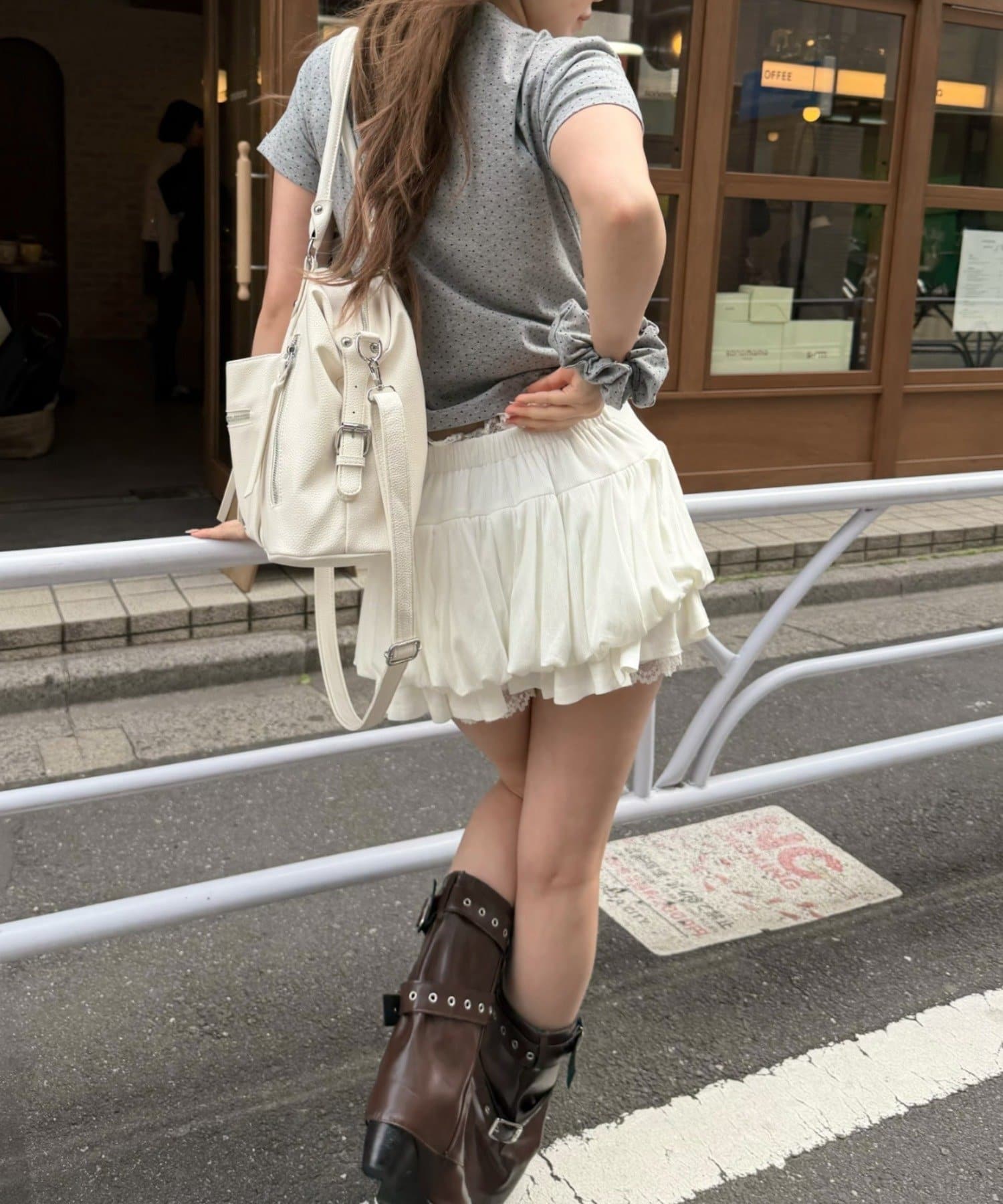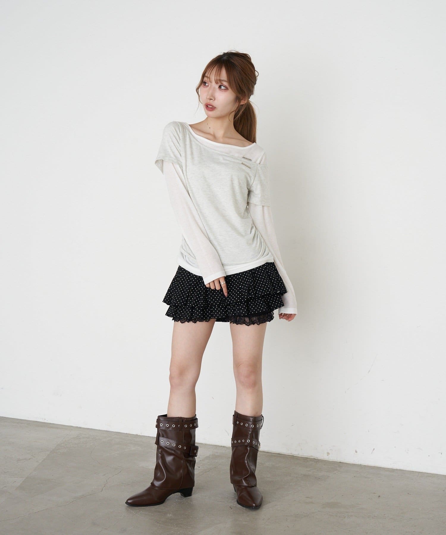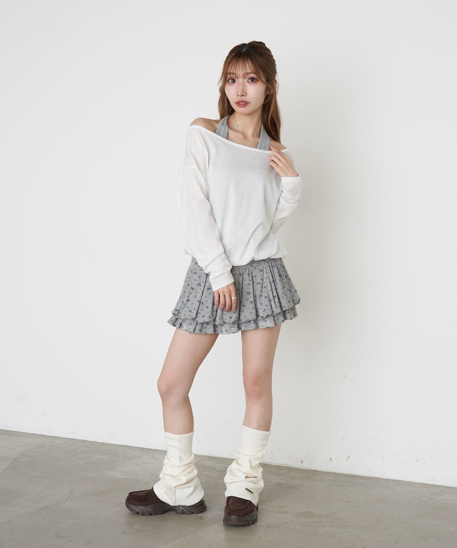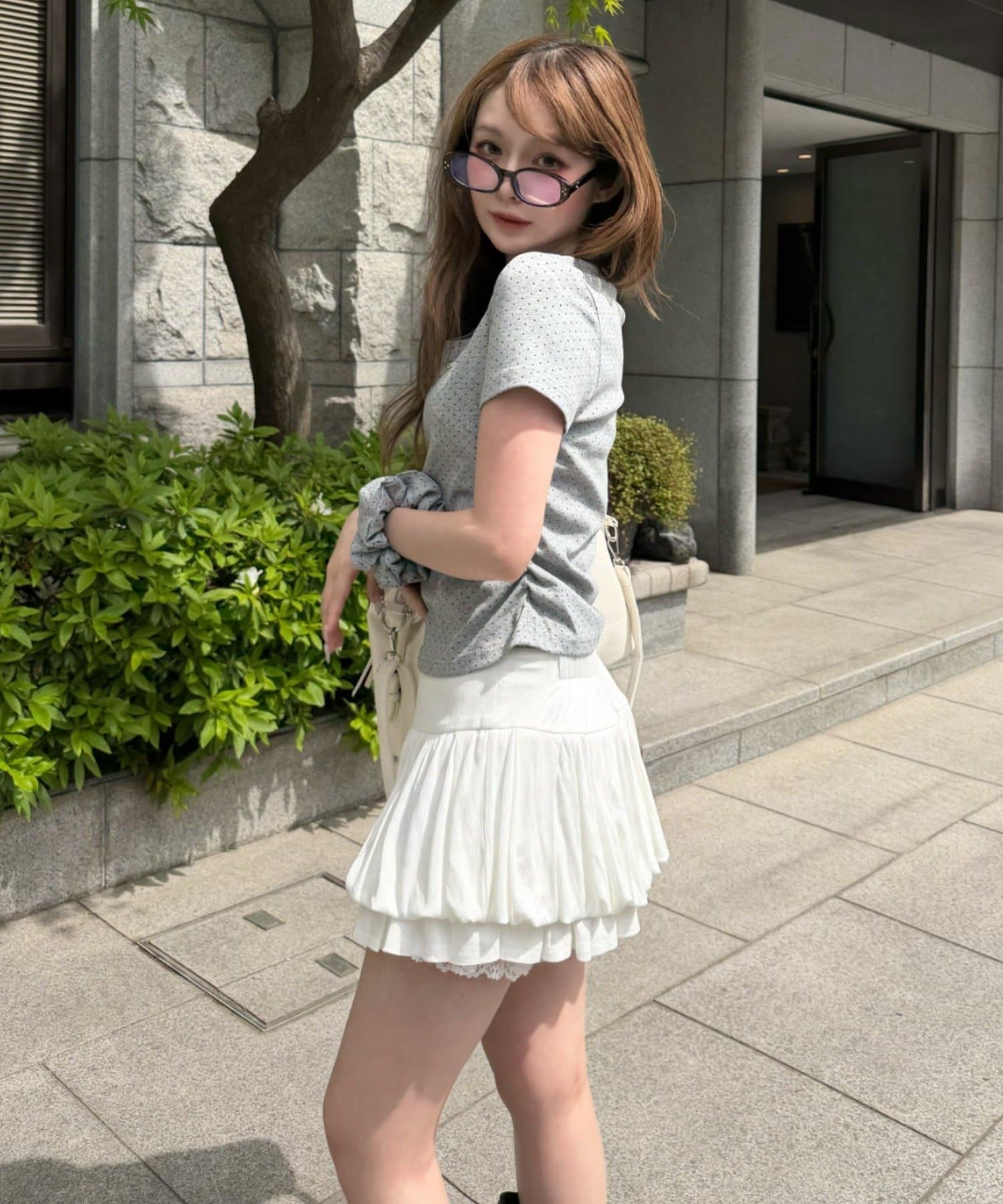 【無地 / ドット / 花柄】カットティアードバルーンミニスカート